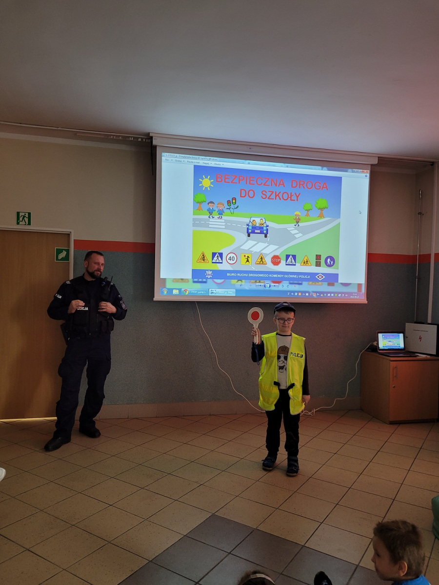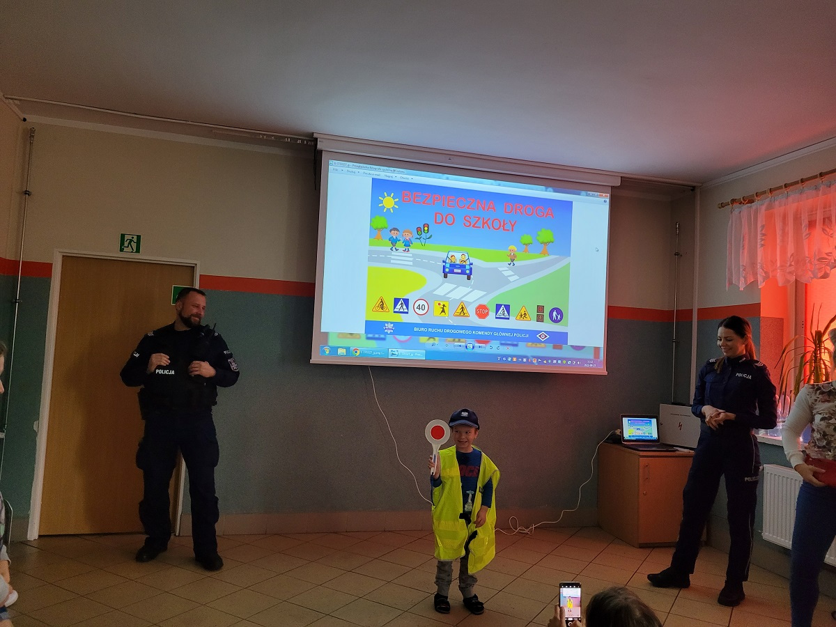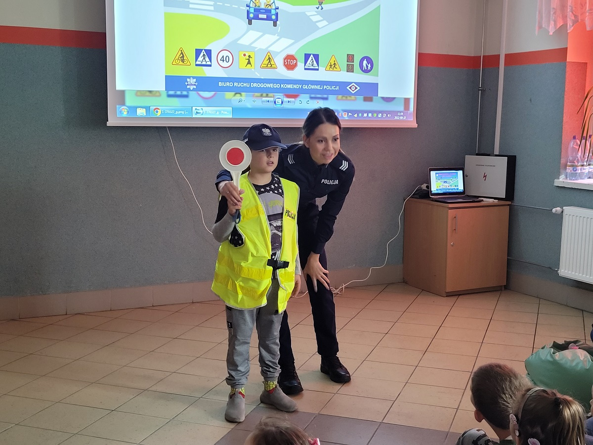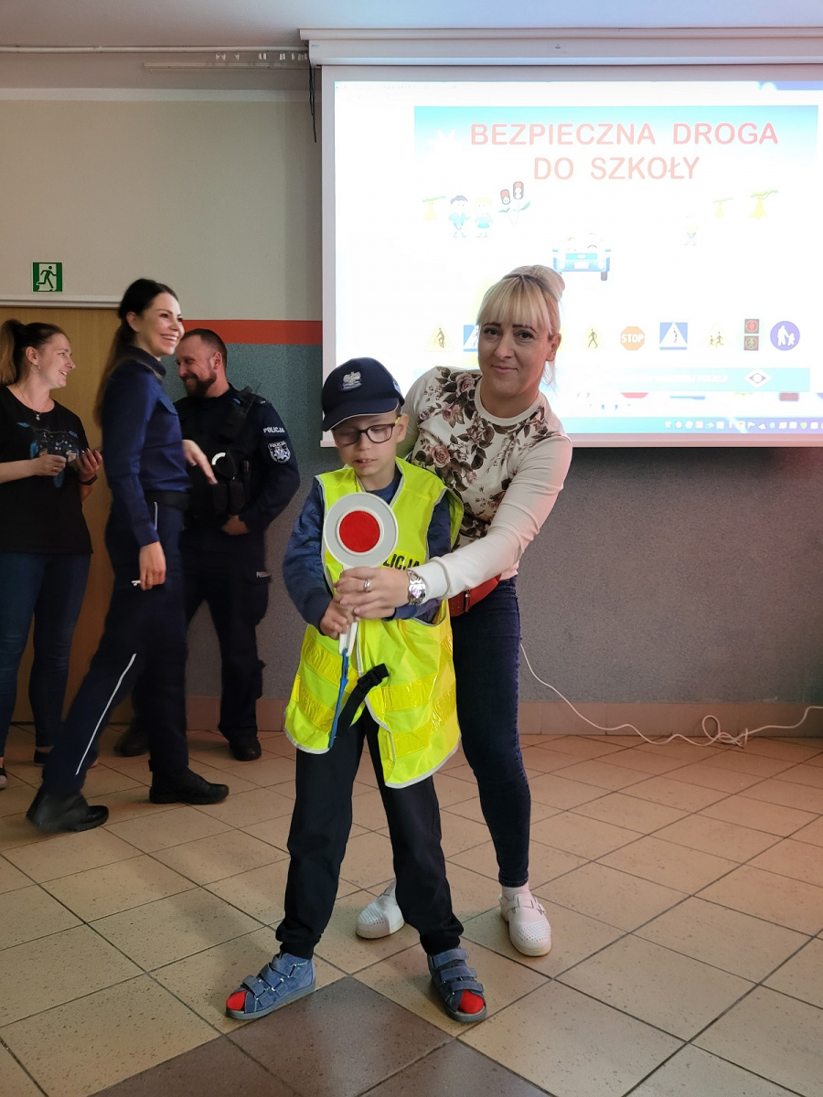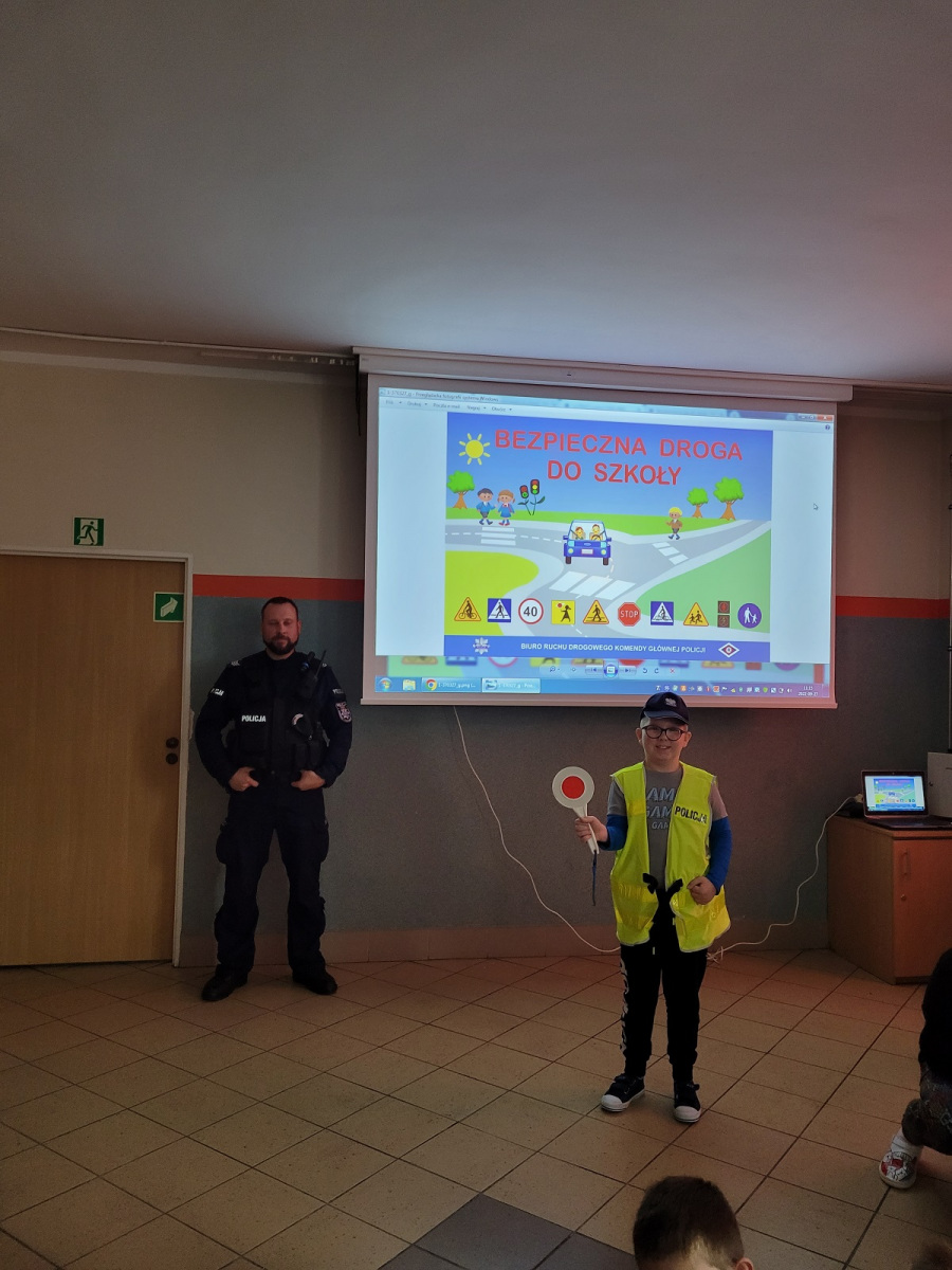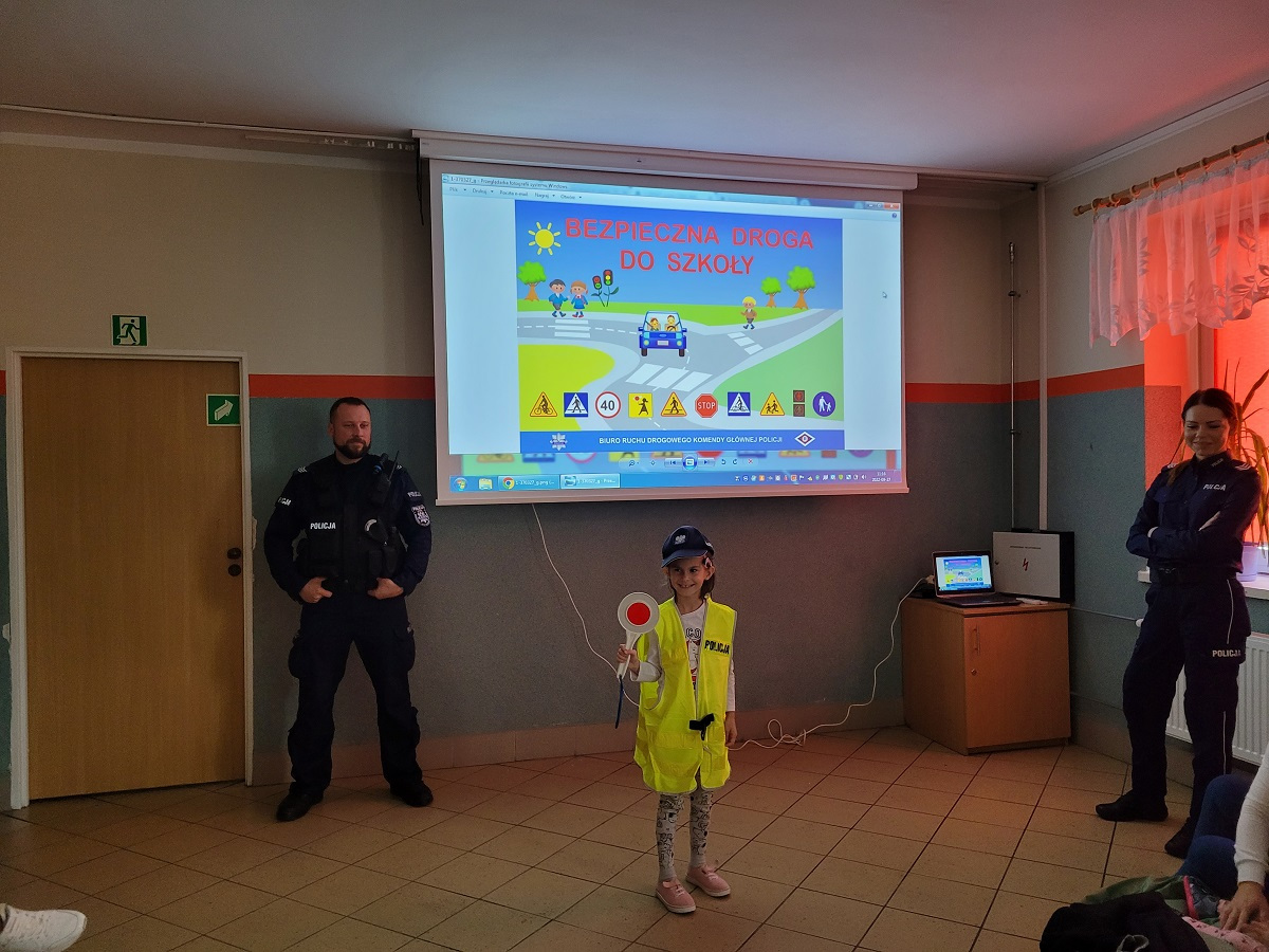 27 września 2022 r. odbyło się spotkanie z policją dotyczące bezpiecznej drogi do szkoły. Funkcjonariusze policji przypomnieli podstawowe zasady bezpiecznego poruszania się w ruchu drogowym. Uczniowie mieli okazję wejść w rolę policjanta zakładając policyjne akcesoria.