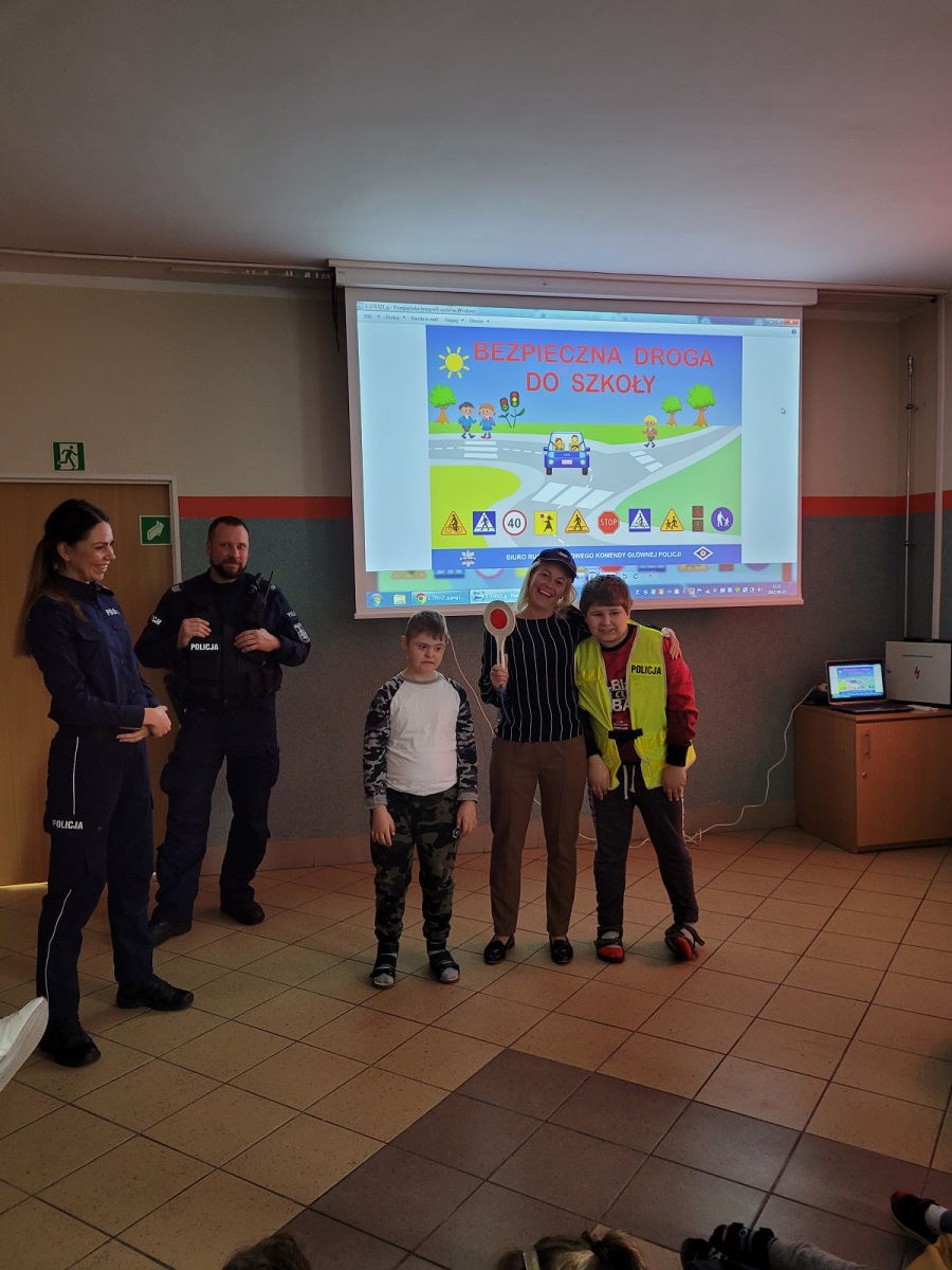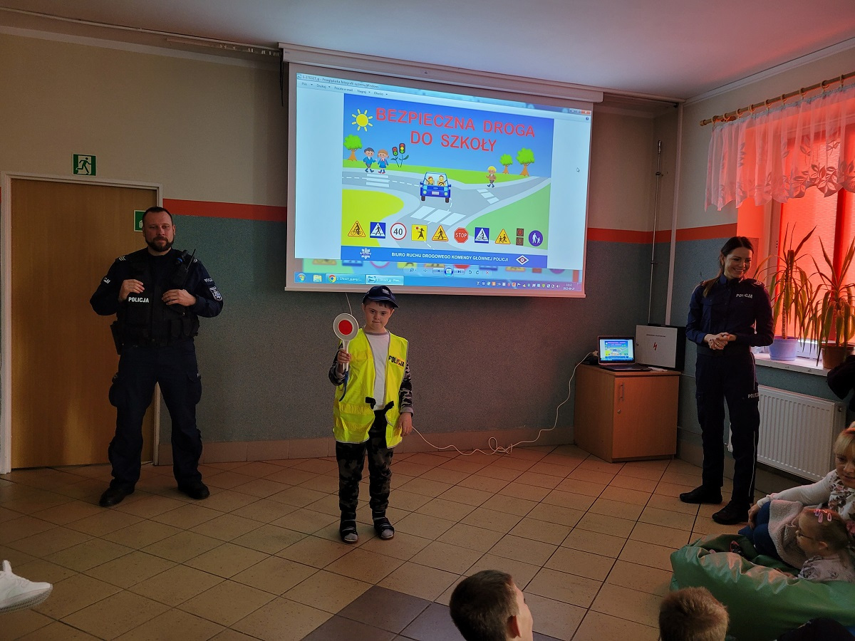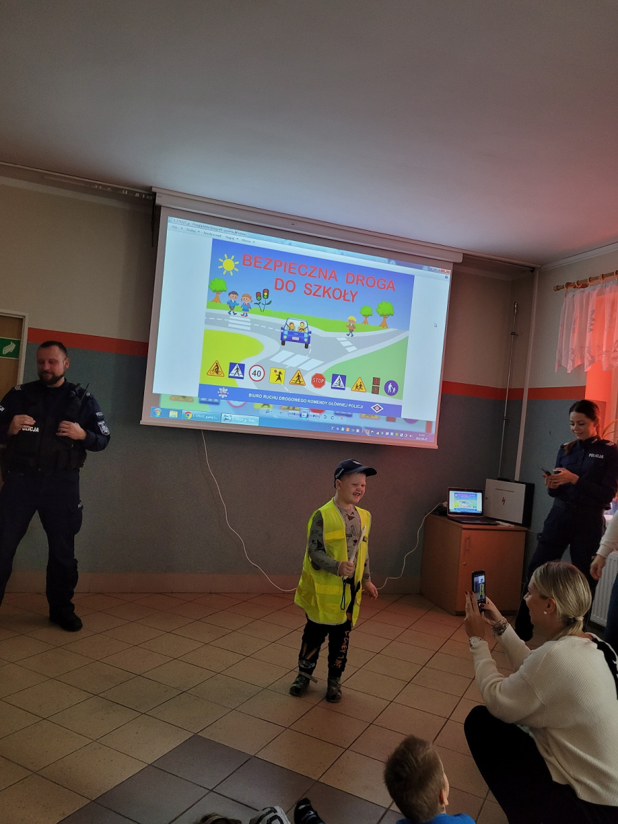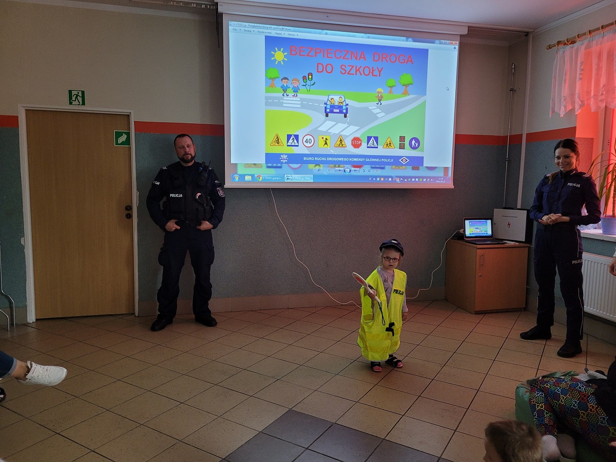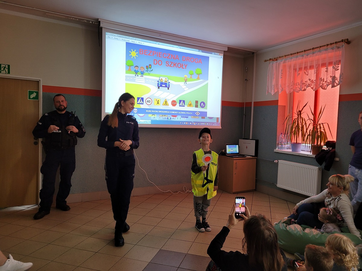27 września 2022 r. odbyło się spotkanie z policją dotyczące bezpiecznej drogi do szkoły. Funkcjonariusze policji przypomnieli podstawowe zasady bezpiecznego poruszania się w ruchu drogowym. Uczniowie mieli okazję wejść w rolę policjanta zakładając policyjne akcesoria.