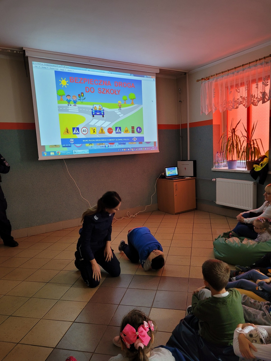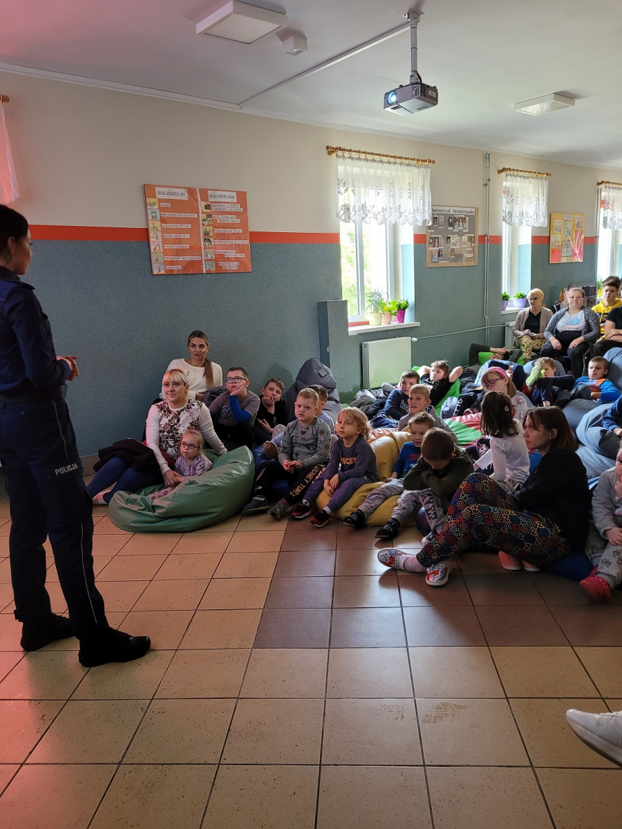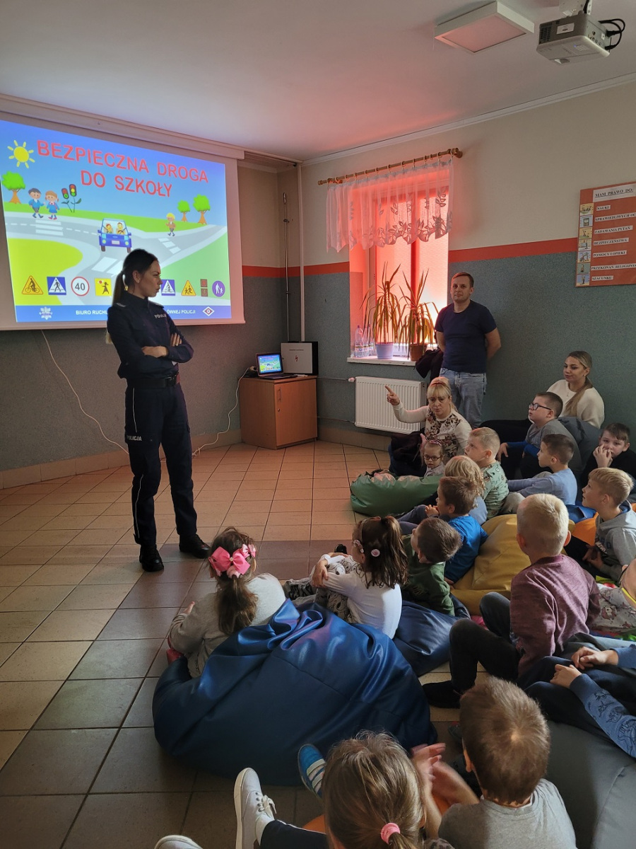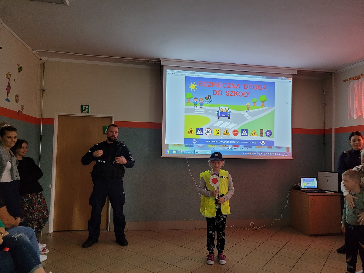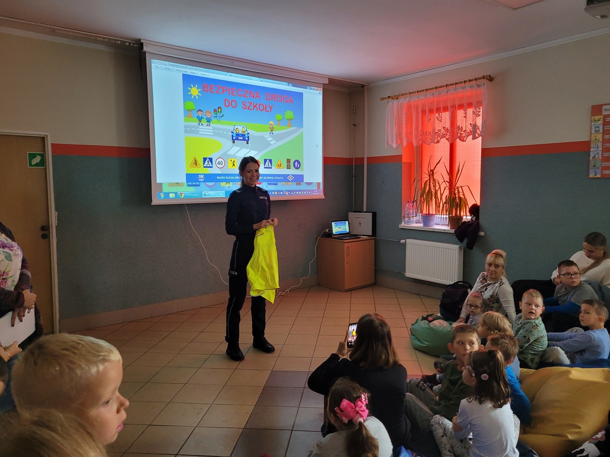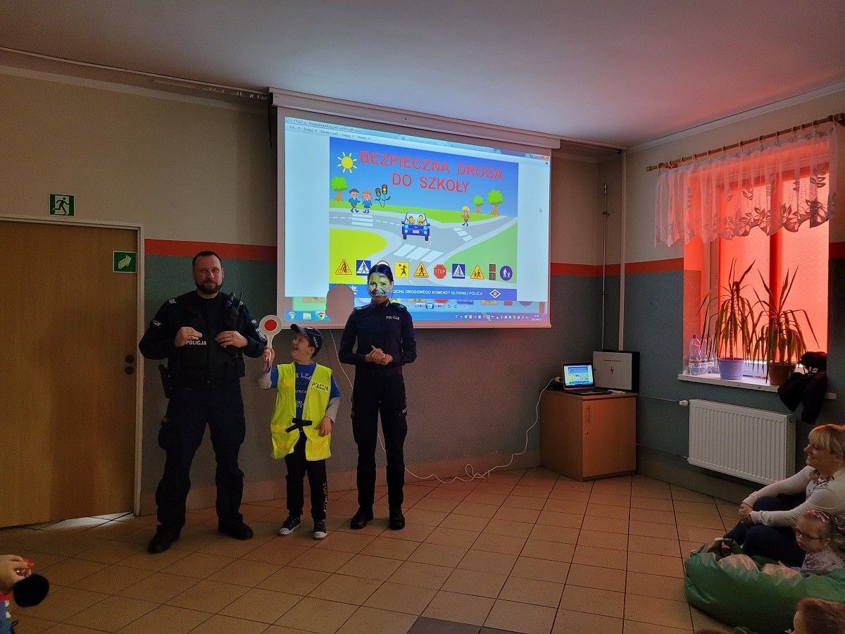 27 września 2022 r. odbyło się spotkanie z policją dotyczące bezpiecznej drogi do szkoły. Funkcjonariusze policji przypomnieli podstawowe zasady bezpiecznego poruszania się w ruchu drogowym. Uczniowie mieli okazję wejść w rolę policjanta zakładając policyjne akcesoria.