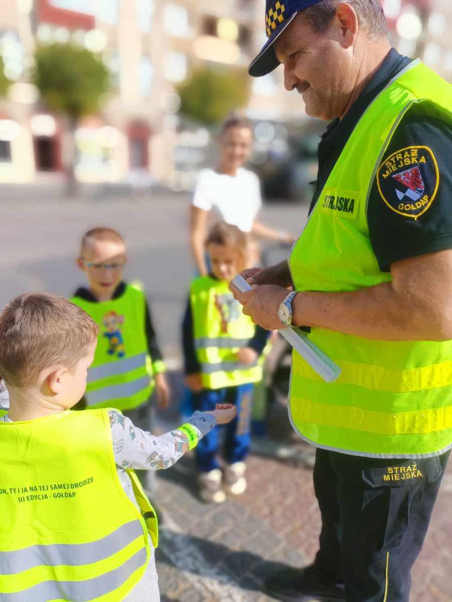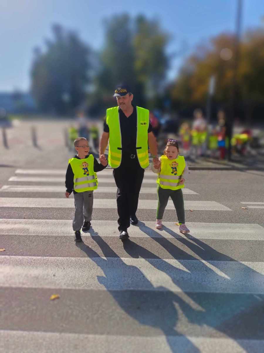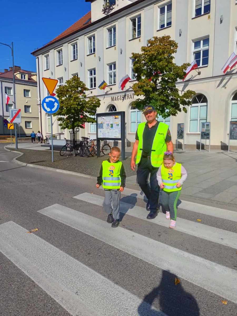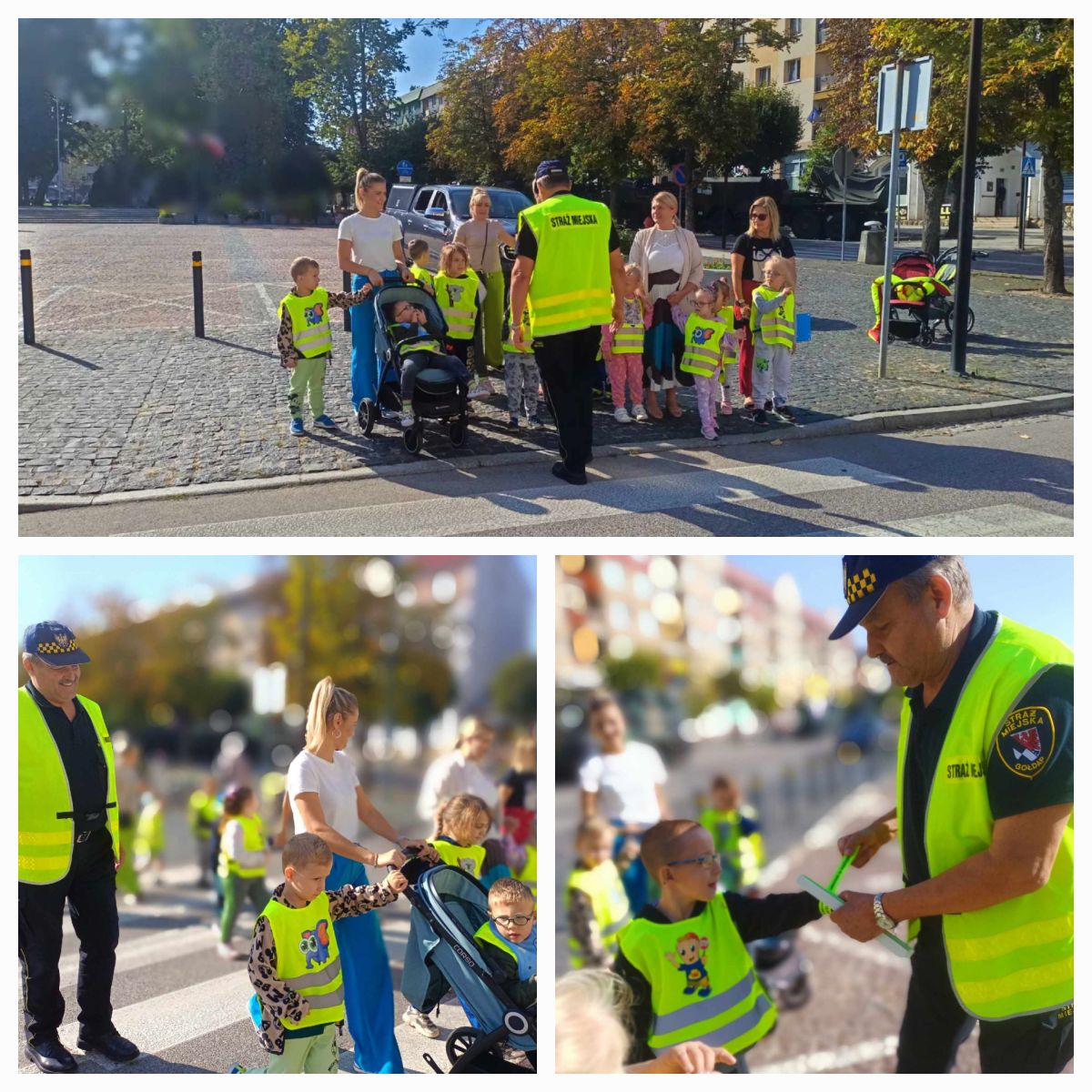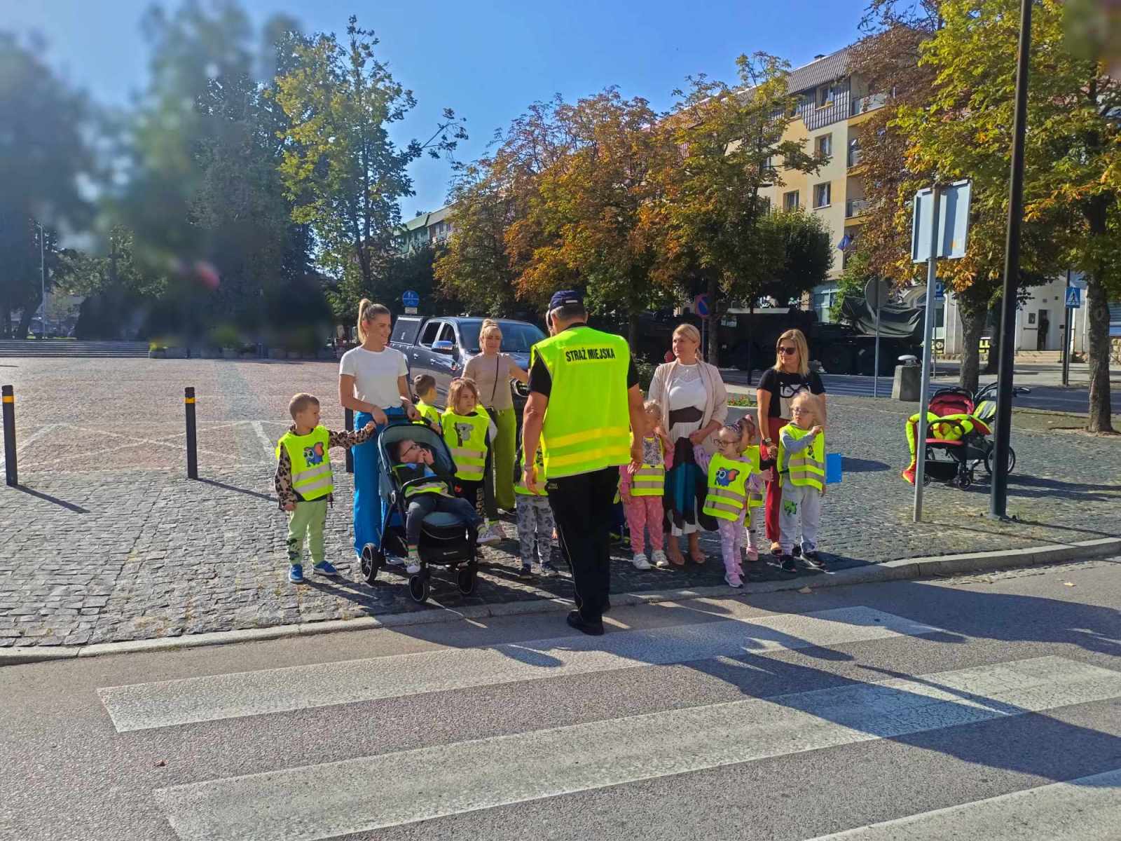 Była teoria więc przyszedł czas na praktyczne ćwiczenia w przechodzeniu przez ulicę. W dniu dzisiejszym przedszkolaki z ZPEW spotkały się z komendantem Straży Miejskiej panem Pawłem Werchowiczem aby utrwalić zasady prawidłowego poruszania się w ruchu drogowym. Najmłodsi przypomnieli również jakie korzyści płyną z noszenia odzieży i elementów odblaskowych. Dziękujemy panu komendantowi za poświęcony czas, praktyczną lekcję oraz opaski odblaskowe, dzięki którym dzieciaki będą bardziej widoczne na drodze.