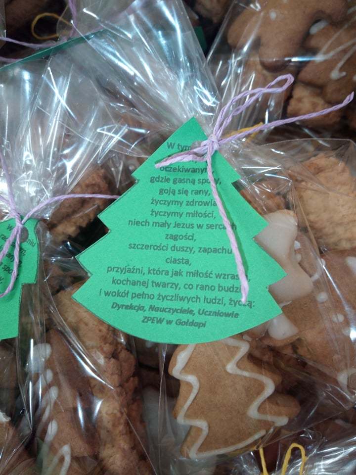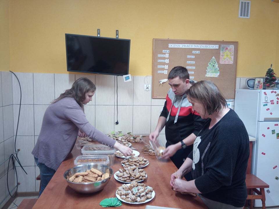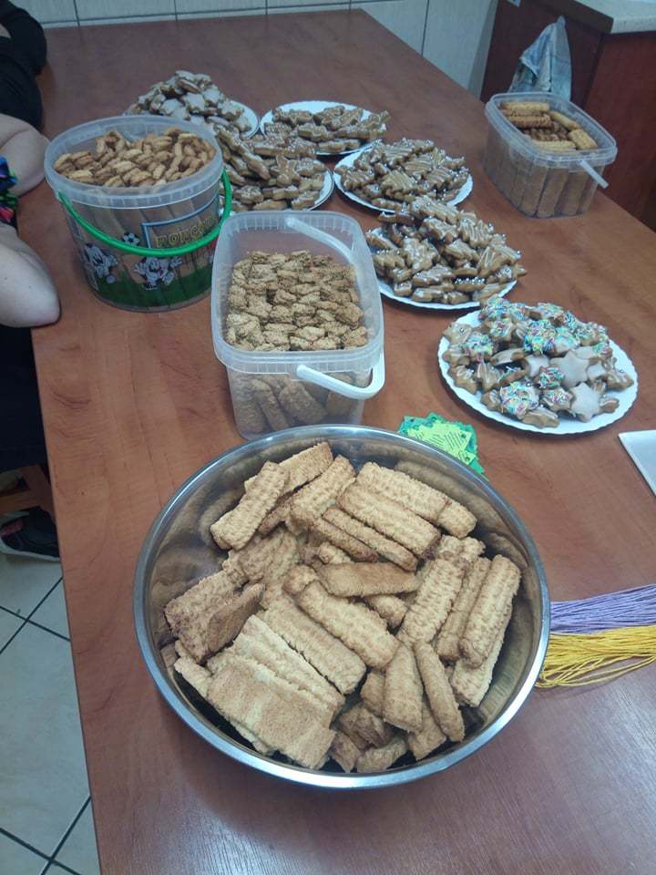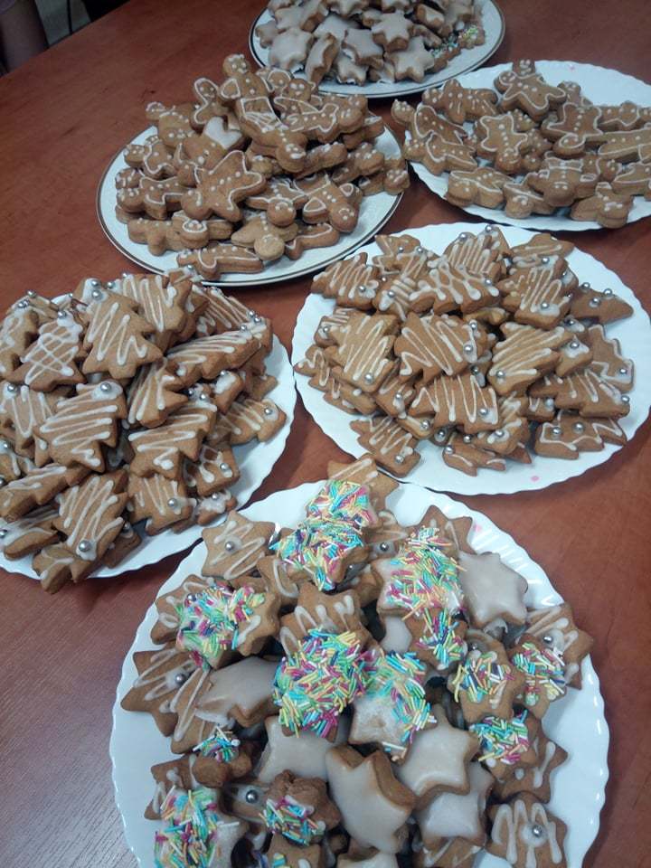 Jak co roku przed świętami uczniowie SPdP wykonali mnóstwo pysznych, tradycyjnych, kruchych ciasteczek oraz pierniczków. Następnie słuchając kolęd lukrowali i ozdabiali swoje wypieki. Podczas spotkania pn. „Ciasteczkowo” pakowali je w ozdobne torebki, zawieszali życzenia oraz opowiadali o świętach w ich domach, o swoich planach i marzeniach na przyszły rok. Było to bardzo ciepłe, rodzinne, przepełnione zapachami przedświąteczne spotkanie.