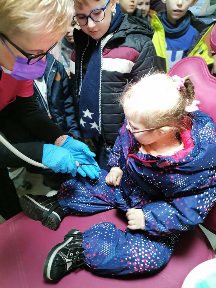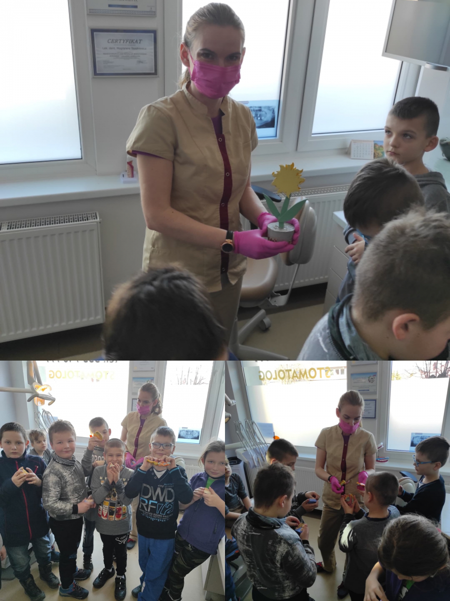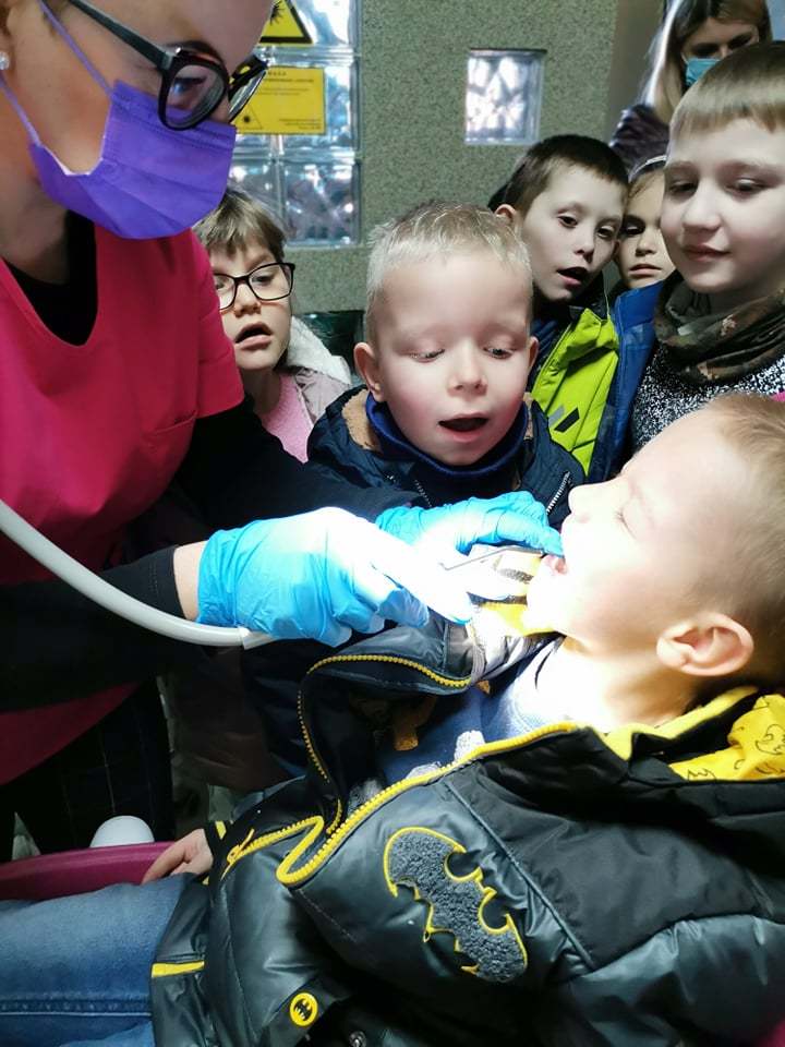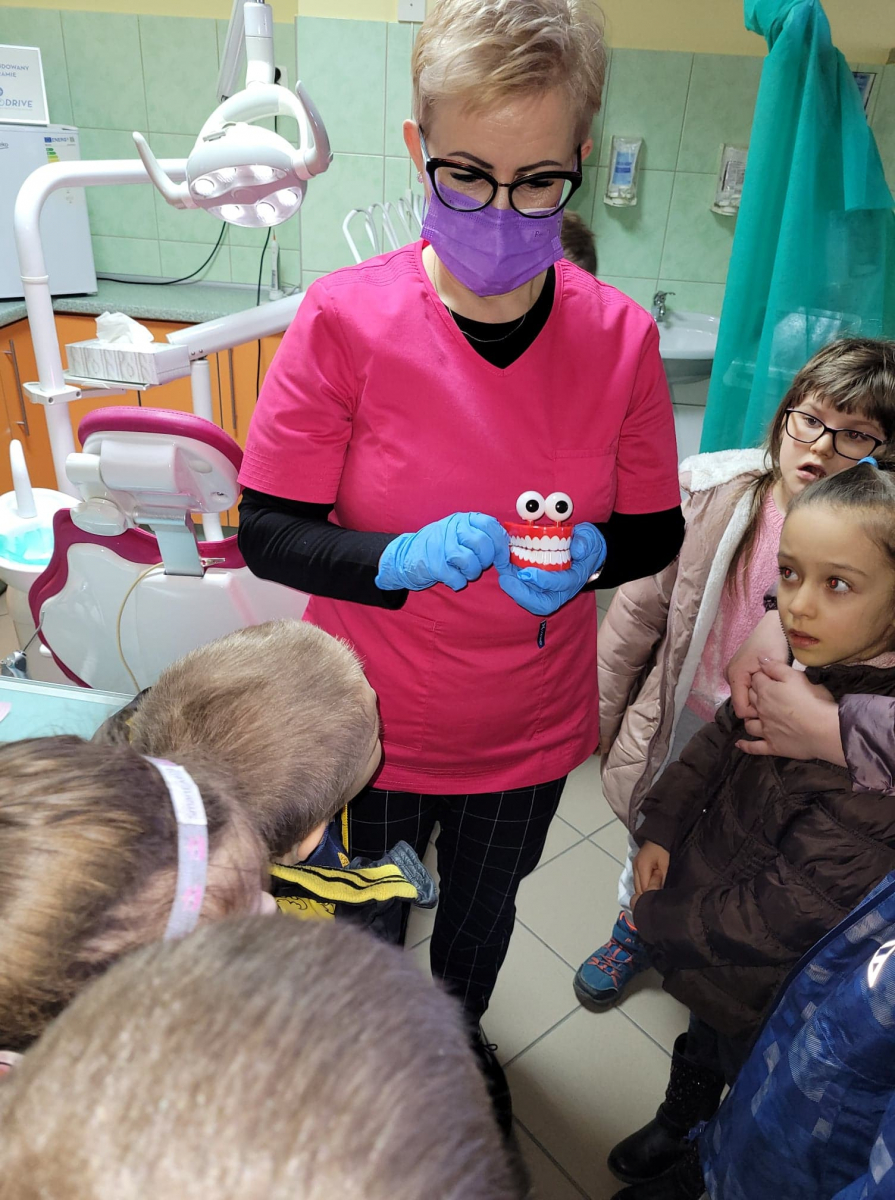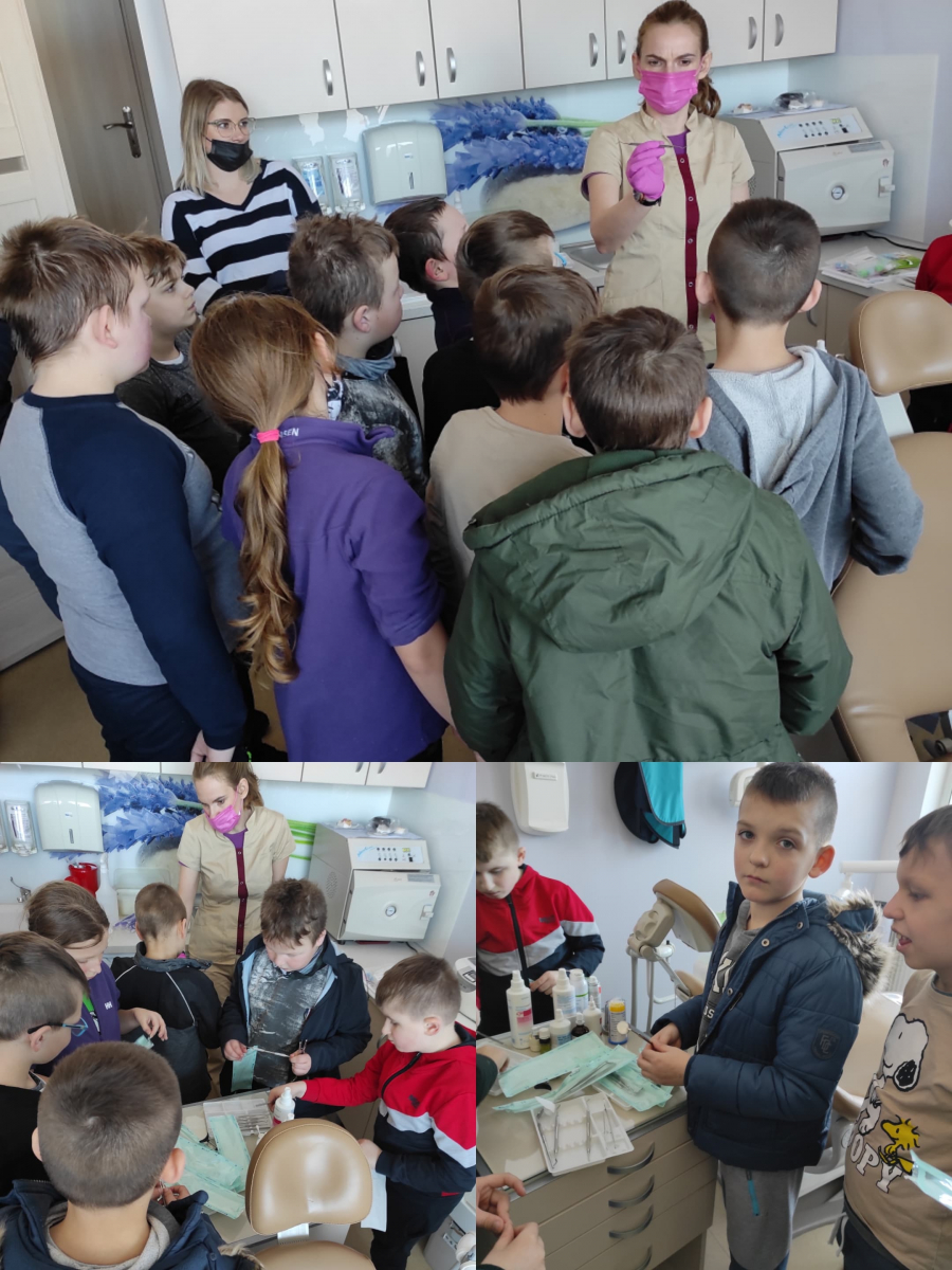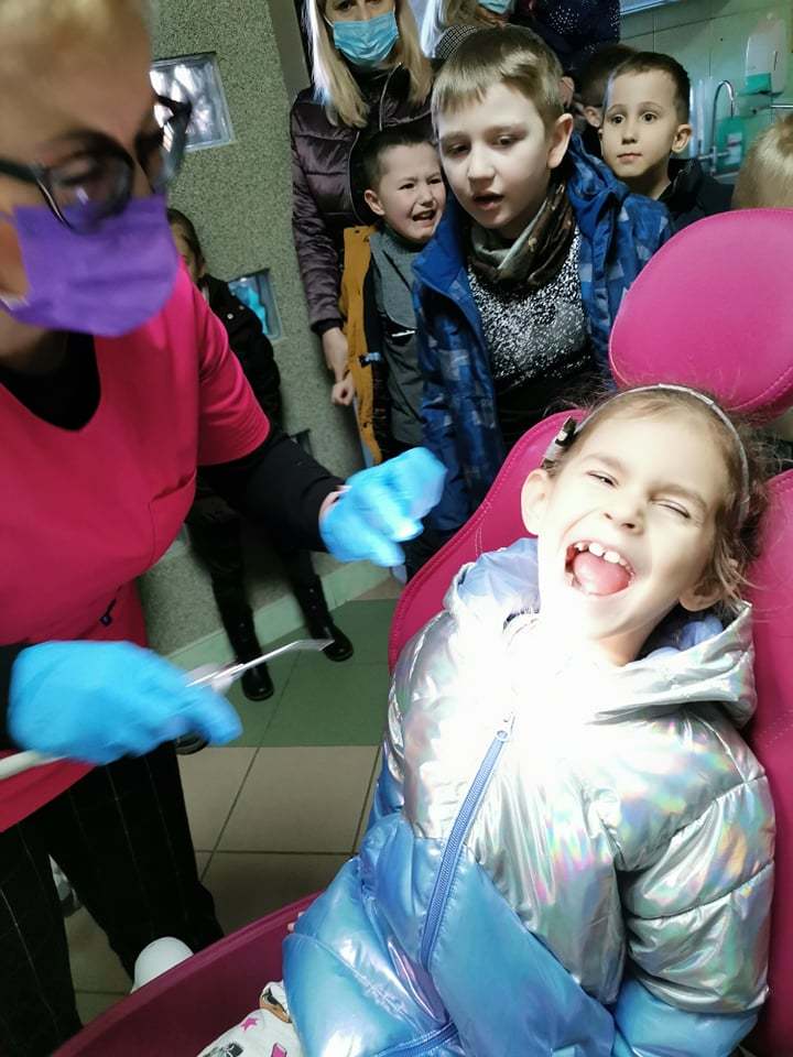 Dziś dzieci wybrały się do gabinetów stomatologicznych. Poznały specjalistyczny sprzęt i jego zastosowanie. Dowiedziały się jak wygląda praca stomatologa oraz przypominały sobie jak ważne jest dbanie o higienę jamy ustnej. Dziękujemy za zaproszenie i miłą atmosferę podczas spotkania. Pozdrawiamy!