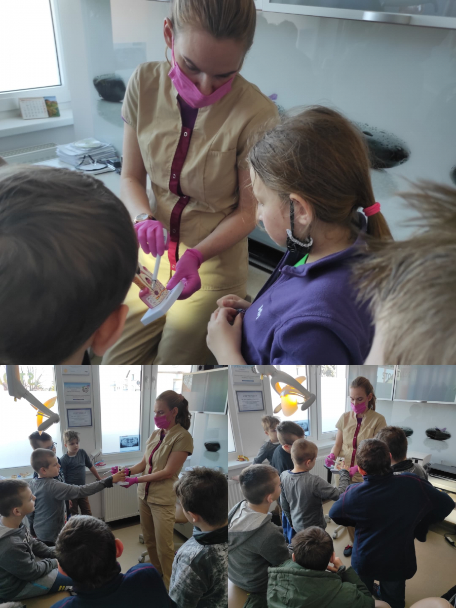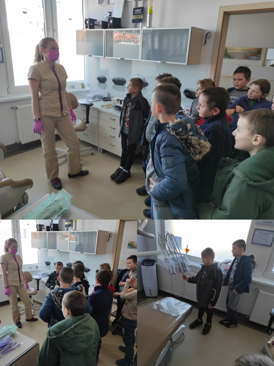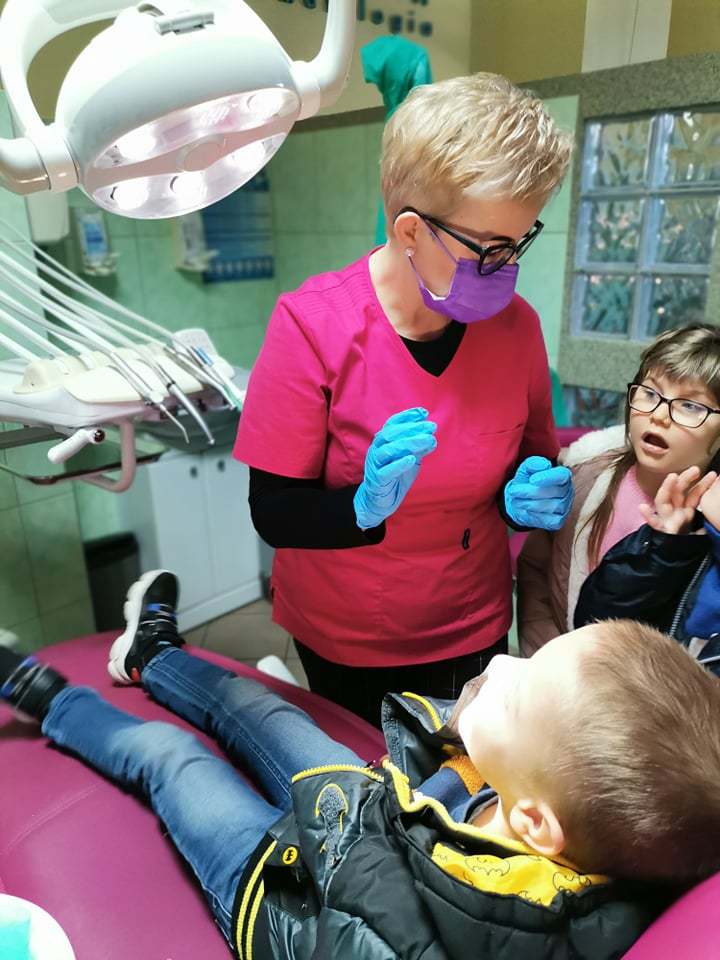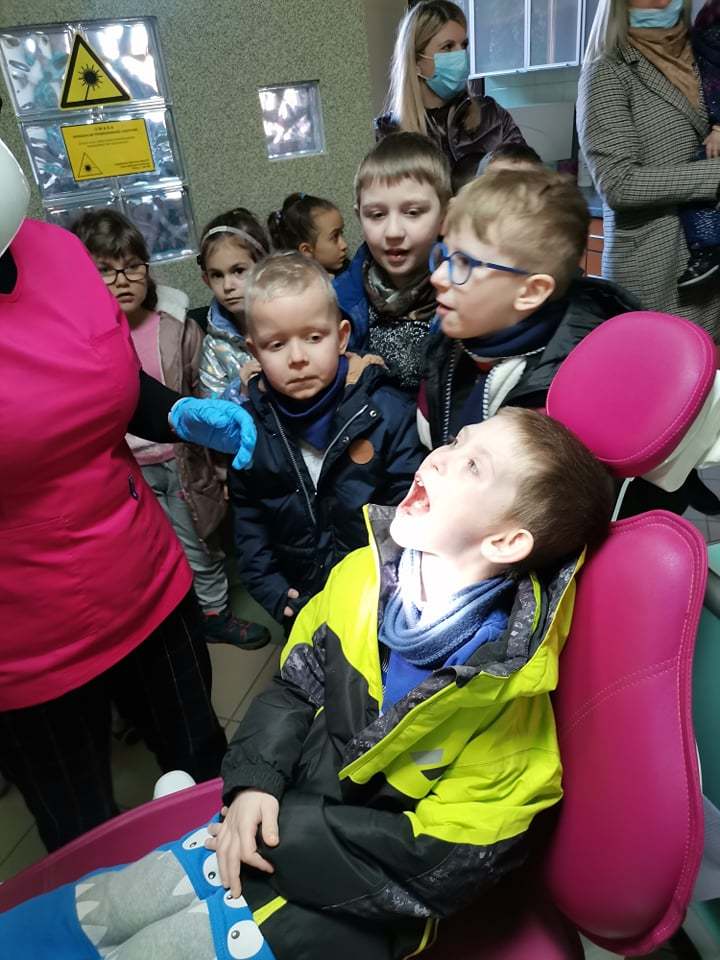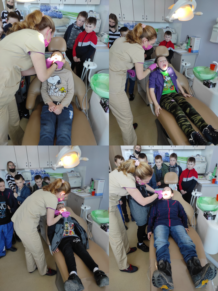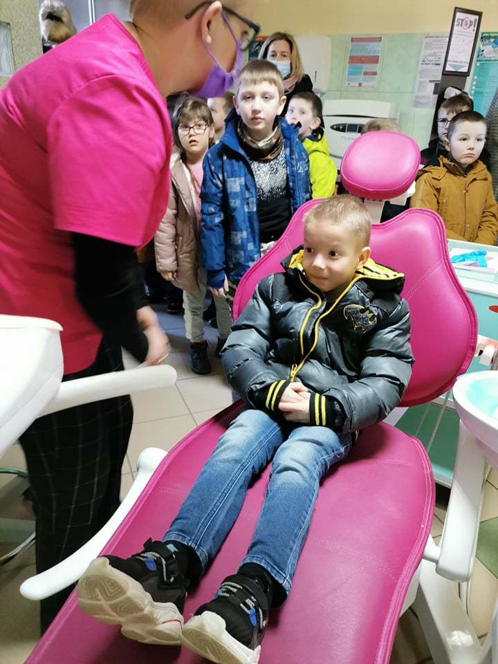 Dziś dzieci wybrały się do gabinetów stomatologicznych. Poznały specjalistyczny sprzęt i jego zastosowanie. Dowiedziały się jak wygląda praca stomatologa oraz przypominały sobie jak ważne jest dbanie o higienę jamy ustnej. Dziękujemy za zaproszenie i miłą atmosferę podczas spotkania. Pozdrawiamy!