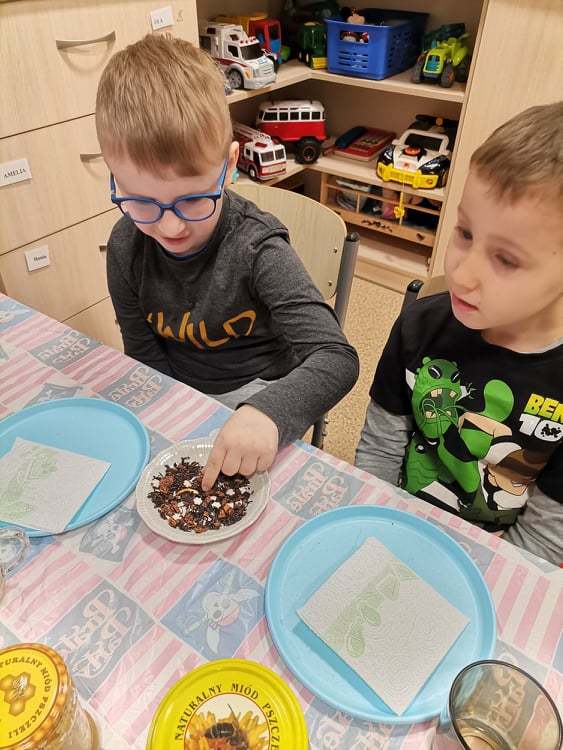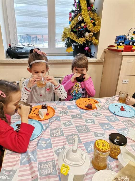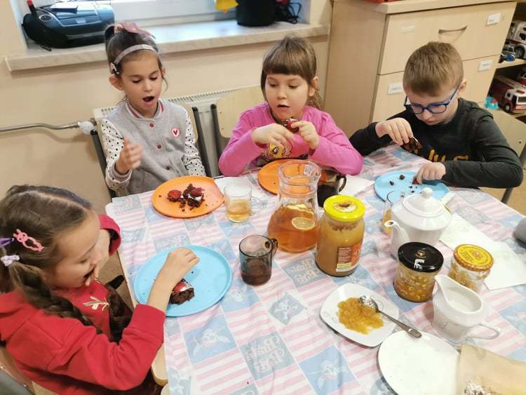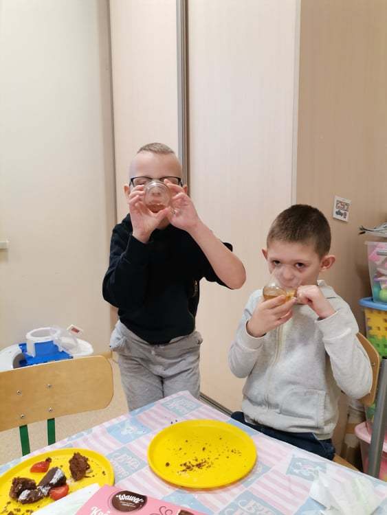 15 grudnia dzieci z oddziału przedszkolnego obchodziły Dzień Herbaty. Tego dnia miały możliwość poznania wyglądu i zapachu różnorodnych herbat. Przedszkolaki dowiedziały się skąd pochodzi herbata, spróbowały różnych rodzajów herbat, poznały przedmioty do parzenia tego aromatycznego naparu, a także różnych dodatków do herbaty np. pigwa, owoce cytrusowe, miód, cukier, mleko. Jak wiemy herbatka najbardziej smakuje z czymś słodkim, dlatego najmłodsi upiekli czekoladowe ciasto. To były bardzo aromatyczne zajęcia.
