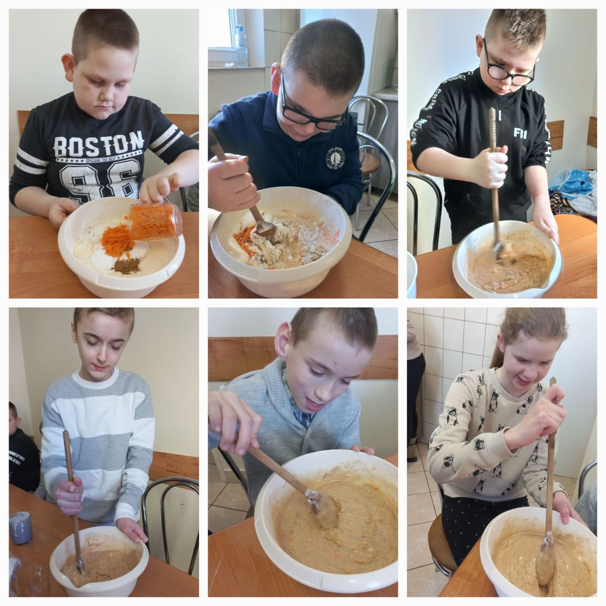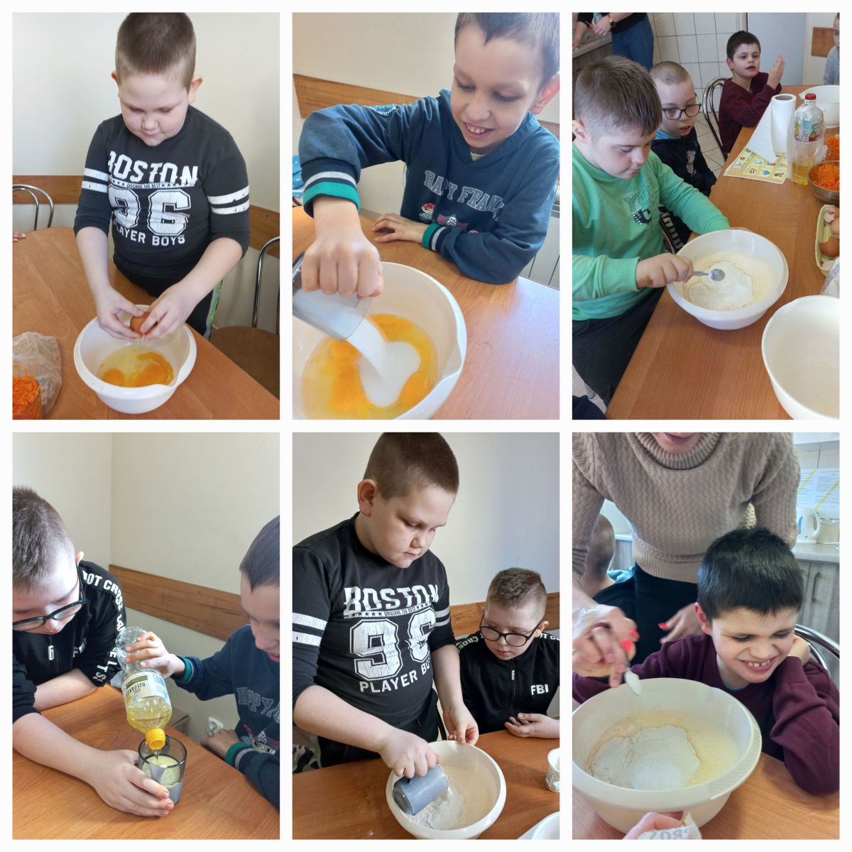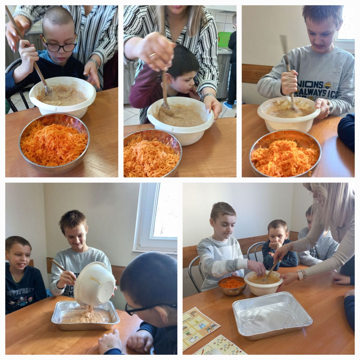 4 kwietnia obchodzimy Międzynarodowy Dzień Marchewki. Warzywo to jest pełne witamin i nadaje się zarówno do dań wytrawnych jak i tych na słodko. Z tej okazji klasy zet IIIA, IIIB i zet V dokładnie zapoznały się z właściwościami zdrowotnymi tego warzywa oraz z przepisem na ciasto z marchewką w roli głównej. Uczniowie samodzielnie obrali oraz potarkowali marchew, a następnie połączyli ją z pozostałymi składnikami z przepisu. Tak powstało aromatyczne, a przede wszystkim zdrowe ciasto marchewkowe, które wszystkim bardzo smakowało. Dzięki takim zajęciom uczniowie doskonalą swoją samodzielność, ale także odkrywają nowe, nieznane im dotąd smaki.