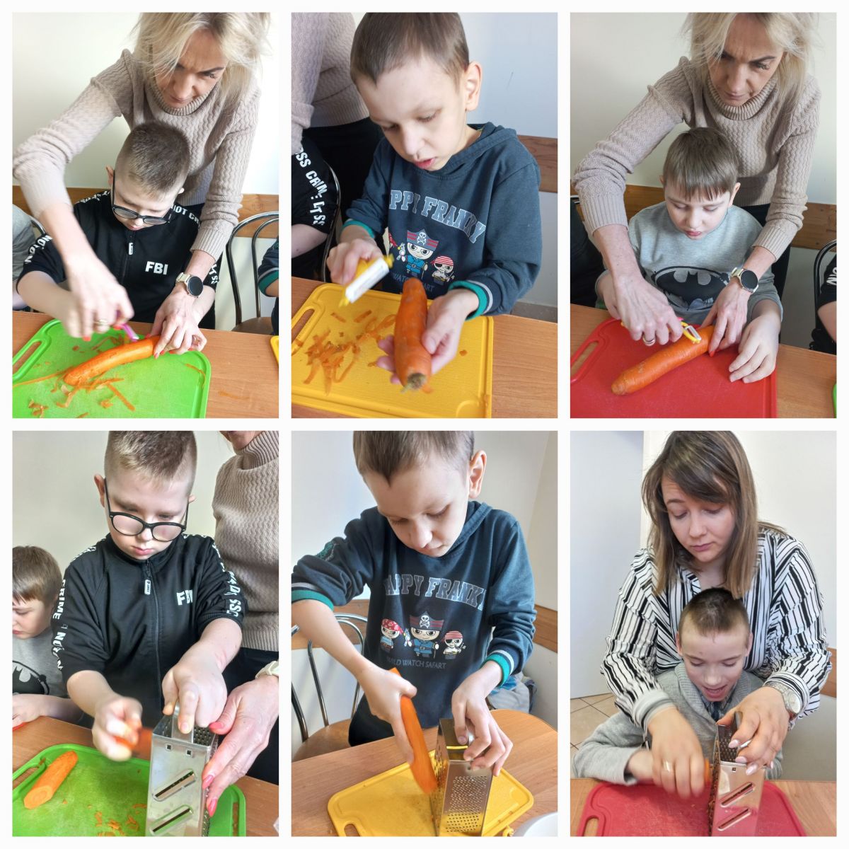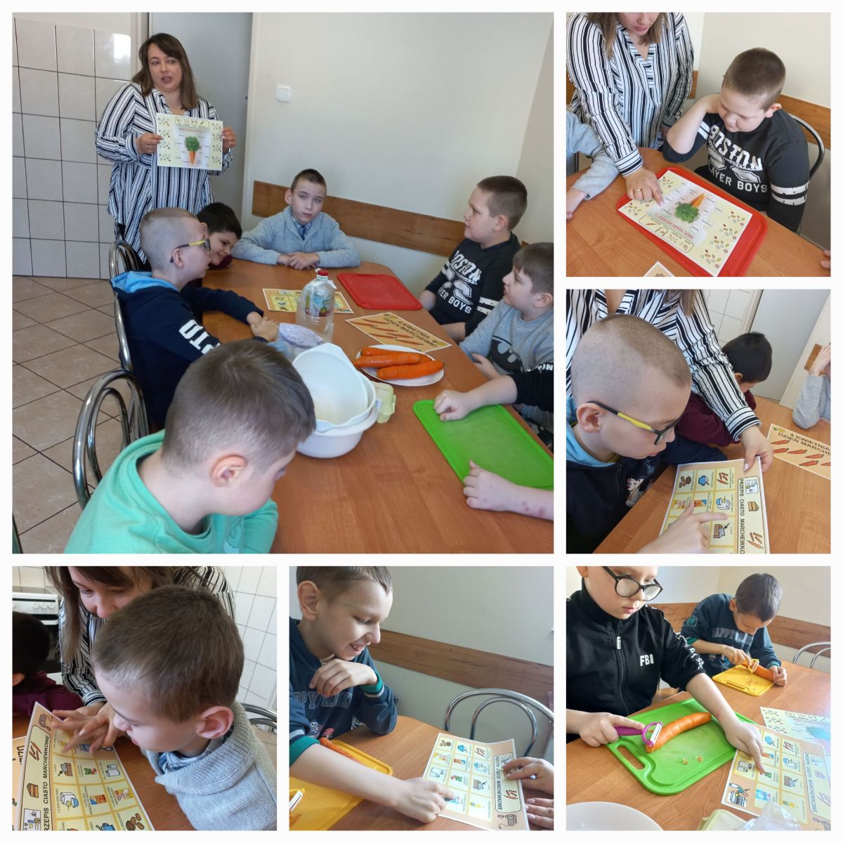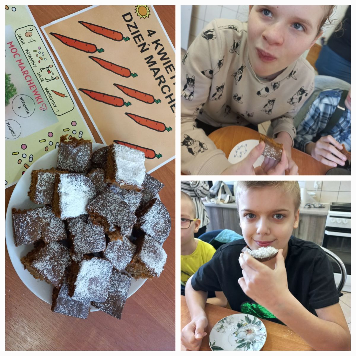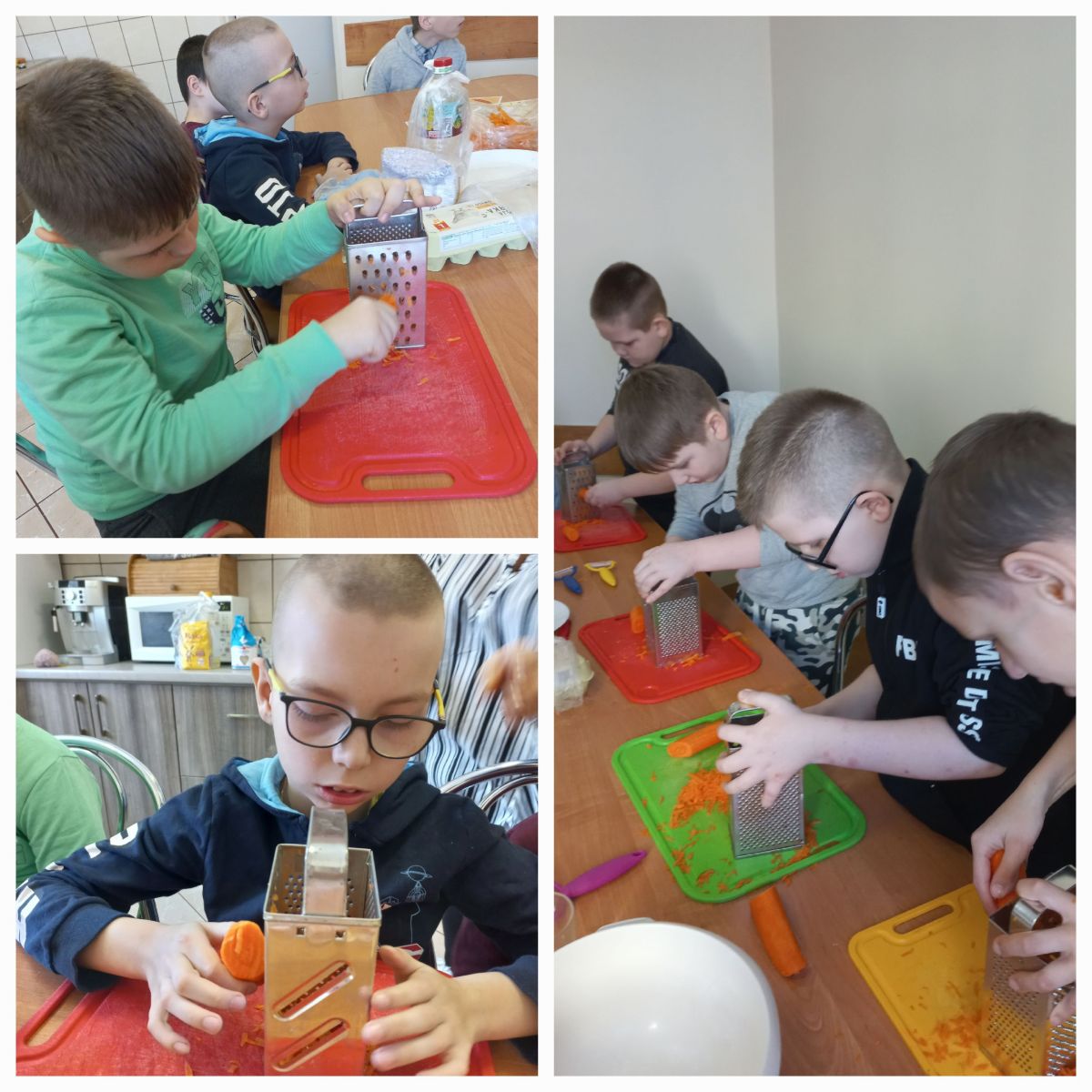 4 kwietnia obchodzimy Międzynarodowy Dzień Marchewki. Warzywo to jest pełne witamin i nadaje się zarówno do dań wytrawnych jak i tych na słodko. Z tej okazji klasy zet IIIA, IIIB i zet V dokładnie zapoznały się z właściwościami zdrowotnymi tego warzywa oraz z przepisem na ciasto z marchewką w roli głównej. Uczniowie samodzielnie obrali oraz potarkowali marchew, a następnie połączyli ją z pozostałymi składnikami z przepisu. Tak powstało aromatyczne, a przede wszystkim zdrowe ciasto marchewkowe, które wszystkim bardzo smakowało. Dzięki takim zajęciom uczniowie doskonalą swoją samodzielność, ale także odkrywają nowe, nieznane im dotąd smaki.