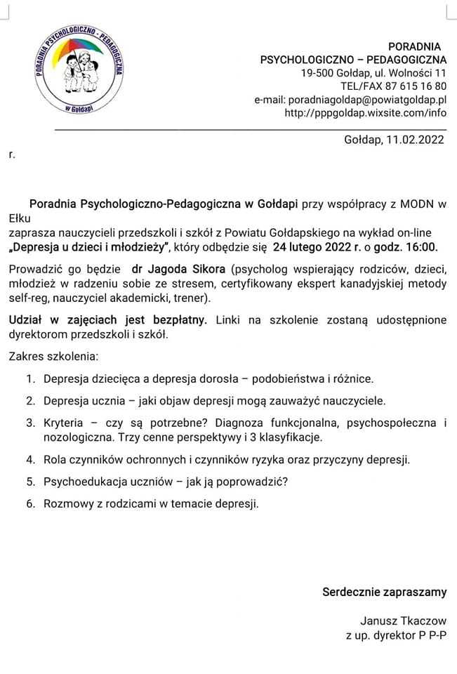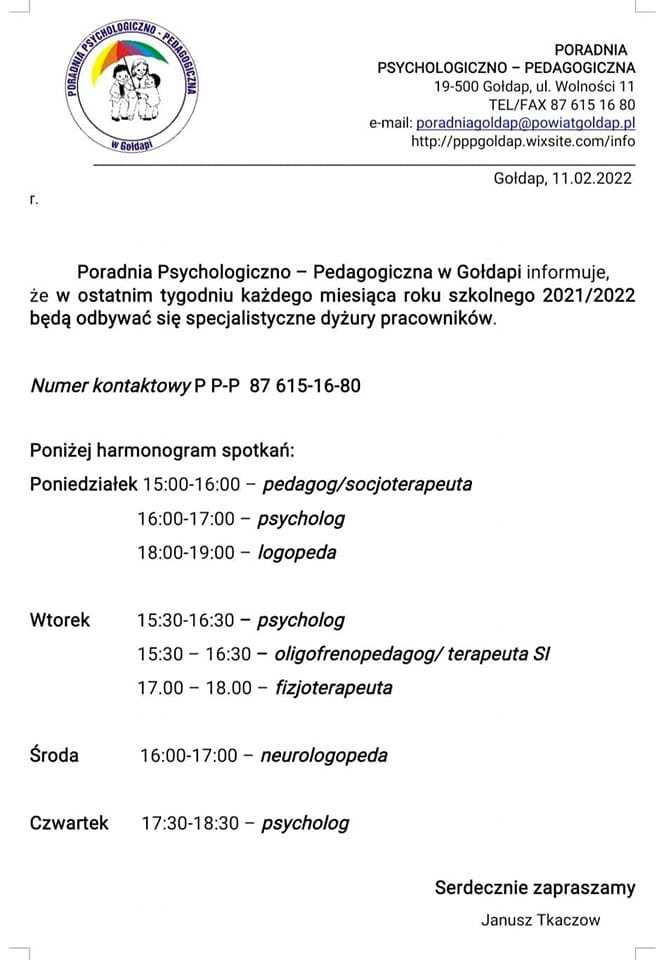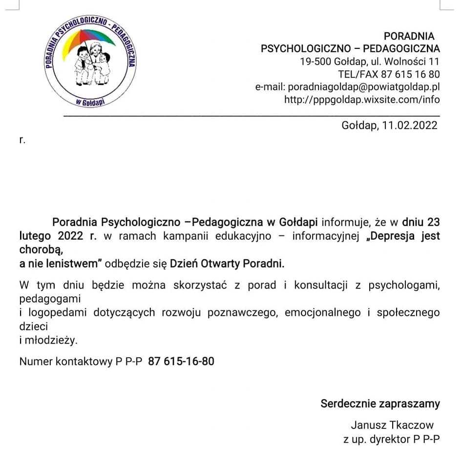 Informacje!!! 11 lutego 202211 lutego 2022 INFORMACJE PORADNI PSYCHOLOGICZNO – PEDAGOGICZNEJ W GOŁDAP!