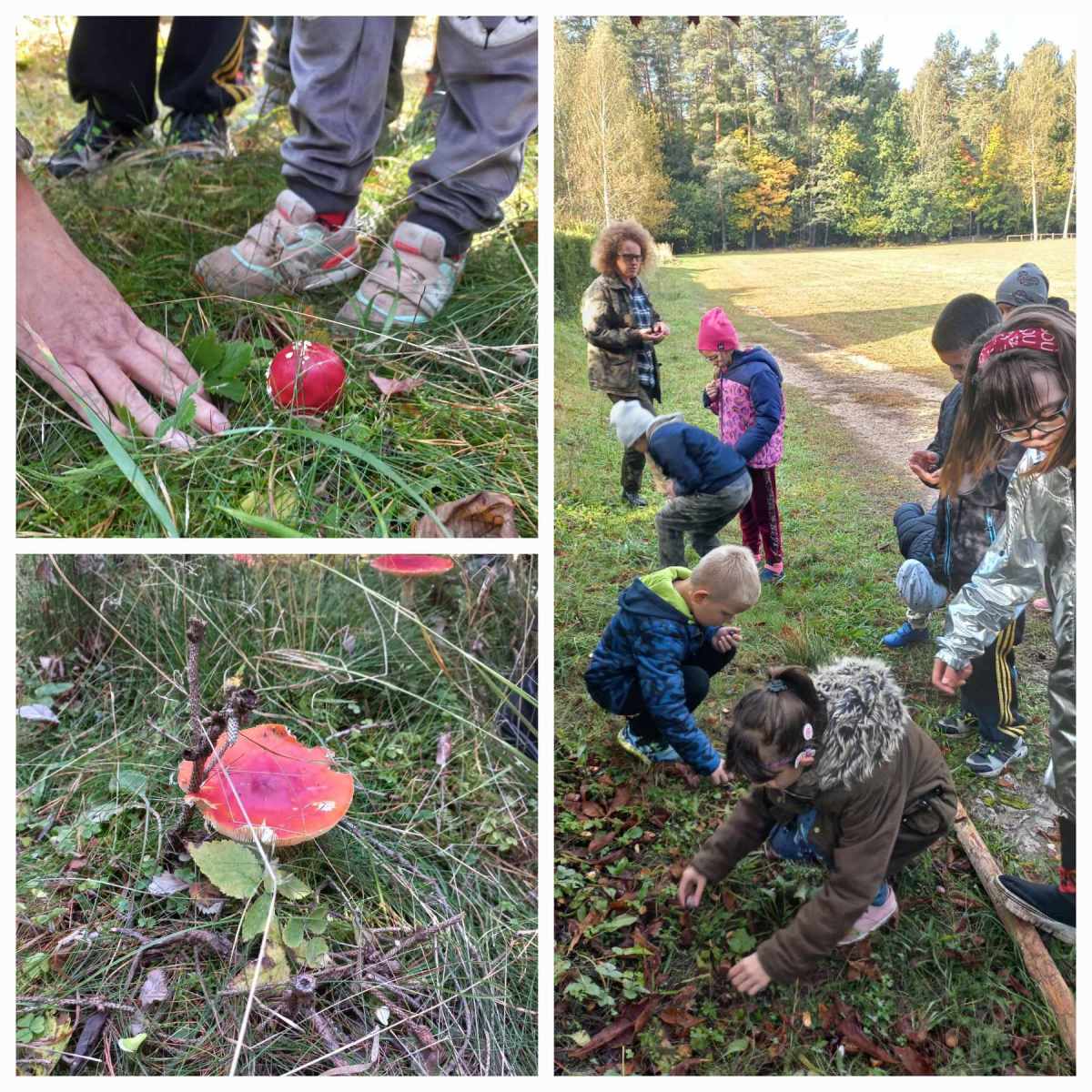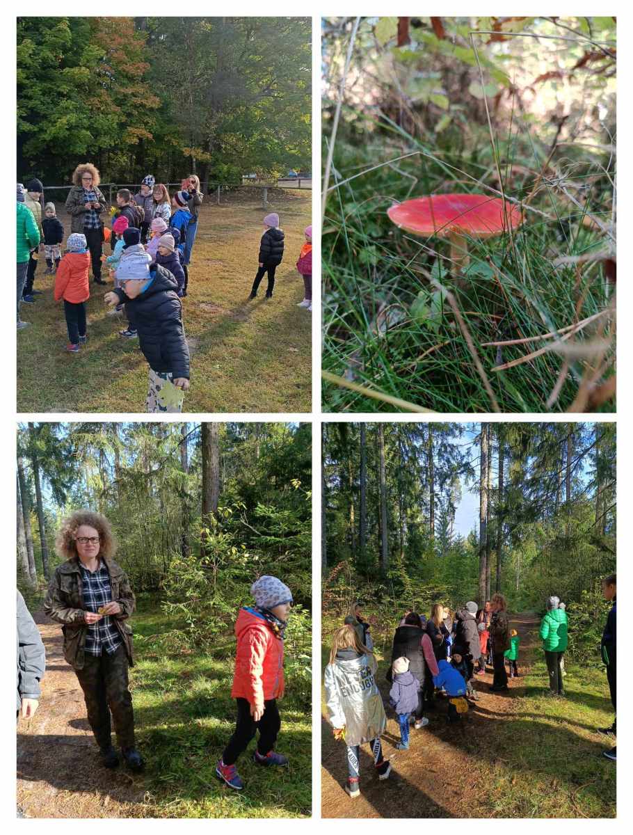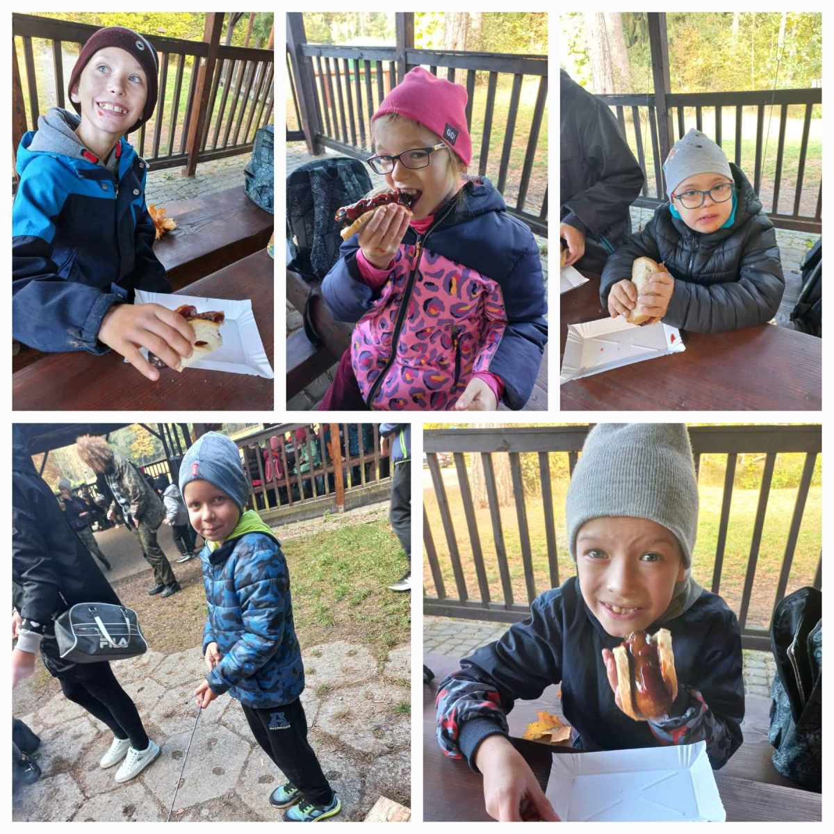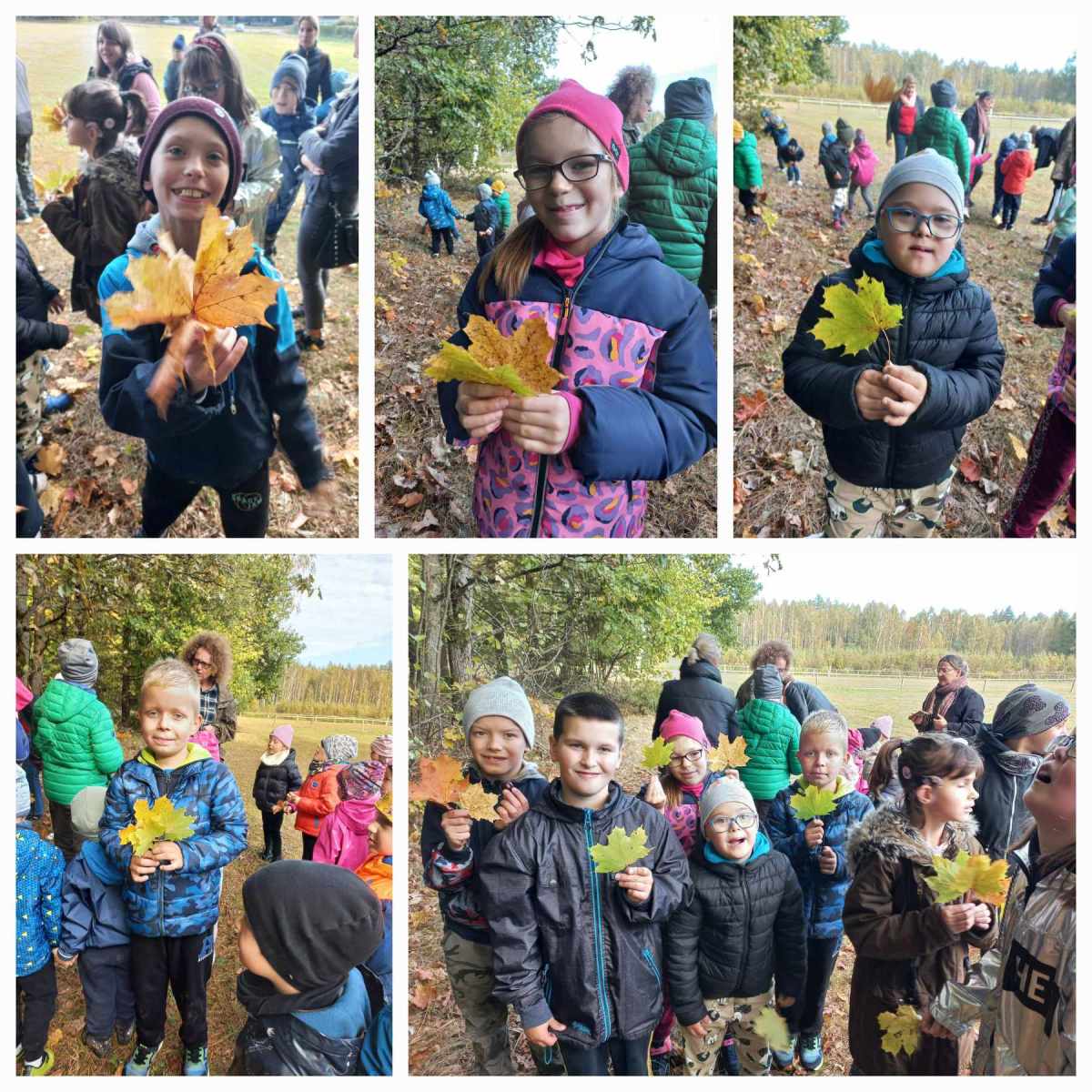 Korzystając ze sprzyjającej pogody, uczniowie naszej szkoły wraz z zaproszonymi dziećmi z Przedszkola Samorządowego nr 1 w Gołdapi wybrali się na wspólną wycieczkę do pobliskiego lasu. Na miejscu czekała na nas Pani Basia Jagłowska, z którą wyruszyliśmy na ścieżkę edukacyjną. Dzieci obserwowały przyrodę i zachodzące jesienią zmiany. Rozpoznawały różne rodzaje drzew. Zbierały kolorowe liście, kasztany, żołędzie i słuchały odgłosów lasu. Pogoda i humor wszystkim dopisały. Zajęcia zakończyły się wspólnym ogniskiem.