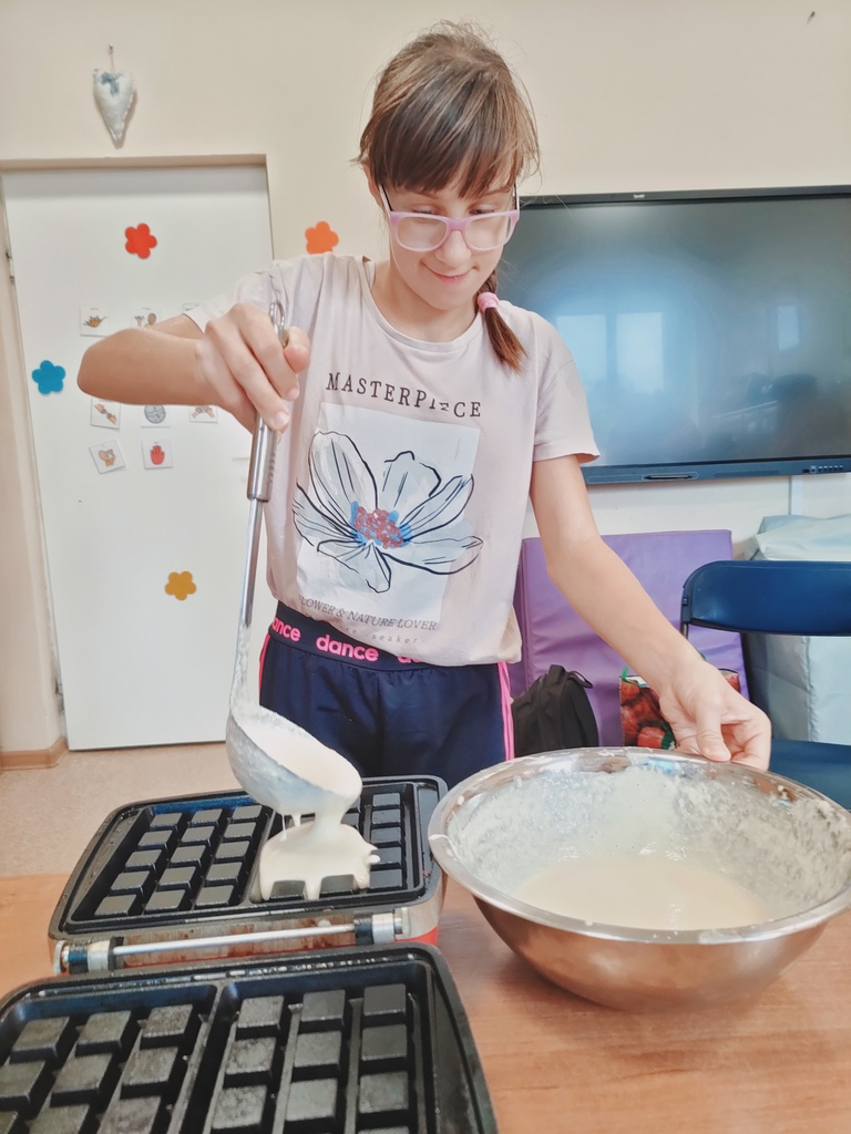 W dniu 12.10.2023r. uczniowie zet VII podczas zajęć funkcjonowania osobistego i społecznego postanowili przygotować gofry z wykorzystaniem przetworu owocowego – musu jabłkowego. Uczniowie posługiwali się akcesoriami kuchennymi pozyskanymi w ramach programu „Laboratoria Przyszłości”.