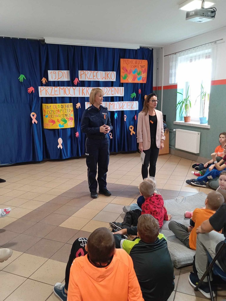 W dniach 1 – 19 listopada po raz kolejny nasza szkoła wzięła udział w Ogólnopolskiej Kampanii Społecznej „Pomarańczowa wstążka” przeciwko przemocy i krzywdzeniu dzieci i młodzieży. W ramach kampanii zostały przeprowadzone warsztaty i pogadanki przez psychologa, pedagoga oraz wychowawców. Poruszane były tematy o prawach dziecka, godności, szacunku i bezpieczeństwie. Dziękujemy Pani Agnieszce Zarzyckiej z Poradni Psychologiczno – Pedagogicznej oraz Pani Marcie Andruczyk z Komendy Powiatowej Policji w Gołdapi za przeprowadzenie pogadanki oraz przypomnienie celu corocznej kampanii.