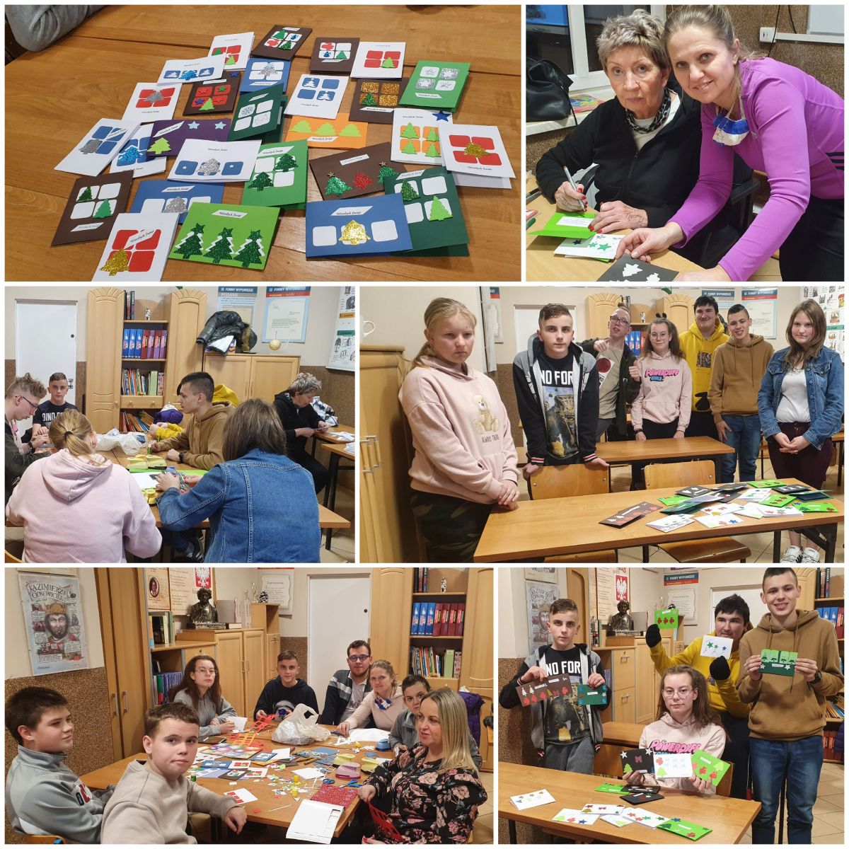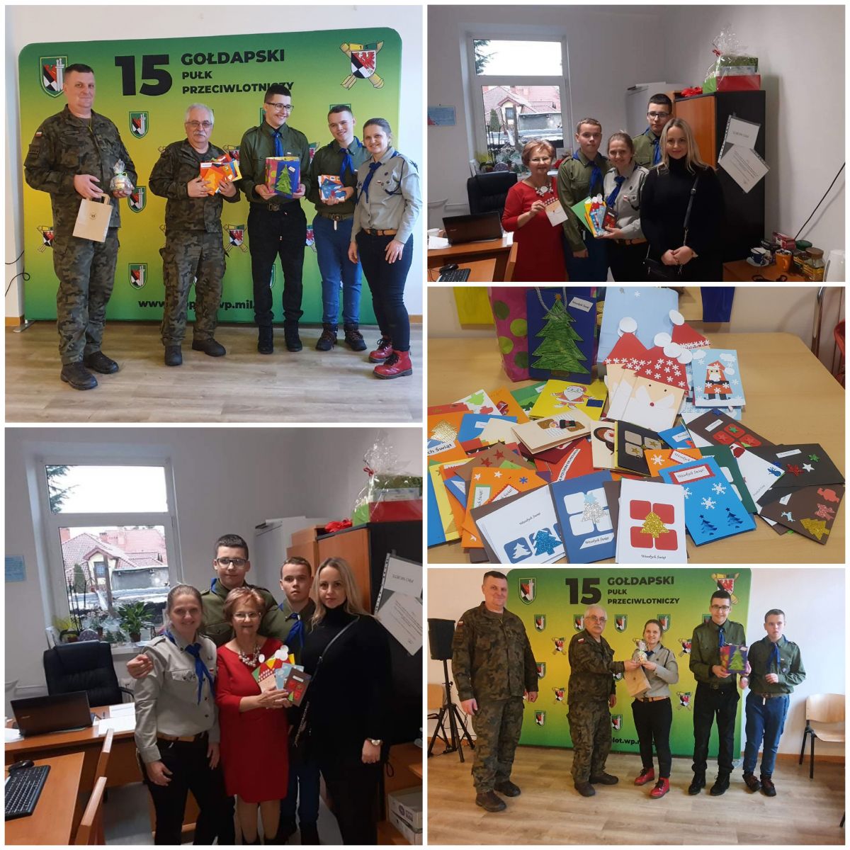 W okresie przedświątecznym harcerze z 6 Wielopoziomowej Drużyny Harcerskiej Nieprzetartego Szlaku „Giganci” oraz uczniowie ZPEW w Gołdapi pamiętali o osobach starszych i pracownikach służb mundurowych. Włączyli się do akcji: „Kartka świąteczna dla seniorów i pracowników służb mundurowych” wykonując przepiękne bożenarodzeniowe kartki z życzeniami. 16 grudnia druhny Anna Jaremus-Furtan i Anna Sajewicz-Buraczewska razem z przedstawicielami naszej drużyny harcerskiej – Bartoszem oraz Aleksandrem przekazali kartki pani Zofii Syperek – Dyrektor Samodzielnego Publicznego Zakładu Pielęgnacyjno – Opiekuńczego w Gołdapi oraz Szefowi Sekcji Wychowawczej 15. Gołdapskiego Pułku Przeciwlotniczego majorowi Grzegorzowi Łapińskiemu.