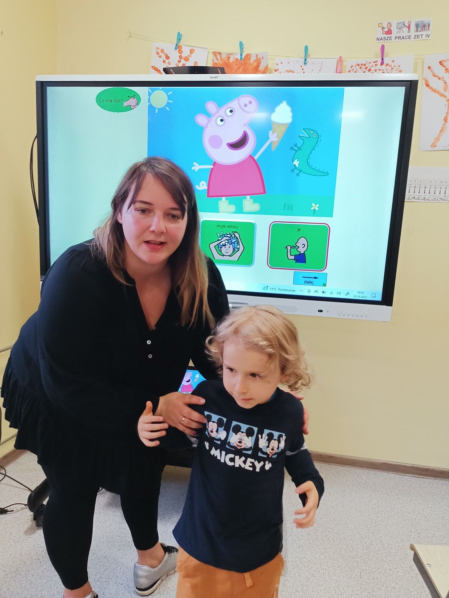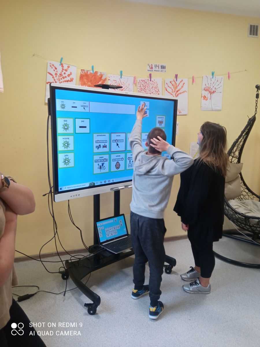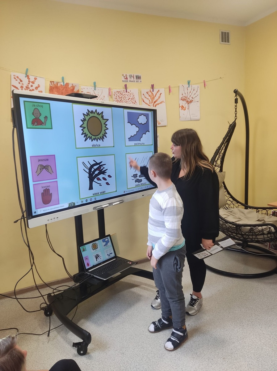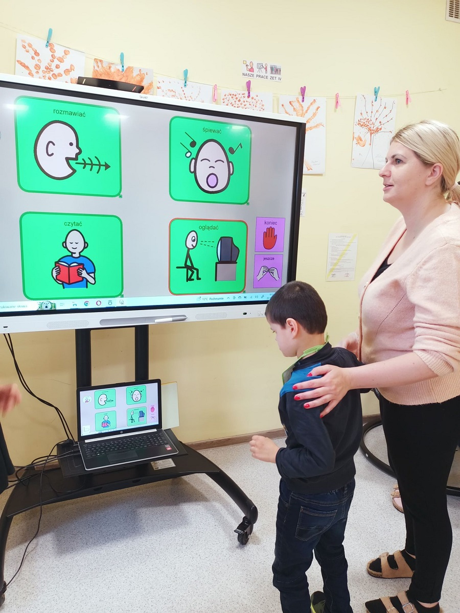 Dnia 25.10.2022 r. odbyły się grupowe zajęcia rozwijające komunikowanie się za pomocą oprogramowania boardmaker dynamically pro. Program ten wspiera rozwój mowy oraz rozwija umiejętności komunikacyjne. Październik jest Międzynarodowym Miesiącem Komunikacji Wspomagającej oraz Alternatywnej. W naszej placówce każdy może pokazać swój głos. Komunikacja w naszej szkole to podstawa! Komunikacja to nie prawo – to przywilej!