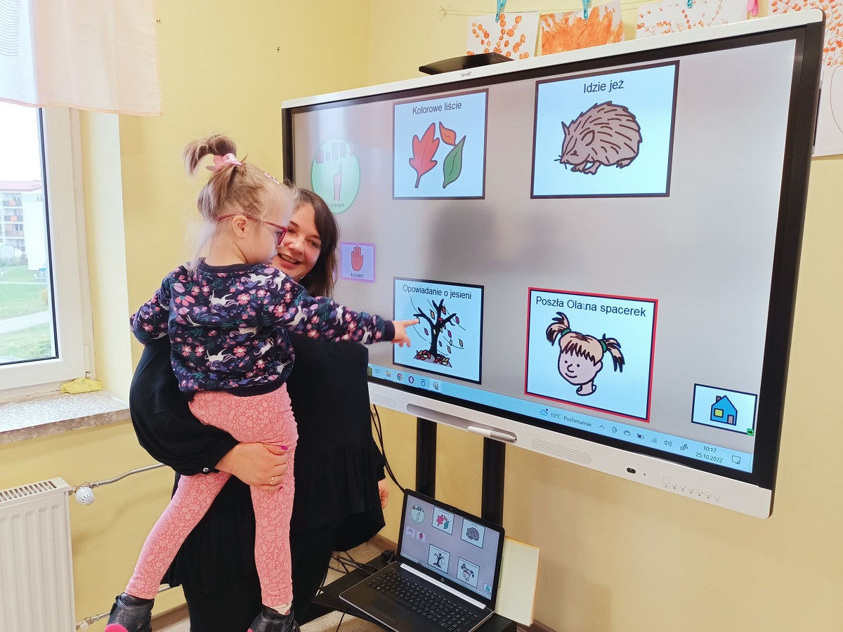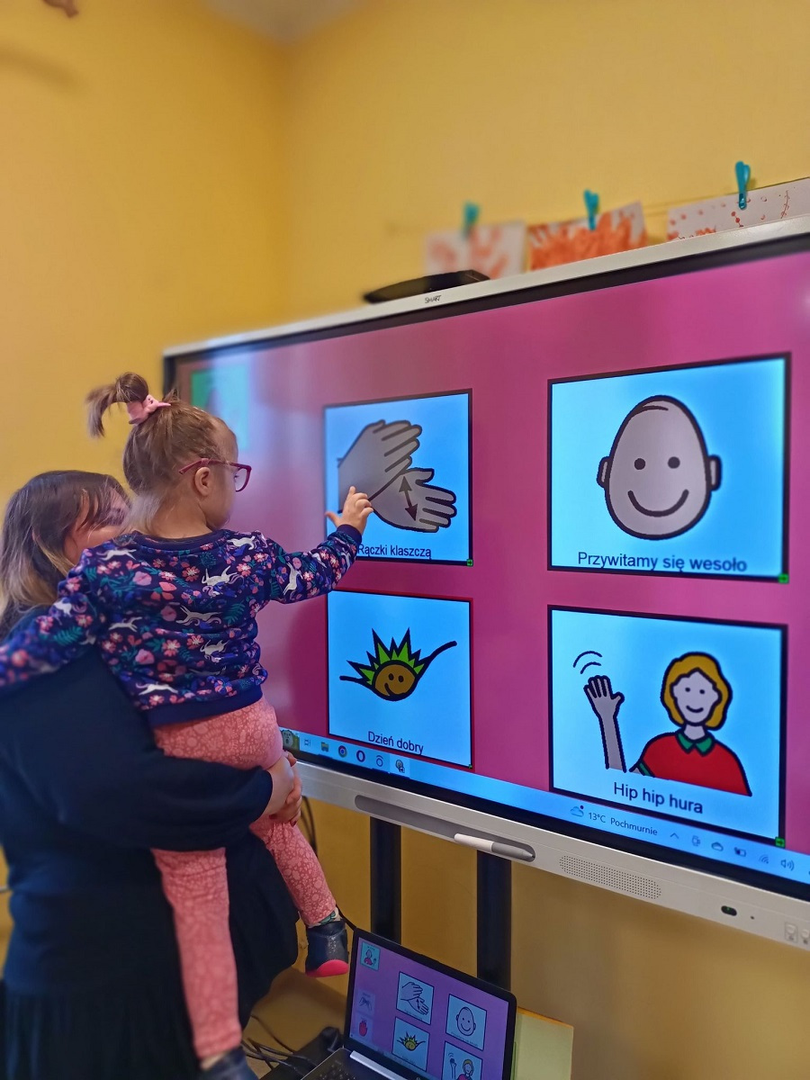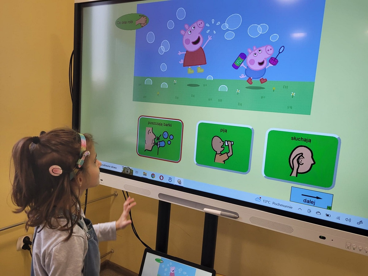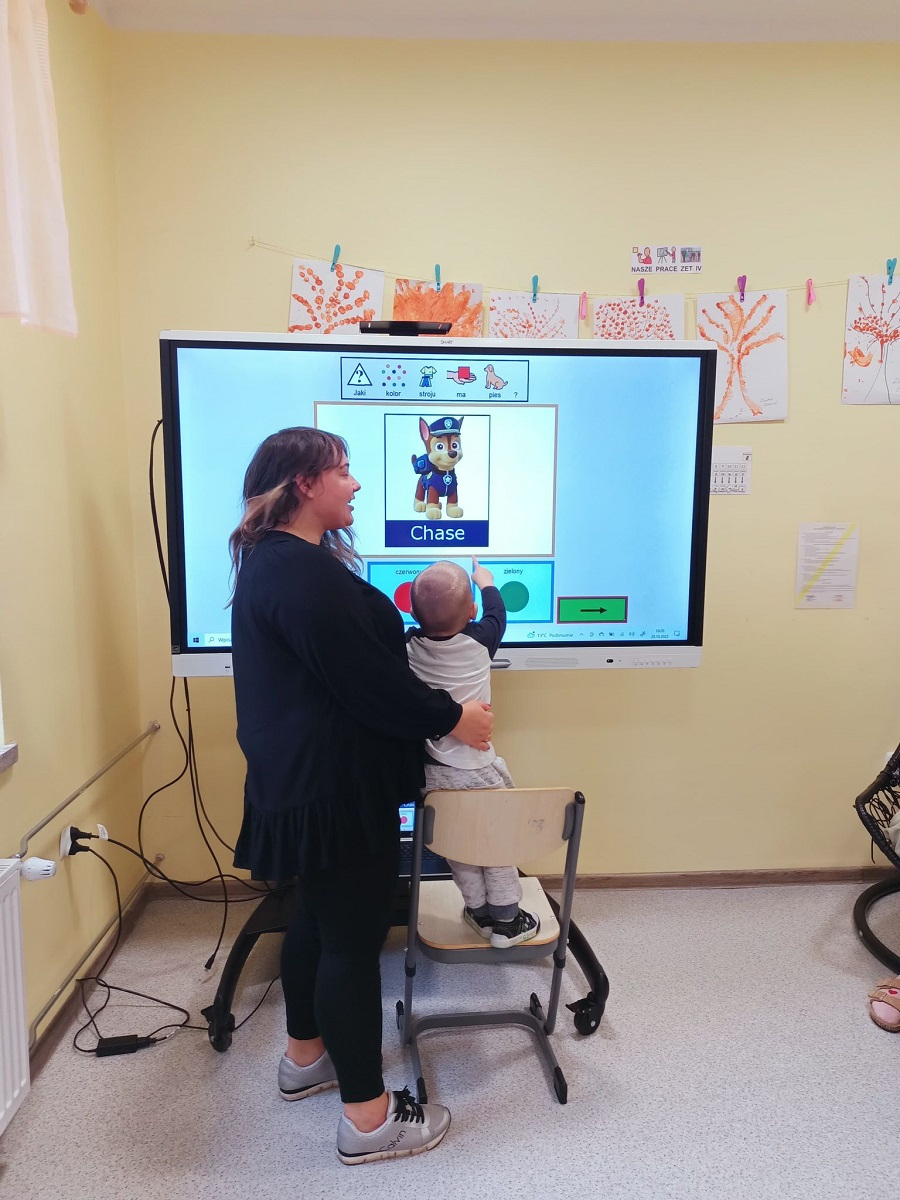 Dnia 25.10.2022 r. odbyły się grupowe zajęcia rozwijające komunikowanie się za pomocą oprogramowania boardmaker dynamically pro. Program ten wspiera rozwój mowy oraz rozwija umiejętności komunikacyjne. Październik jest Międzynarodowym Miesiącem Komunikacji Wspomagającej oraz Alternatywnej. W naszej placówce każdy może pokazać swój głos. Komunikacja w naszej szkole to podstawa! Komunikacja to nie prawo – to przywilej!