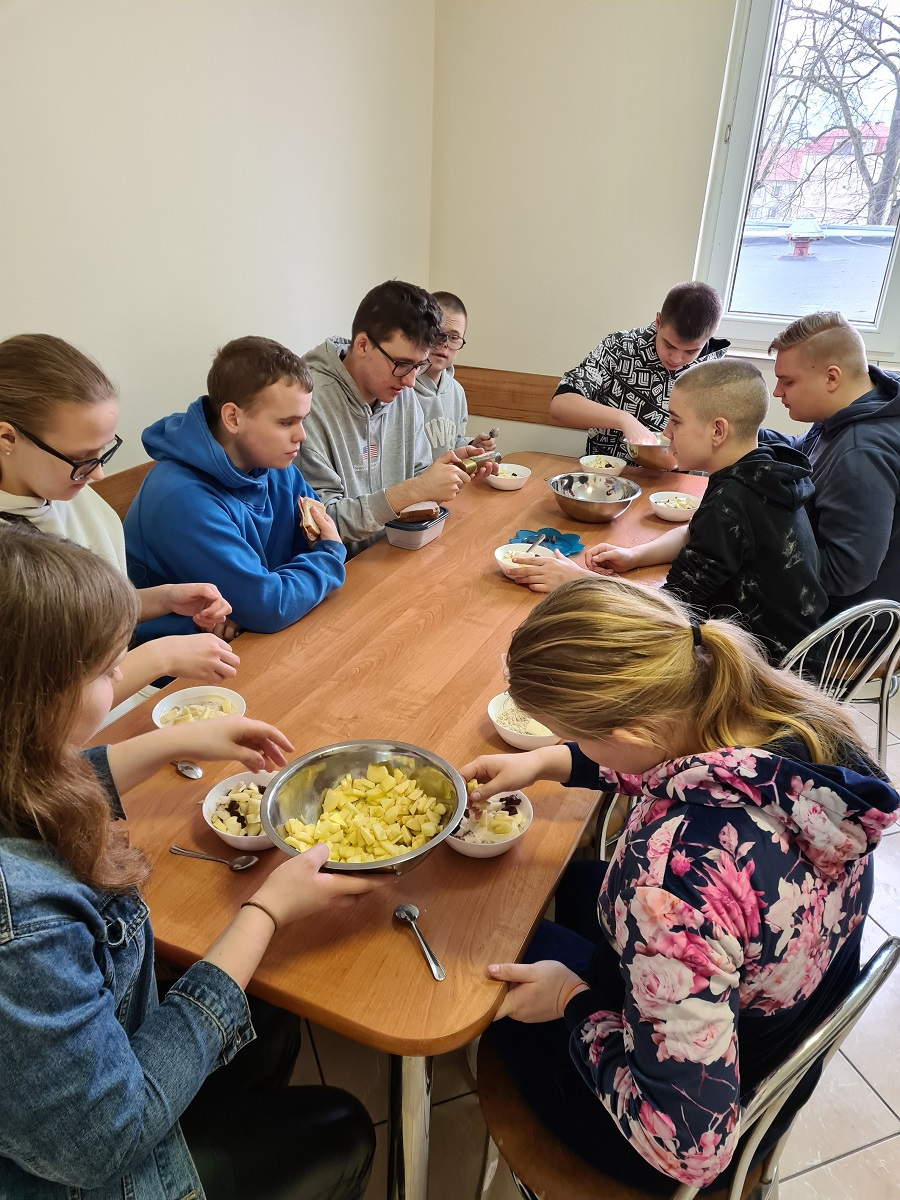 Uczniowie ZET VIII realizują Program Laboratoria Przyszłości uczestnicząc w różnorodnych zajęciach rozwijających ich wiedzę i umiejętności. Tym razem przygotowywali zdrowe drugie śniadanie z akcentem greckim. Do jego przygotowania wykorzystano akcesoria zakupione w ramach Programu.