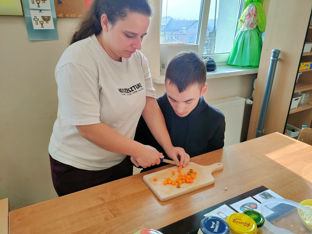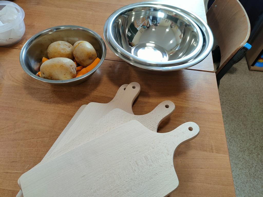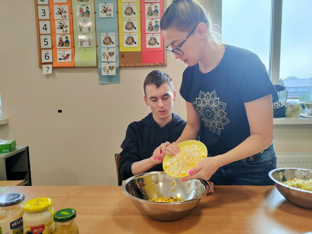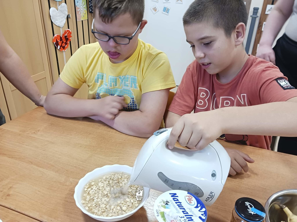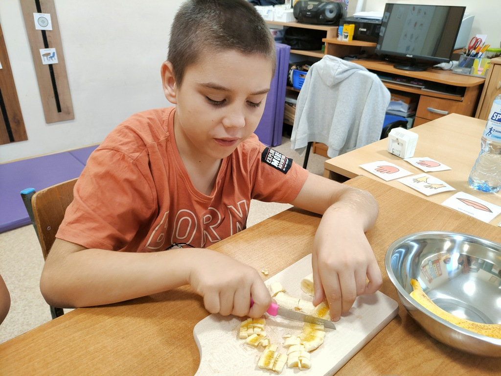 W październiku uczniowie ZET VI pod okiem p. Beaty Jurewicz, korzystając z przyborów kuchennych zakupionych w ramach programu Laboratoria Przyszłości, doskonalili umiejętności kulinarne. Uczniowie przygotowali sałatkę jarzynową i zdrowe śniadanie – płatki owsiane z jogurtem i bananem. Było praktycznie ale przede wszystkim pysznie.