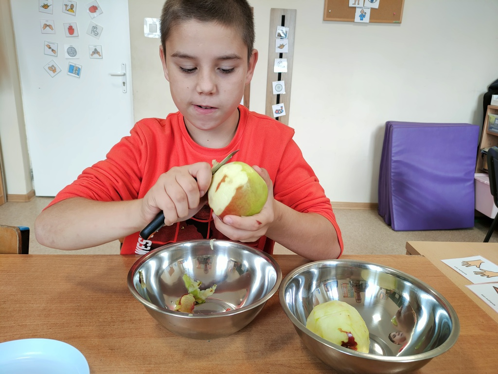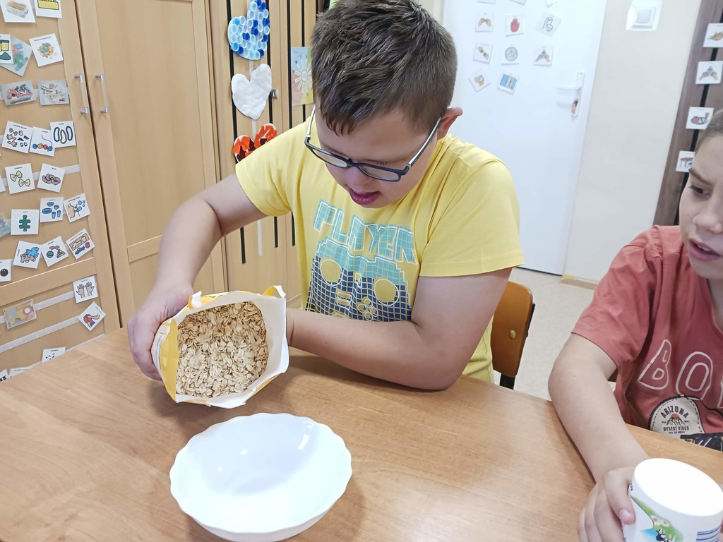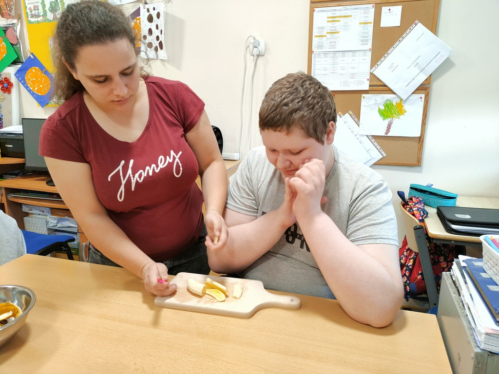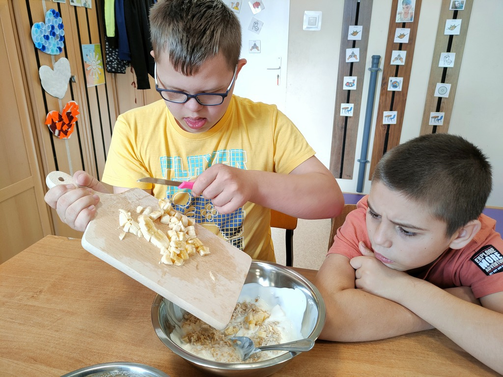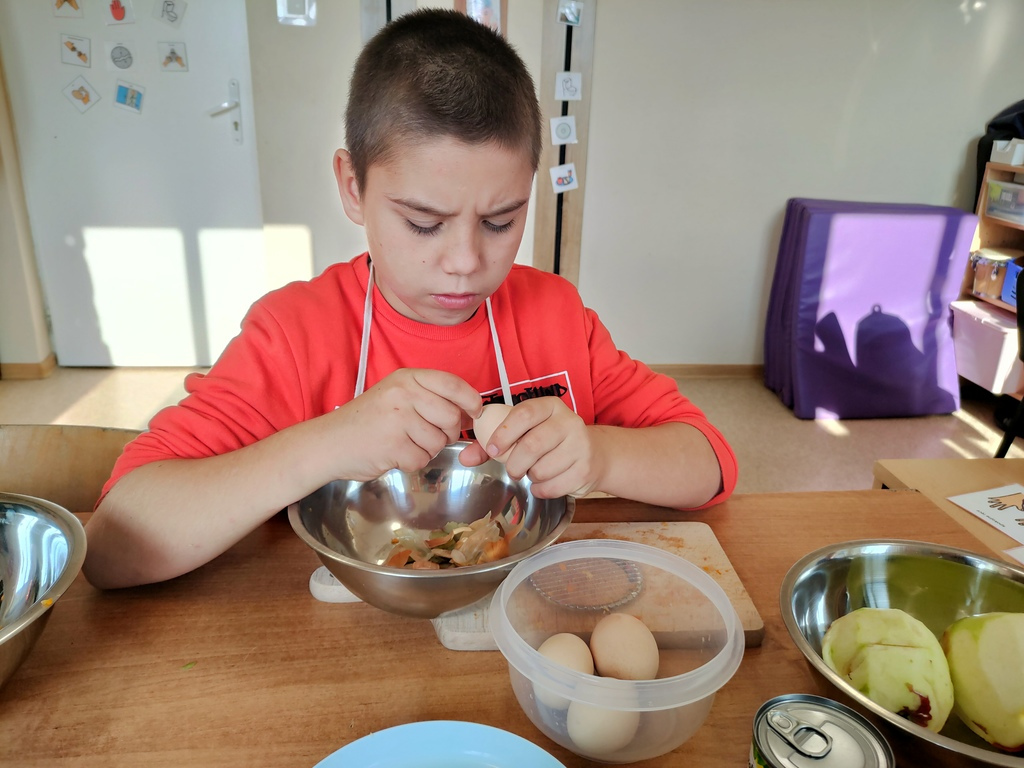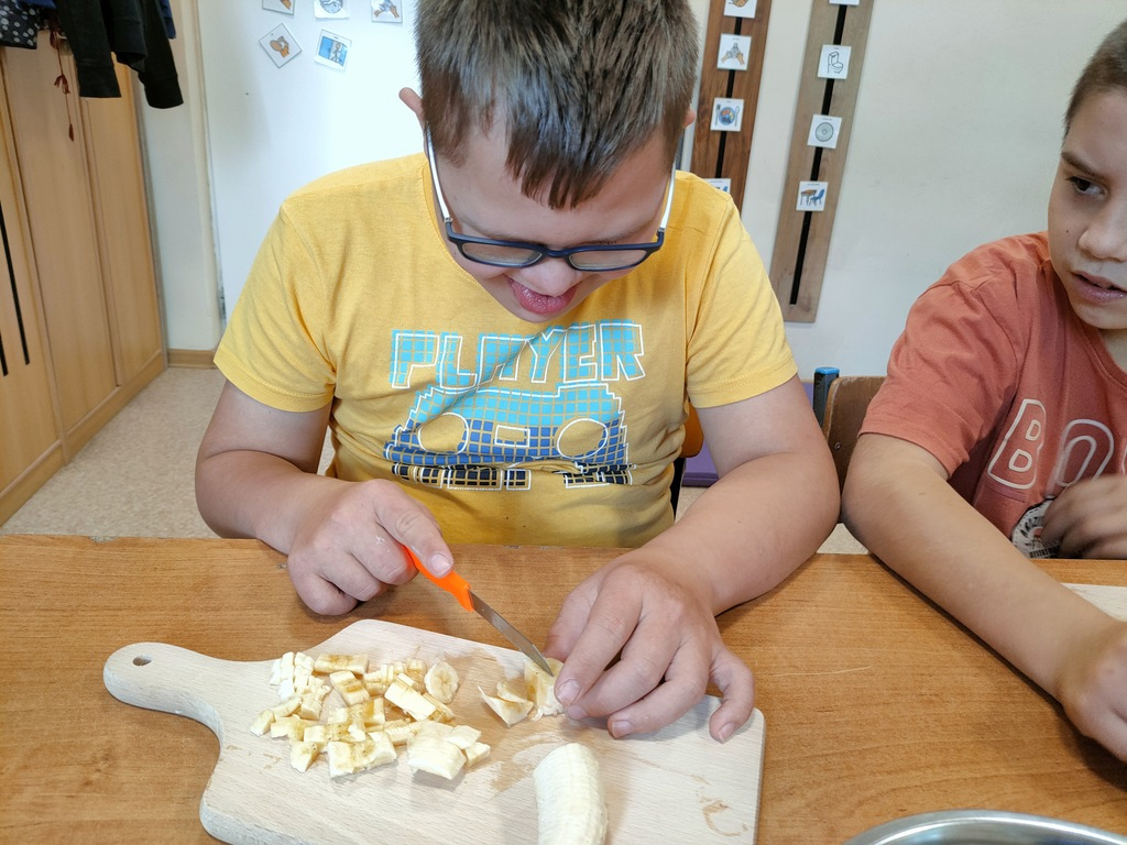 W październiku uczniowie ZET VI pod okiem p. Beaty Jurewicz, korzystając z przyborów kuchennych zakupionych w ramach programu Laboratoria Przyszłości, doskonalili umiejętności kulinarne. Uczniowie przygotowali sałatkę jarzynową i zdrowe śniadanie – płatki owsiane z jogurtem i bananem. Było praktycznie ale przede wszystkim pysznie.