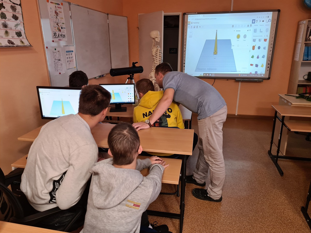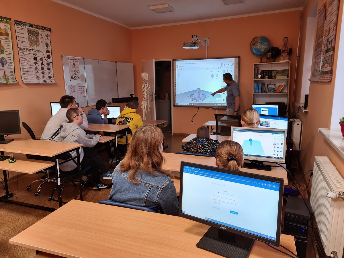 Uczniowie ZET VIII realizują Program Laboratoria Przyszłości z wykorzystaniem drukarki 3D. Podczas zajęć, zorganizowanych we współpracy wychowawcy oddziału z p. Adrianem Fiszerem, uczniowie zostali zapoznani z programem do projektowania wydruków na drukarce 3D, zakupionej w ramach Programu. Nowoczesna technologia i jej możliwości motywują uczniów do aktywnego uczestnictwa w zajęciach i rozwijania kompetencji cyfrowych.
