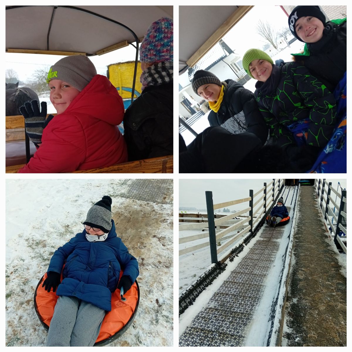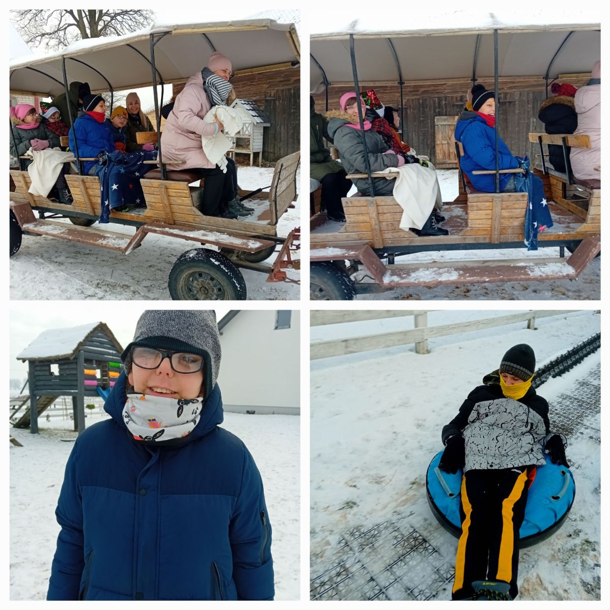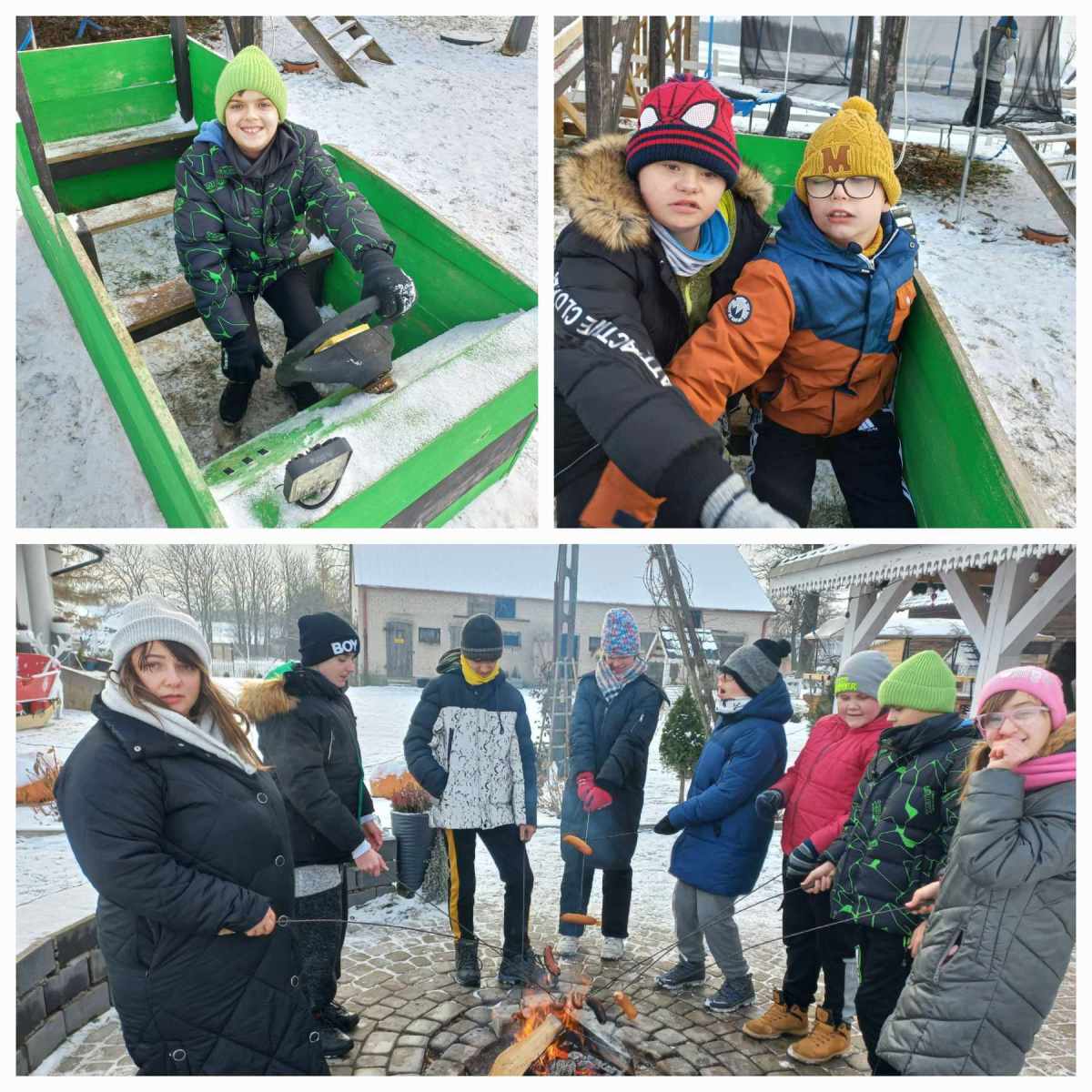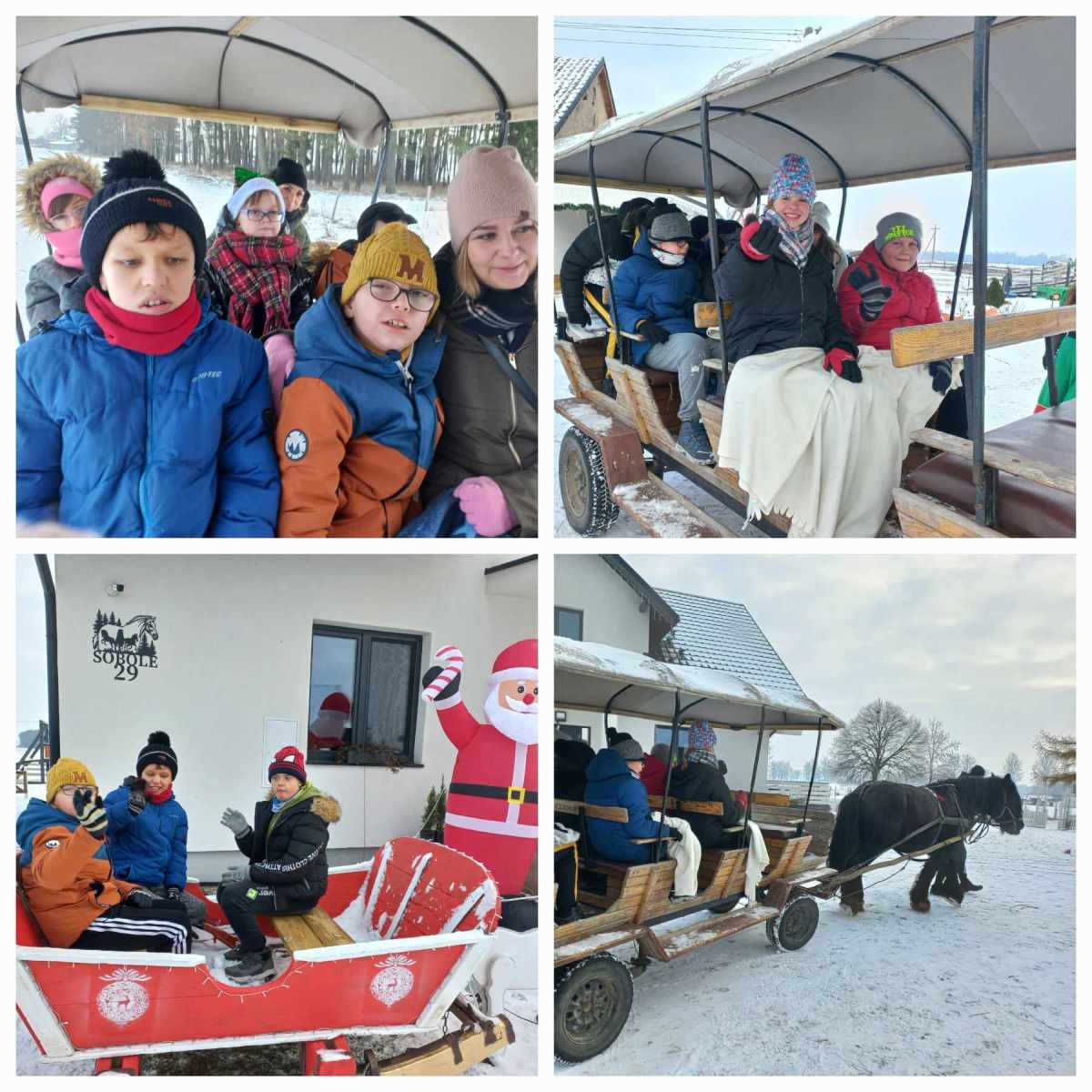 5 grudnia 2023r. Uczniowie zespołów edukacyjno-terapeutycznych uczestniczyli w mikołajkowej wycieczce do Sobol. Czekały  na uczniów takie atrakcje jak: przejazd bryczką, karmienie zwierząt, ognisko, zjazd pontonami oraz tyrolką, spotkanie z Świętym Mikołajem. Wróciliśmy zmęczeni, ale przepełnieni świątecznym nastrojem.