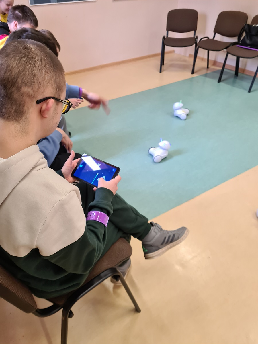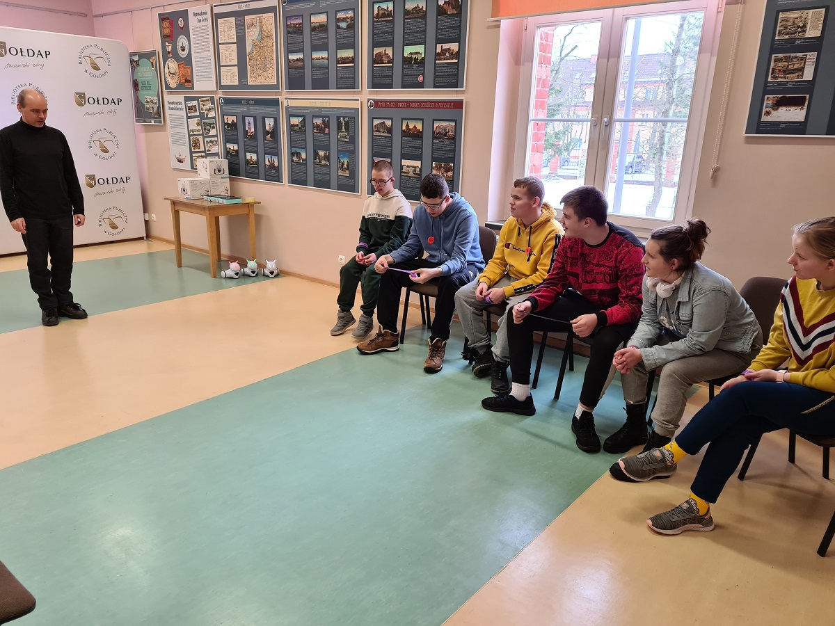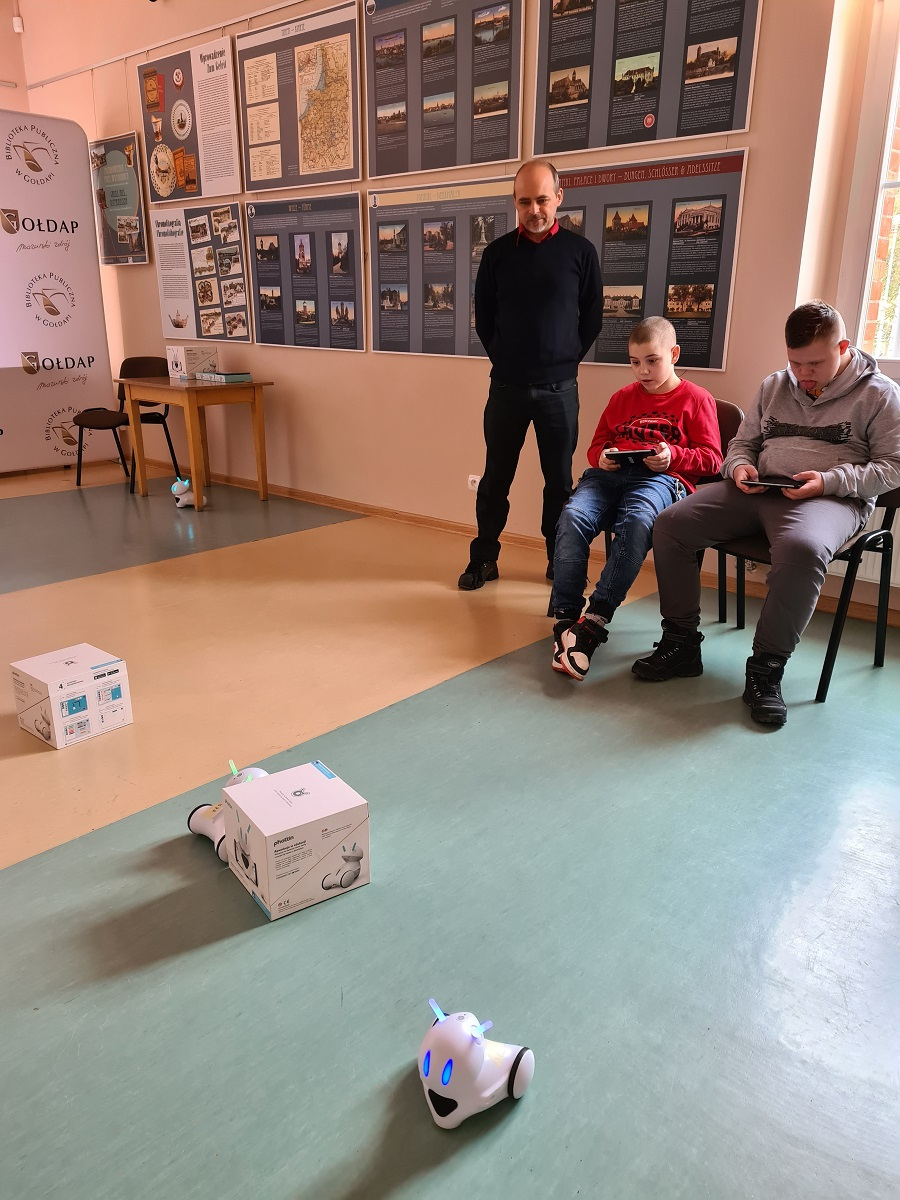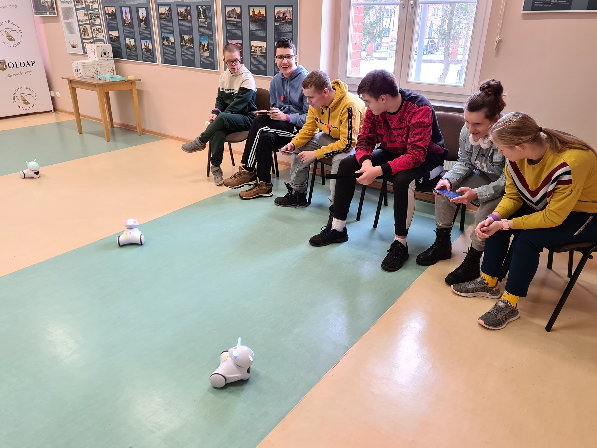 Uczniowie zespołów edukacyjno – terapeutycznych ZET VII i ZET VI, wraz z p. Beatą Kamińską rozwijali swoją wiedzę dotyczącą nowych technologii i nauki programowania oraz bezpieczeństwa w Internecie, podczas zajęć edukacyjnych zorganizowanych w Bibliotece Publicznej w Gołdapi (pracownia komputerowa). Uczniowie korzystali z zestawów robotów edukacyjnych Photonów.