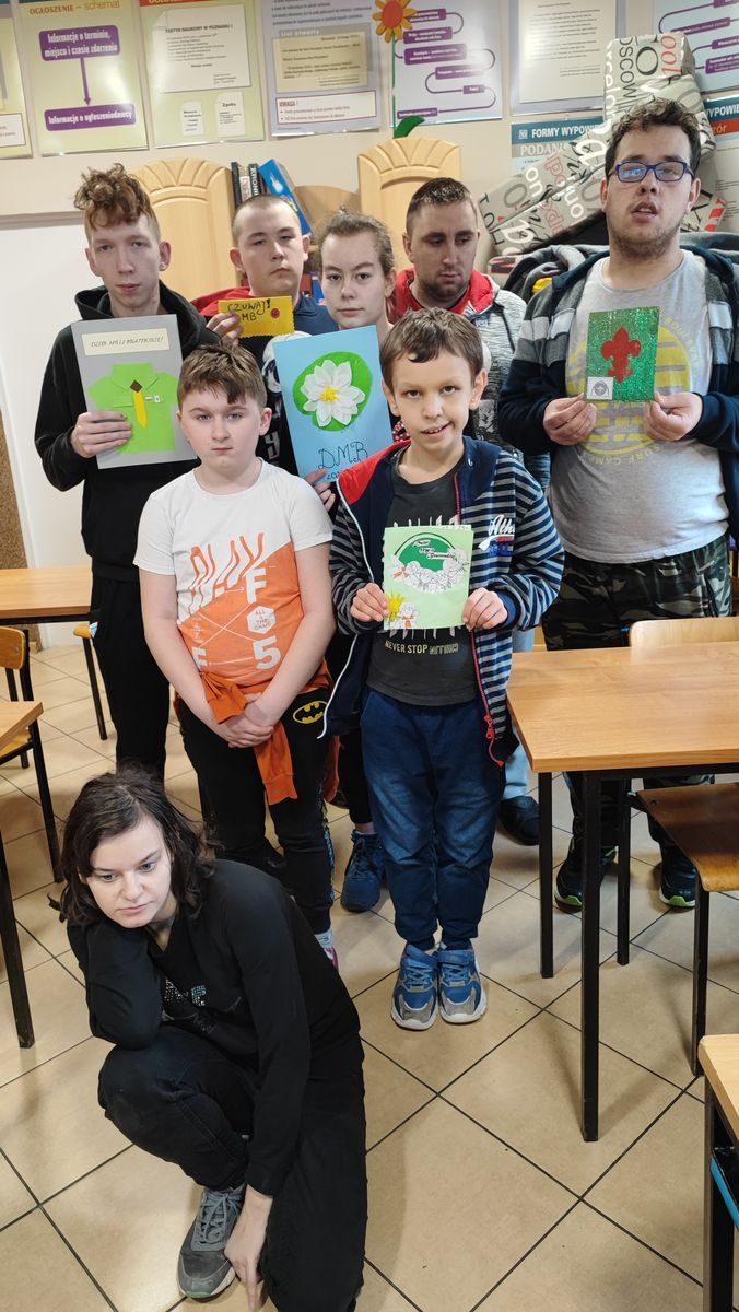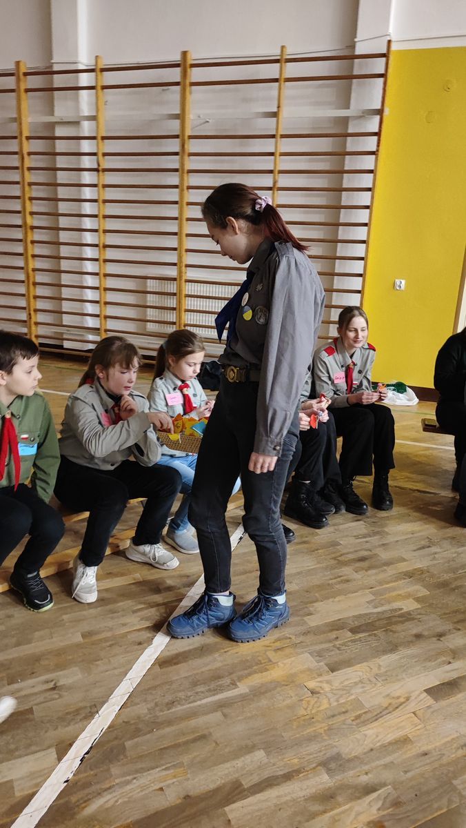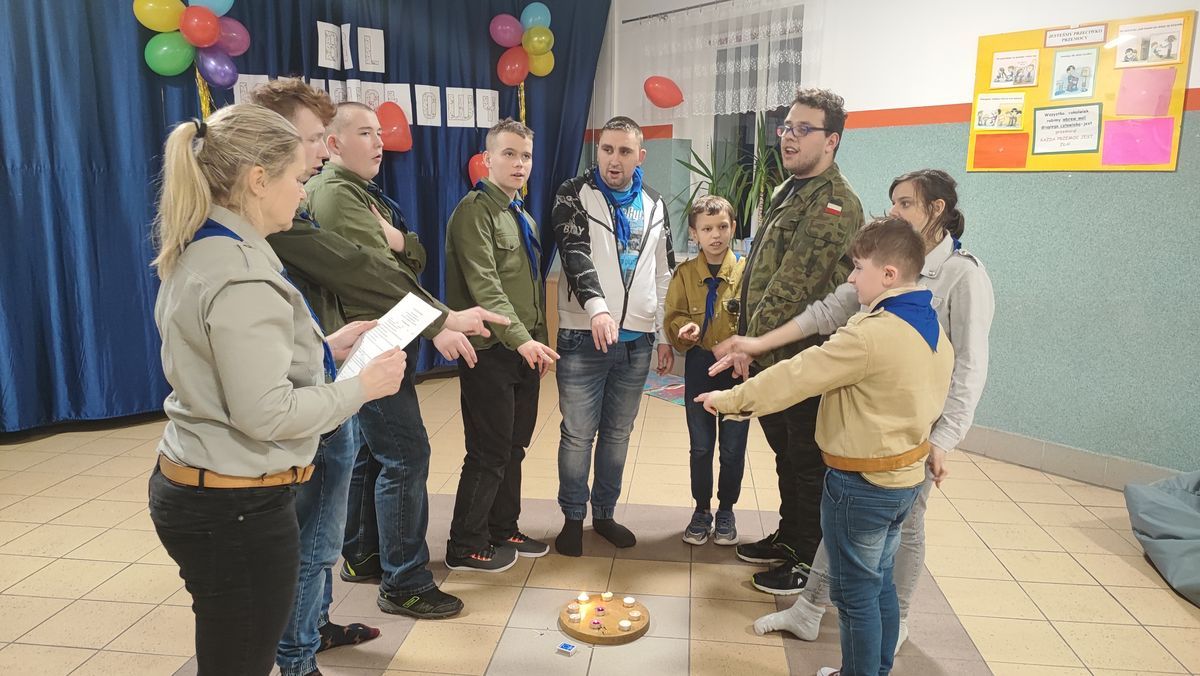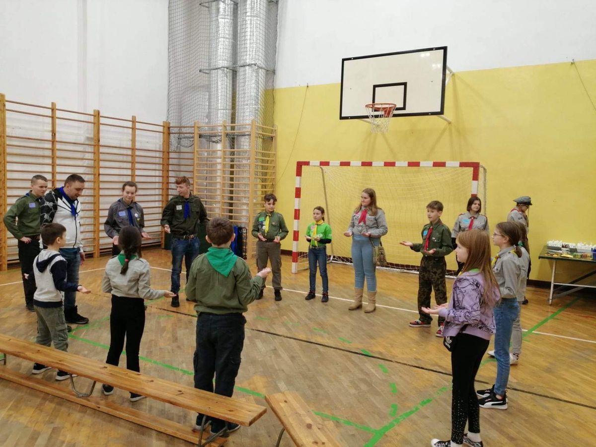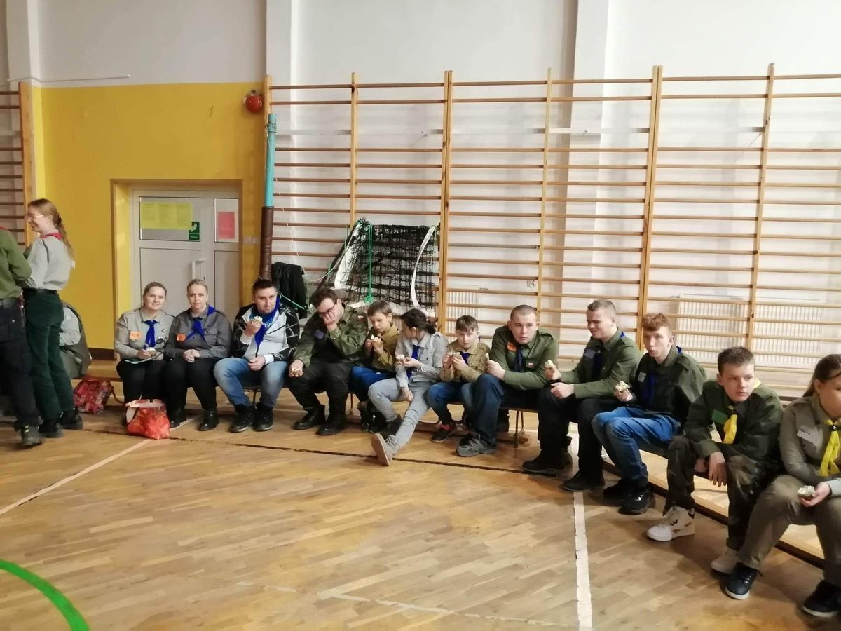 17 lutego 2023 r. o godz. 15.00 członkowie 6 Wielopoziomowej Drużyny Harcerskiej Nieprzetartego Szlaku „GIGANCI” spotkali się w ZPEW w Gołdapi by spędzić noc w szkole. Grafik był napięty ale wszystko udało się zrealizować. Zaraz po zakwaterowaniu harcerze wybrali się do Szkoły Podstawowej nr 2 w Gołdapi na uroczystość z okazji Dnia Myśli Braterskiej. Jak co roku spotkanie perfekcyjnie przygotowała 2 Wielopoziomowa Drużyna Harcerska AVES. Na kolację zjedli pyszną pizzę w restauracji. Kolejną atrakcją było świeczkowisko połączone z przyrzeczeniem harcerskim. Po dniu pełnym wrażeń ciężko było zmrużyć oko – pomogła „bajka” na dobranoc. Rano po gimnastyce i śniadaniu harcerze wykonali kartki zaprzyjaźnionym drużynom harcerskim z okazji Dnia Myśli Braterskiej. Celem nocki było utrwalenie harcerskiego systemu wychowawczego, integracja drużyny, a także trening umiejętności społecznych.