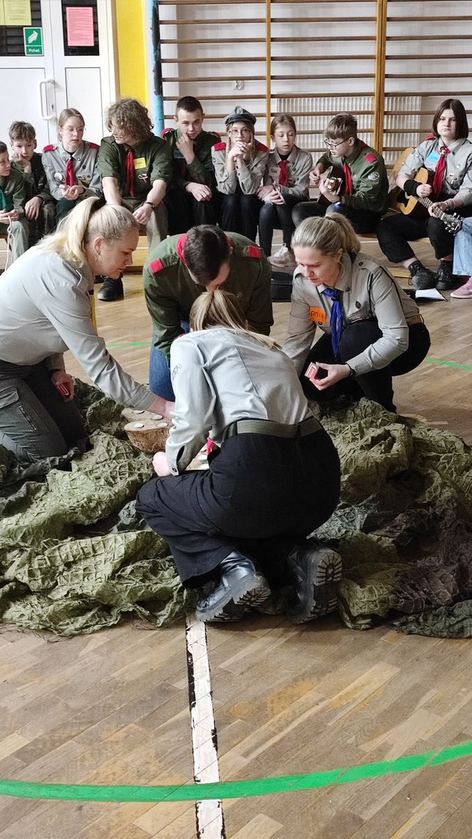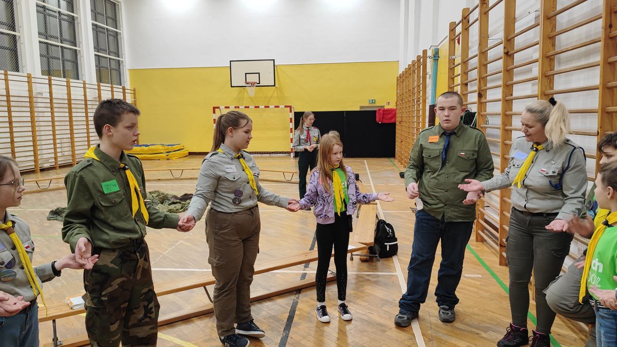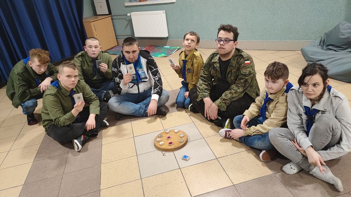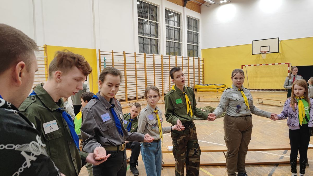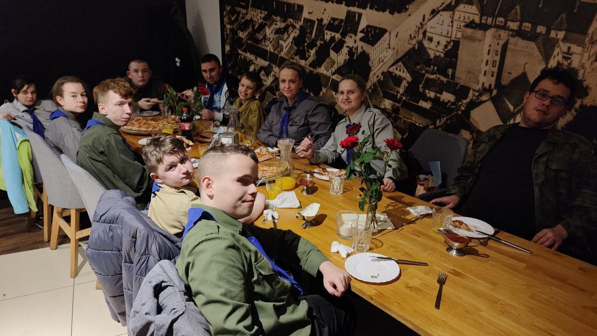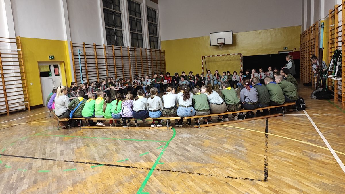 17 lutego 2023 r. o godz. 15.00 członkowie 6 Wielopoziomowej Drużyny Harcerskiej Nieprzetartego Szlaku „GIGANCI” spotkali się w ZPEW w Gołdapi by spędzić noc w szkole. Grafik był napięty ale wszystko udało się zrealizować. Zaraz po zakwaterowaniu harcerze wybrali się do Szkoły Podstawowej nr 2 w Gołdapi na uroczystość z okazji Dnia Myśli Braterskiej. Jak co roku spotkanie perfekcyjnie przygotowała 2 Wielopoziomowa Drużyna Harcerska AVES. Na kolację zjedli pyszną pizzę w restauracji. Kolejną atrakcją było świeczkowisko połączone z przyrzeczeniem harcerskim. Po dniu pełnym wrażeń ciężko było zmrużyć oko – pomogła „bajka” na dobranoc. Rano po gimnastyce i śniadaniu harcerze wykonali kartki zaprzyjaźnionym drużynom harcerskim z okazji Dnia Myśli Braterskiej. Celem nocki było utrwalenie harcerskiego systemu wychowawczego, integracja drużyny, a także trening umiejętności społecznych.
