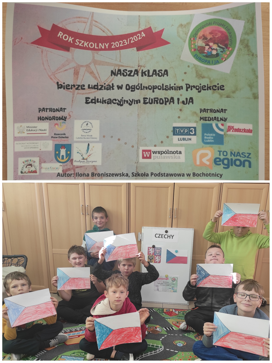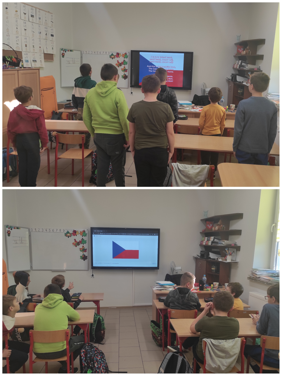 Ogólnopolski projekt edukacyjny ,,Europa i Ja”. 17 października 2023 Uczniowie kl. II-III rozpoczęli swoją podróż z projektem edukacyjnym ,,Europa i Ja”, a nasz wybrany kraj to Czechy. Na początek poznaliśmy symbole narodowe oraz wysłuchaliśmy z powagą hymnu państwowego.
