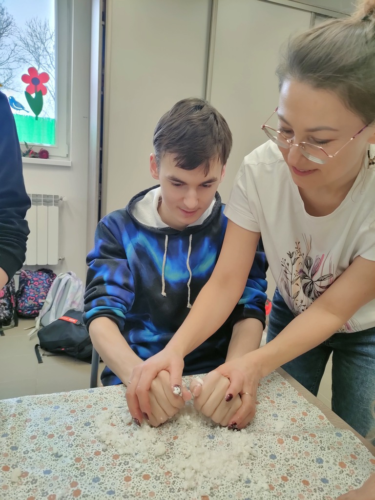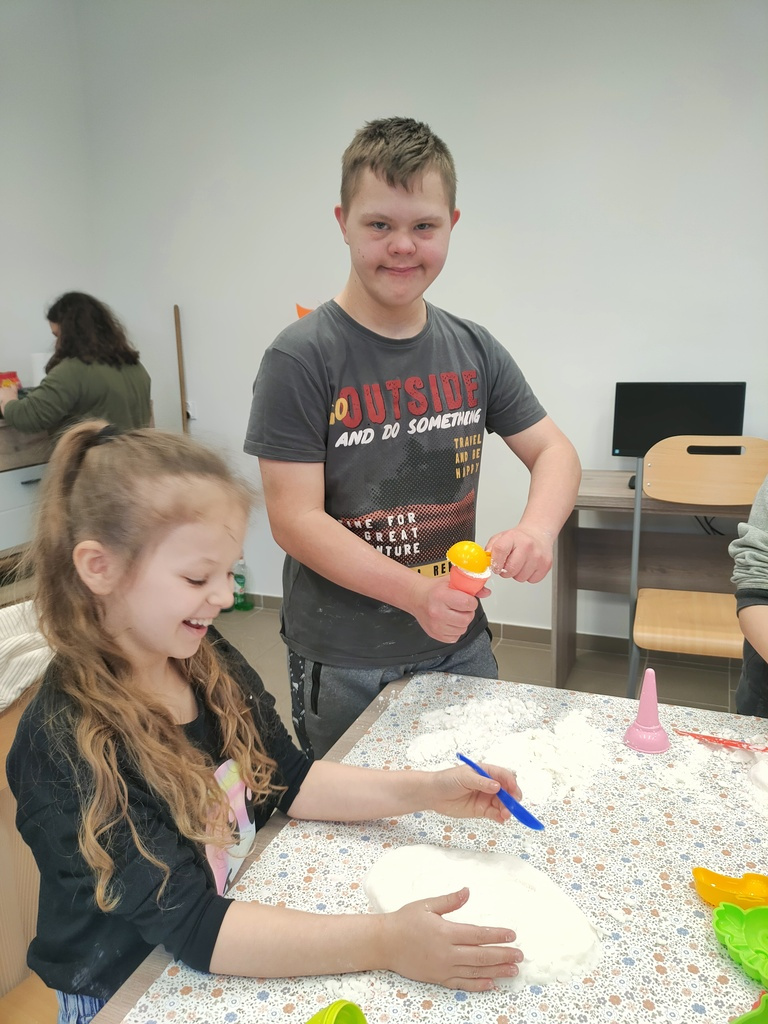 W dniu 14.03.2024r. w Zespole Placówek Edukacyjno-Wychowawczych w Gołdapi gościliśmy uczniów kl. III A ze Szkoły Podstawowej nr 1 z Oddziałami Integracyjnymi im. Mikołaja Kopernika w Gołdapi. Uczniowie zwiedzili placówkę, poznali dyrekcję, pracowników administracji oraz nauczycieli, którzy zapoznali ich z charakterem wykonywanej przez siebie pracy. Uczniowie mieli również okazję poznać wychowanków ZPEW. Dzieci stwierdziły, że nasza placówka jest jak labirynt, dopytywały się czy nie gubimy się w niej, w tym labiryncie… W czasie pobytu nasi goście uczestniczyli w warsztatach sensoplastycznych – poznali przepis i samodzielnie wykonali sztuczny śnieg. Zabawa była przednia, w sam raz na przedwiosenny czas. Dziękujemy za odwiedziny oraz miło spędzony czas. Pozdrawiamy J