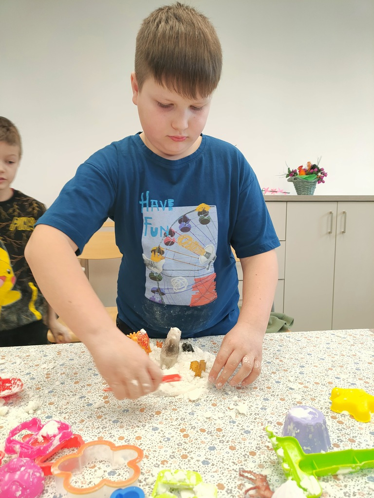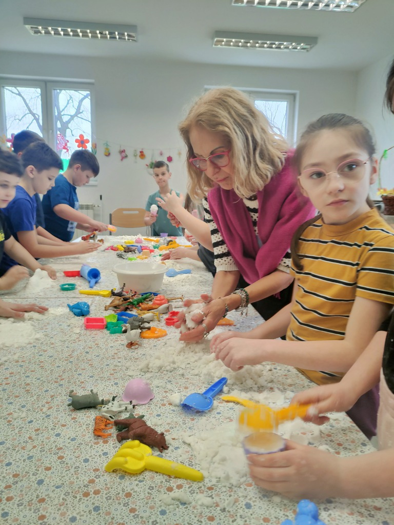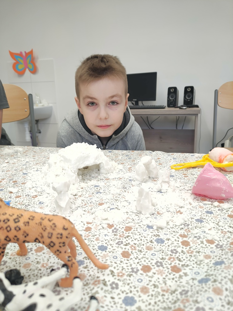 W dniu 14.03.2024r. w Zespole Placówek Edukacyjno-Wychowawczych w Gołdapi gościliśmy uczniów kl. III A ze Szkoły Podstawowej nr 1 z Oddziałami Integracyjnymi im. Mikołaja Kopernika w Gołdapi. Uczniowie zwiedzili placówkę, poznali dyrekcję, pracowników administracji oraz nauczycieli, którzy zapoznali ich z charakterem wykonywanej przez siebie pracy. Uczniowie mieli również okazję poznać wychowanków ZPEW. Dzieci stwierdziły, że nasza placówka jest jak labirynt, dopytywały się czy nie gubimy się w niej, w tym labiryncie… W czasie pobytu nasi goście uczestniczyli w warsztatach sensoplastycznych – poznali przepis i samodzielnie wykonali sztuczny śnieg. Zabawa była przednia, w sam raz na przedwiosenny czas. Dziękujemy za odwiedziny oraz miło spędzony czas. Pozdrawiamy J