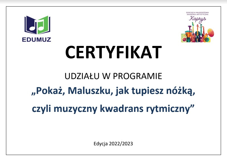 „Pokaż Maluszku, jak tupiesz nóżką, czyli muzyczny kwadrans rytmiczny” 12 czerwca 202312 czerwca 2023 Oddziały przedszkolne brały udział w programie ” Pokaż Maluszku, jak tupiesz nóżką, czyli muzyczny kwadrans rytmiczny” koordynator Sylwia Oleszczuk.