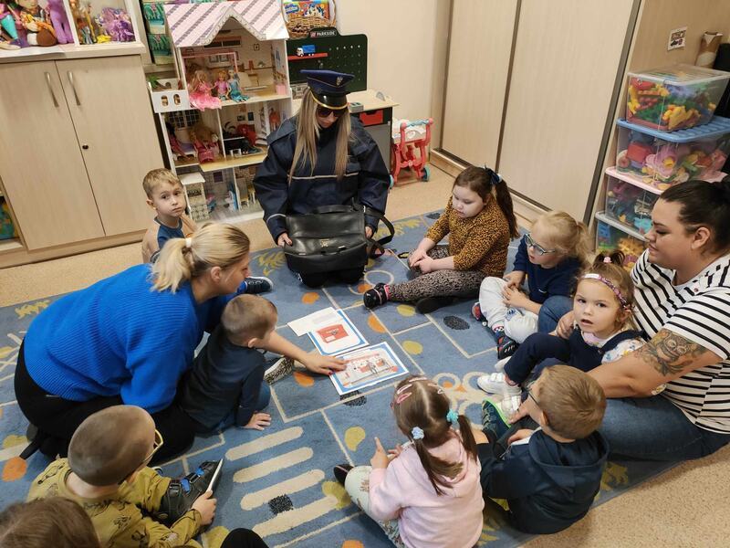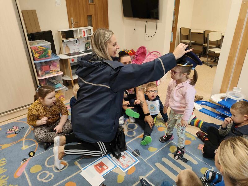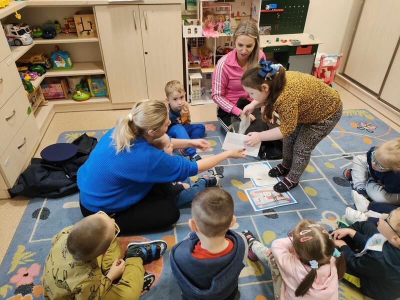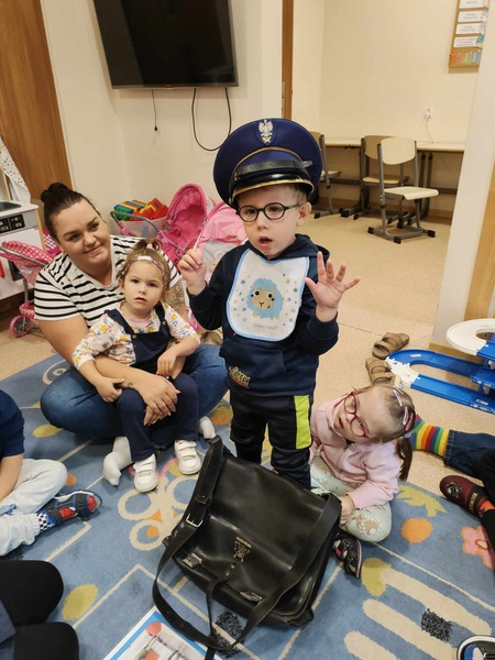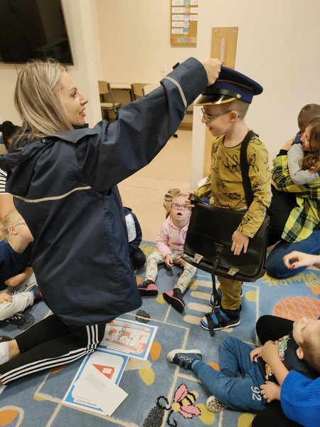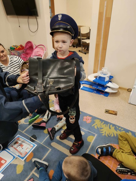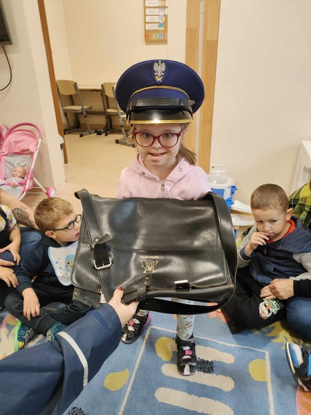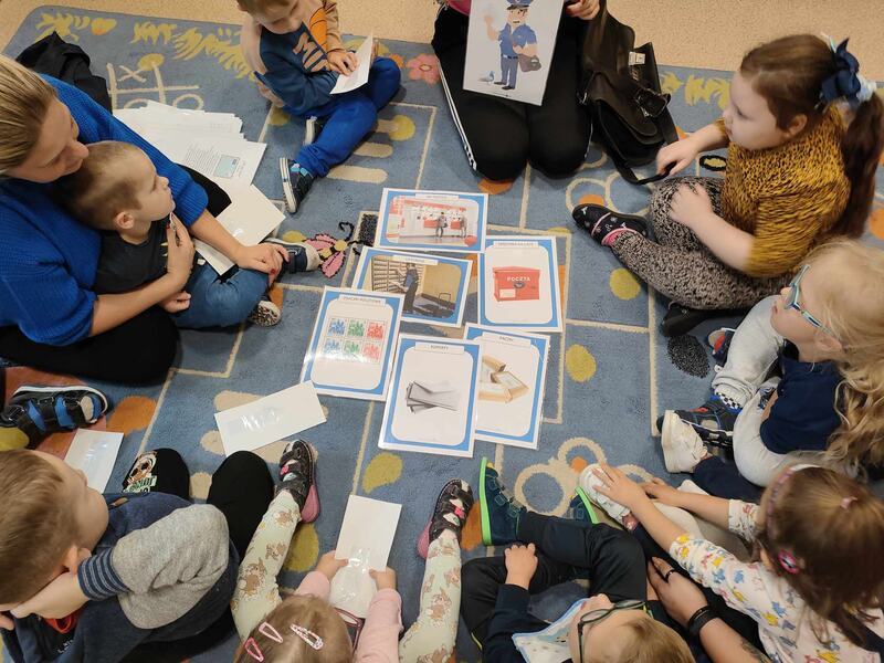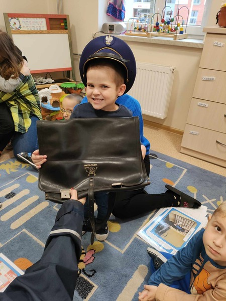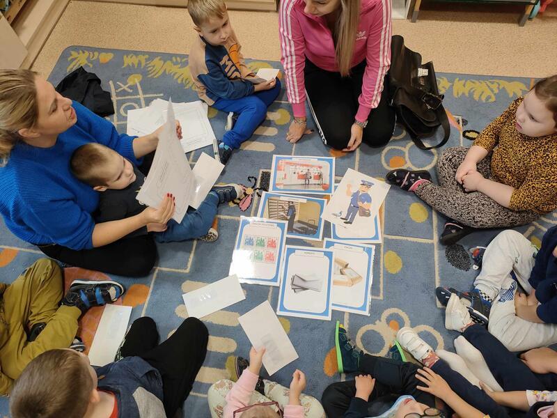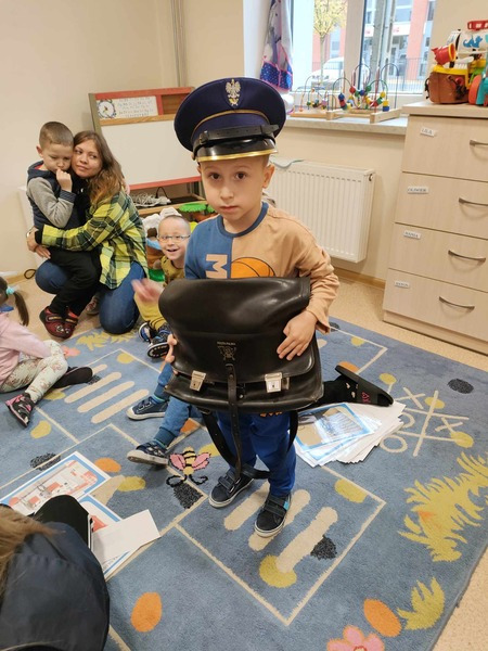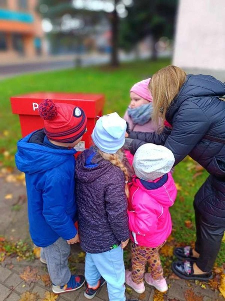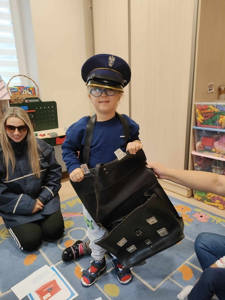 Przedszkolaki odwiedził specjalny gość, listonosz. Dzieci mogły zobaczyć logo poczty, skrzynkę czerwoną do wysyłania listów. Nasz gość zaprezentował wszystkim swoją ogromną torbę, w której nosi listy. Pozwolił także chętnym dzieciom ją przymierzyć. Dzięki tej wizycie dzieci dowiedziały się, jak trudna i odpowiedzialna jest praca listonosza.