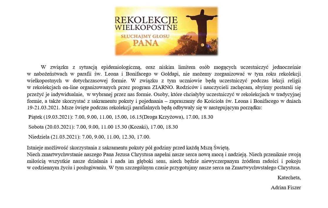 Zapraszamy na Rekolekcje Wielkopostne.