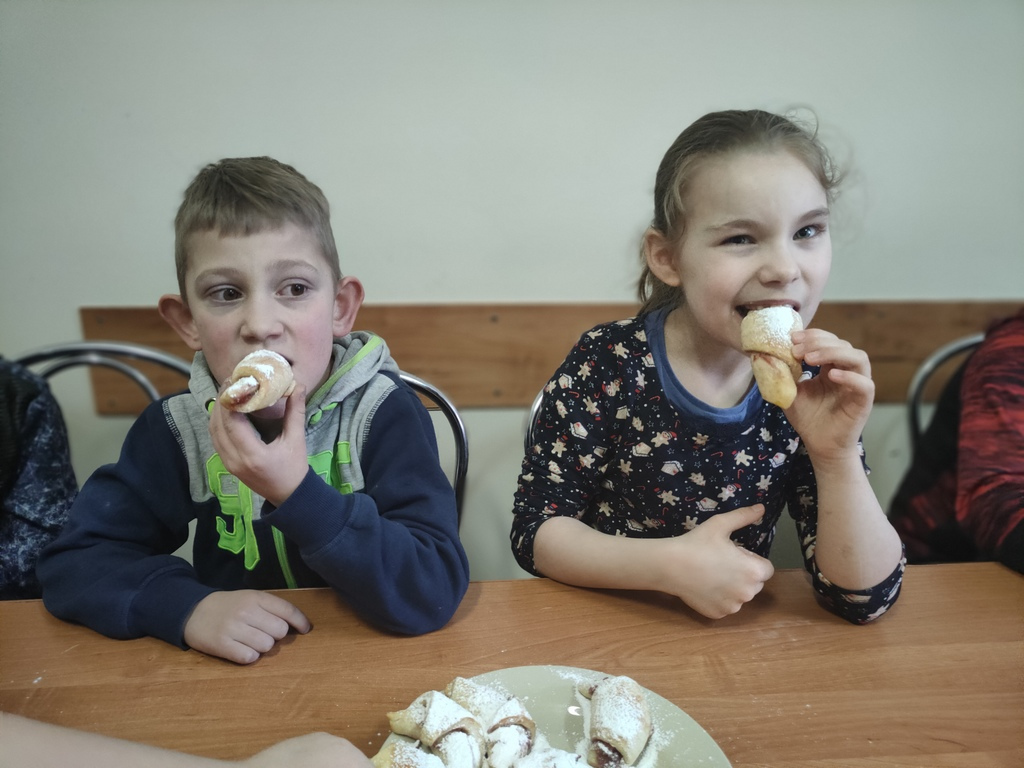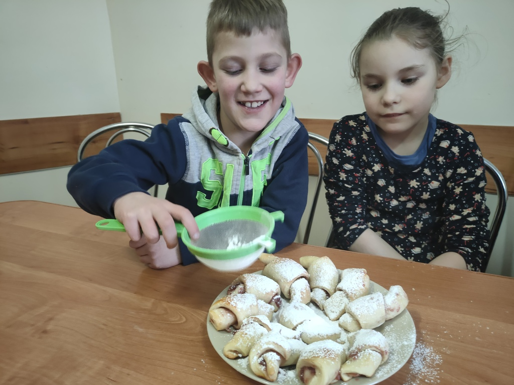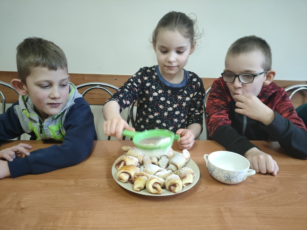 Zakończenie karnawału, zwane ostatkami, uczniowie klas I, II A, ZET I oraz ZET VI uczcili własnoręcznie wykonanymi rogalikami z ciasta drożdżowego. Pod opieką wychowawczyń młodzi kucharze poznali proces wypieku rogalików. Nabywali umiejętności smarowania ciasta owocową marmoladą, zawijania rogalików, oprószania upieczonych słodkości cukrem pudrem. Było to bardzo słodkie i zarazem praktyczne doświadczenie, które przyniosło wiele radości i przybliżyło specyfikę pracy cukiernika.