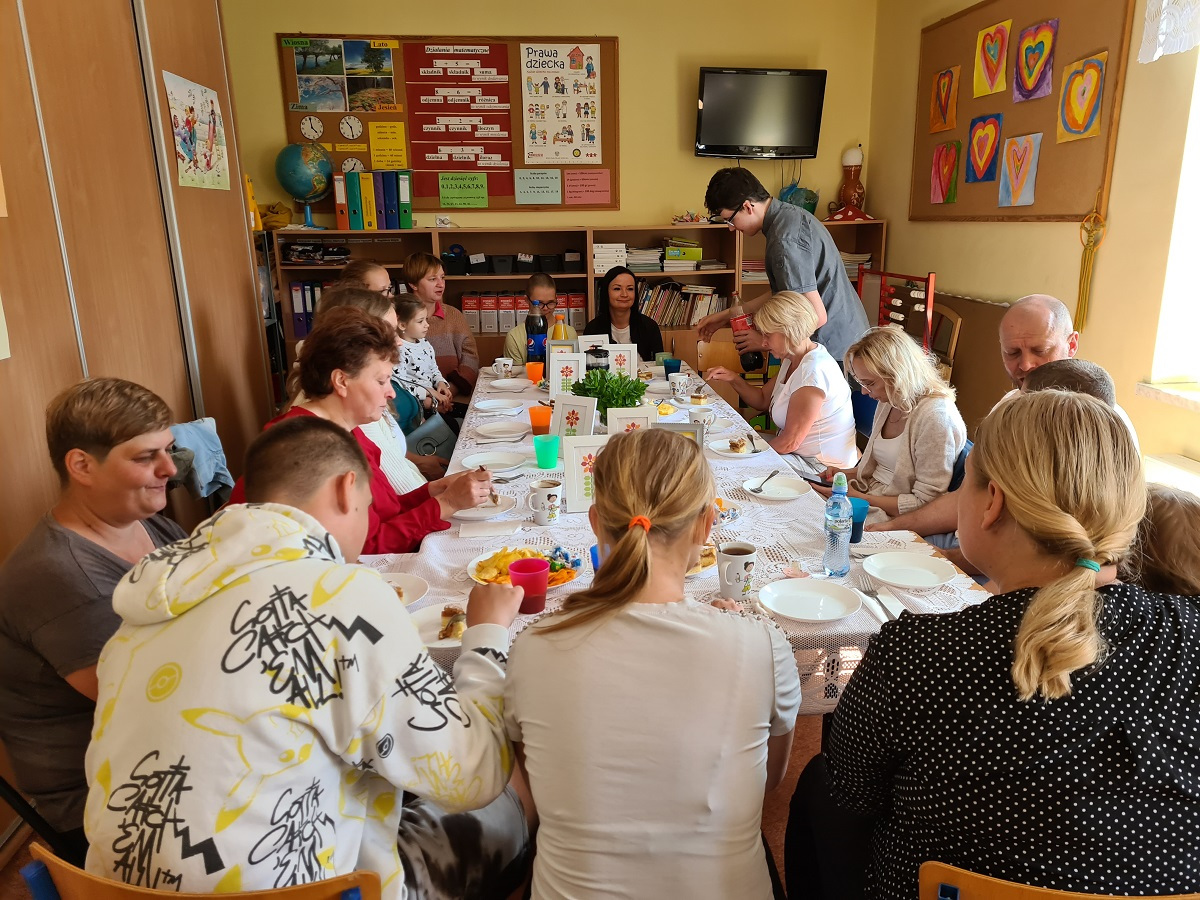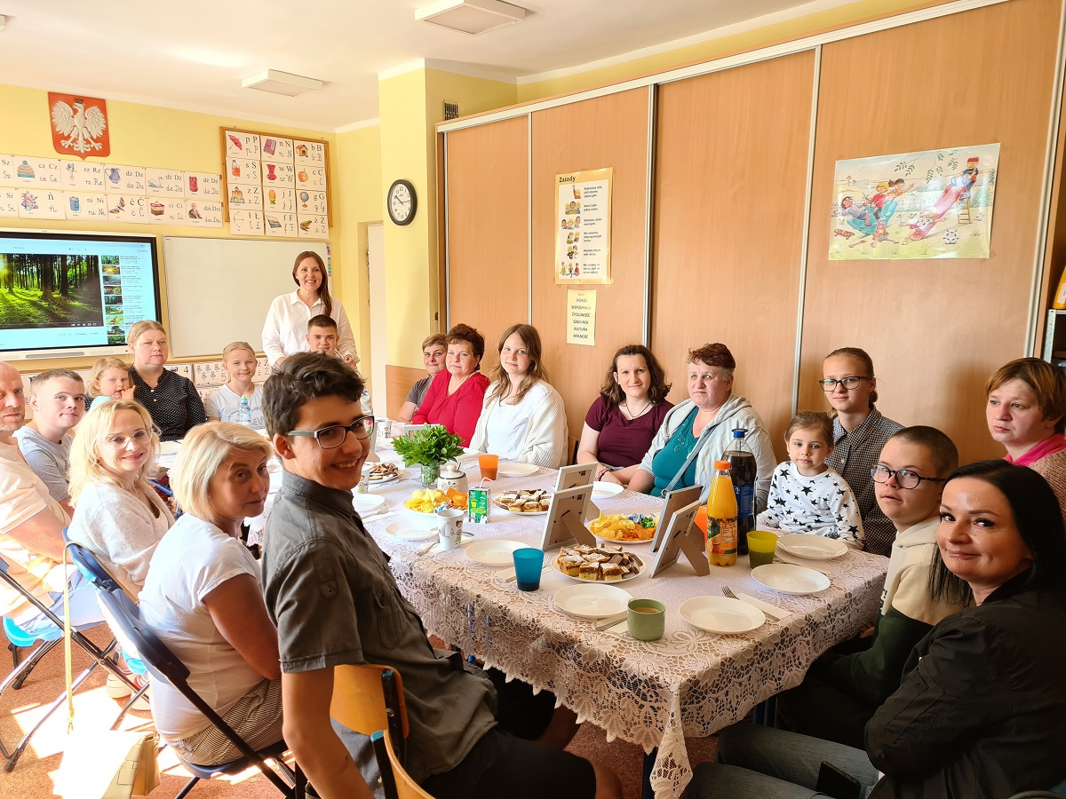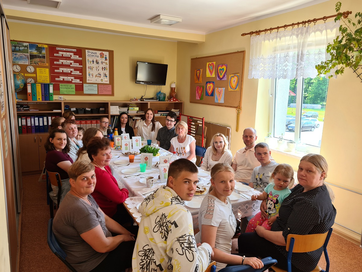 Rodzina i dobre relacje z ludźmi to mocne podstawy do tego, żeby być szczęśliwym. Uczniowie ZET VII, wraz z wychowawczynią Beatą Kamińską, zorganizowali przyjęcie z okazji obchodów Dnia Matki, Dnia Dziecka i Dnia Ojca. Młodzież ZET VII, bardzo zaangażowała się w przygotowanie niespodzianek. Były samodzielnie przygotowane smakołyki, był też upominek dla rodziców, opiekunów i podziękowania za to, że SĄ w ich życiu. Wyhaftowany kwiat, oprawiony w ramkę został wykonany podczas zajęć realizowanych w ramach Programu Laboratoria Przyszłości. Dzień Dziecka miał ciąg dalszy. Byliśmy na wspaniałej szkolnej wycieczce w Giżycku, a 1 czerwca życzyliśmy sobie wszystkiego najlepszego zajadając lody 🙂