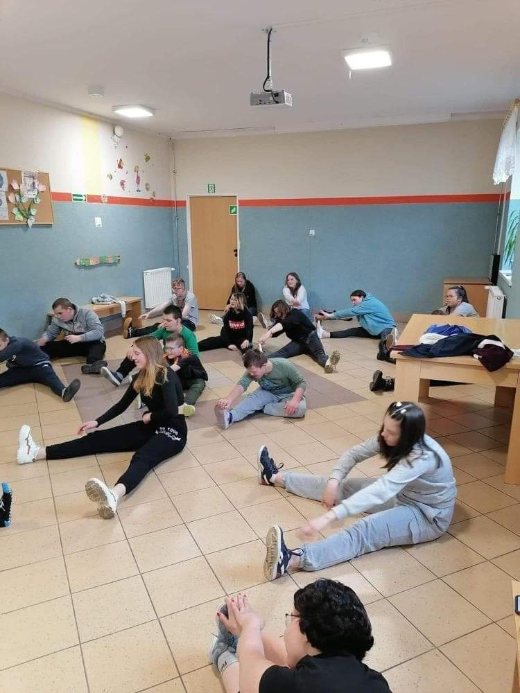 Wychowankowie internatu oraz bursy szkolnej brali udział w zajęciach stretchingu z elementami Jogi. Stretching z elementami jogi to zajęcia, których celem jest, zwiększenie siły mięśni, poprawienie gibkości ciała a także relaksacja i odprężenie. Dobrze dobrane ćwiczenia rozciągające i pozycje jogi (asany) eliminują stres, odprężają oraz zwiększają elastyczność i siłę ciała. Zajęcia rozpoczęliśmy od rozgrzewki , by móc przygotować się do części głównej zajęć, podczas których wykonuje się dobrane ćwiczenia rozciągające i pozycje jogi. Końcowa część zajęć przeznaczona była na relaksację, której celem jest wyciszenie, odprężenie i zregenerowanie całego ciała po wysiłku.
