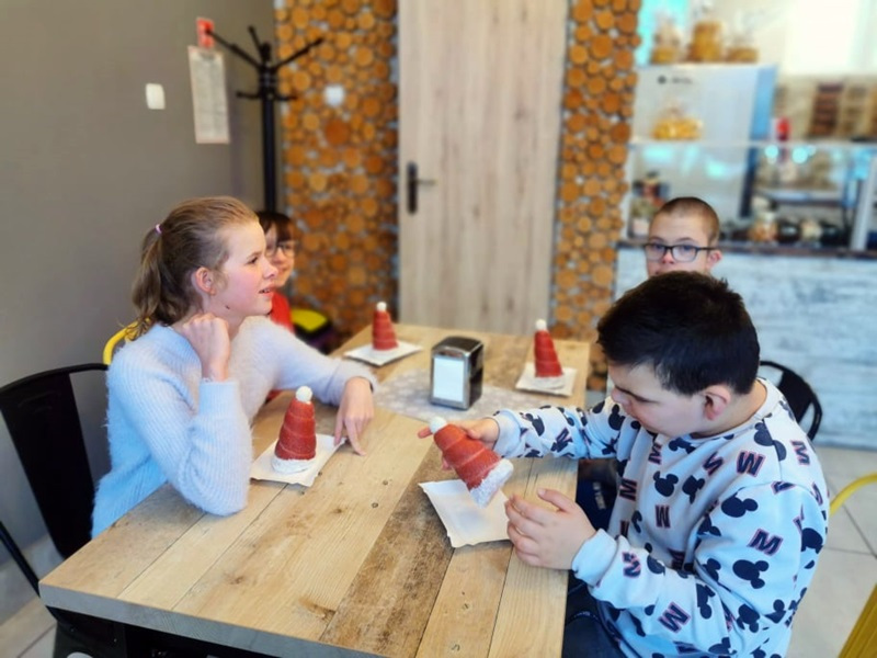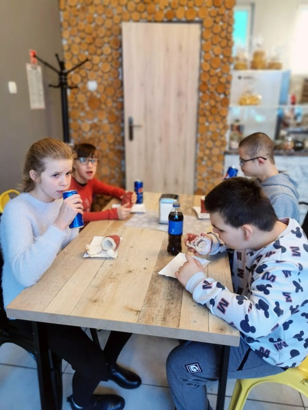W ramach treningu umiejętności społecznych Zespoły edukacyjno-terapeutyczne IV i V oraz klasa 1a wybrały się do cukiernio-kawiarni „Kołaczowe Fantazje”. Pani Agnieszka – właścicielka pokazała nam tajniki wyrabiania i ozdabiania kołaczy. Uczniowie mieli możliwość zamówienia smakołyków i napoju oraz zapłaty za zamówienie. Była to również świetna okazja do treningu zachowania się w miejscu publicznym, jakim jest kawiarnia. Dziękujemy Pani Agnieszko za tak miłe ugoszczenie nas!