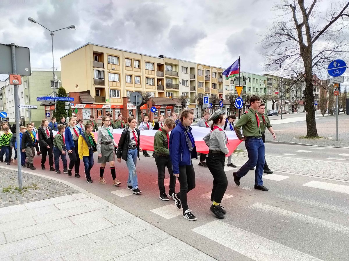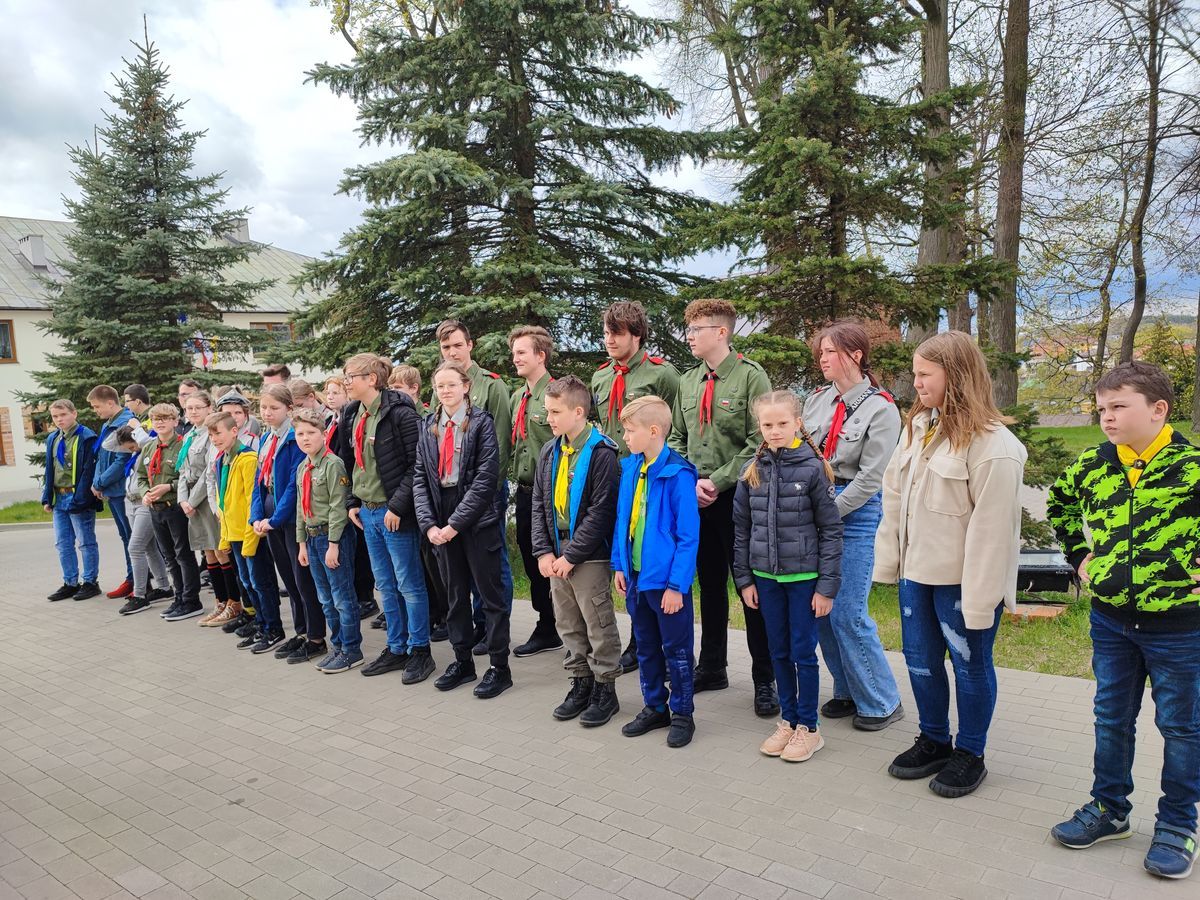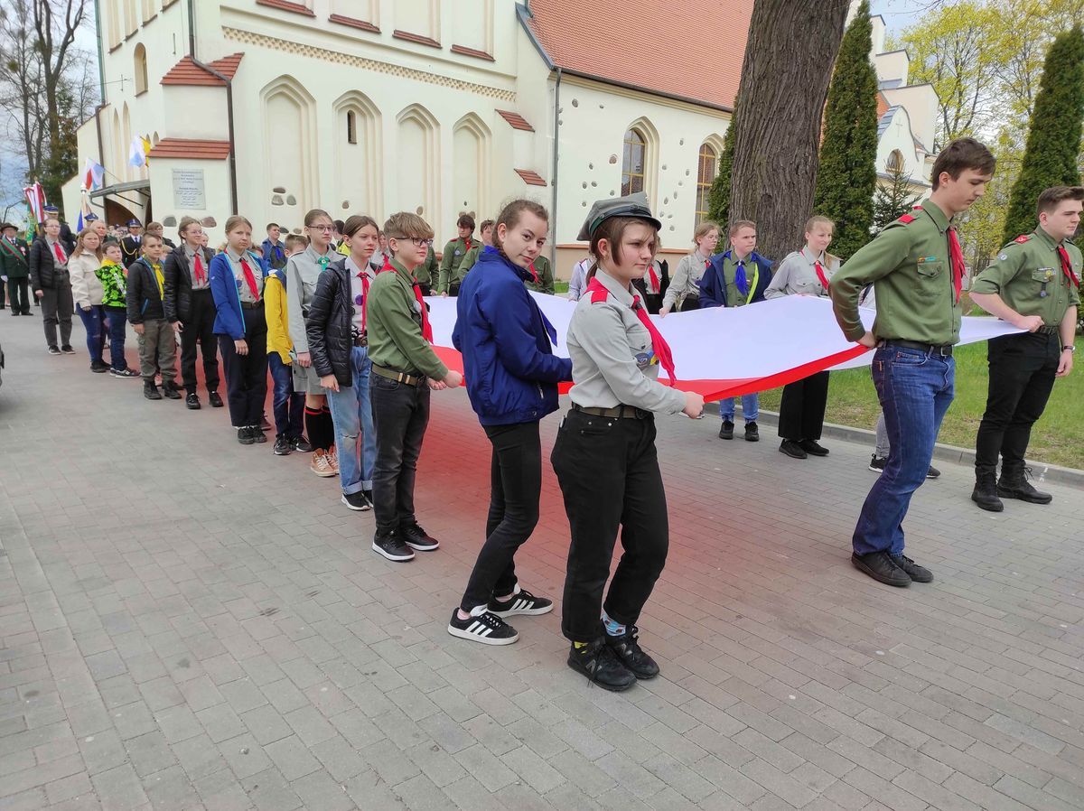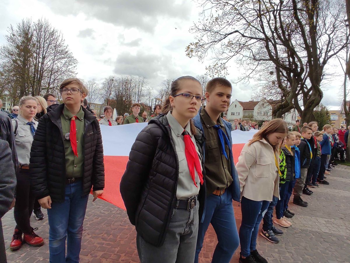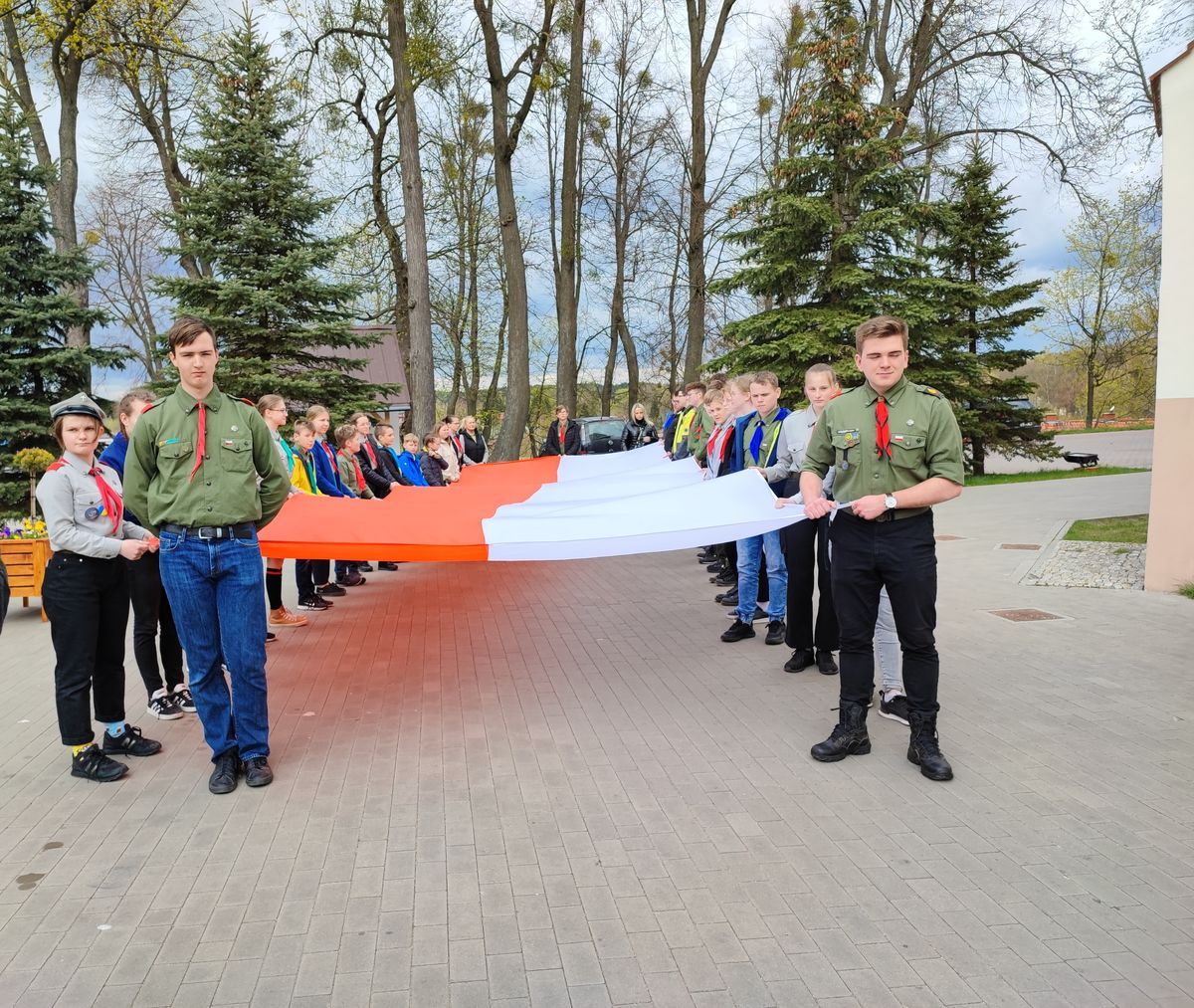 Harcerze z 6 Wielopoziomowej Drużyny Harcerskiej „Giganci” działającej przy ZPEW w Gołdapi wspólnie z 2 Wielopoziomową Drużyną Harcerską „Aves” i 7 Wielopoziomową Drużyną Harcerską „Strażnicy uśmiechu” wzięli udział w obchodach Narodowego Święta Trzeciego Maja. Uroczystość odbyła się przy Pomniku Niepodległości w Gołdapi.