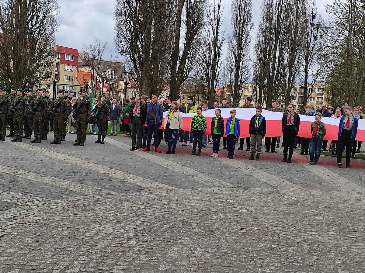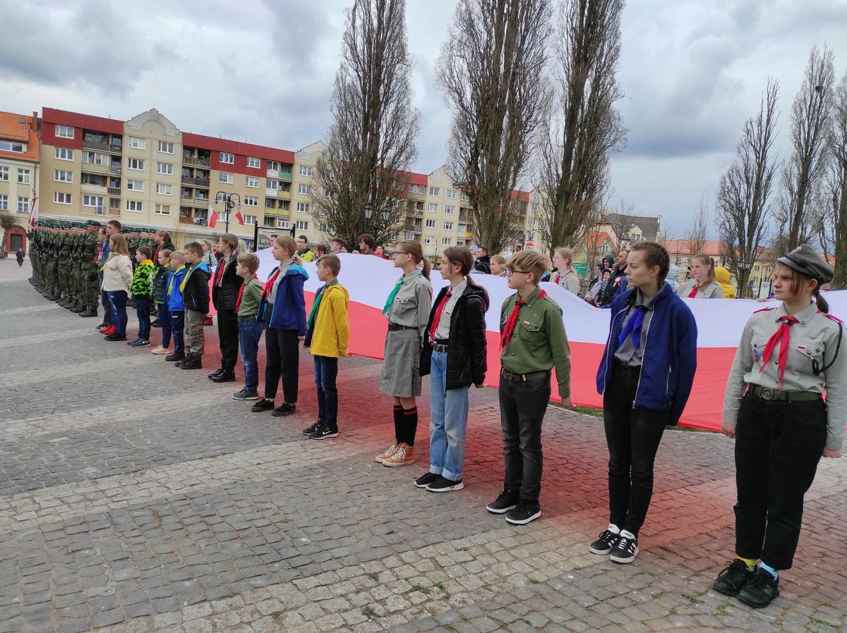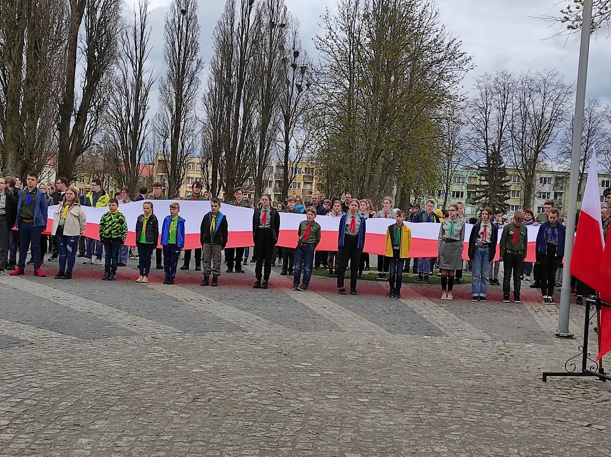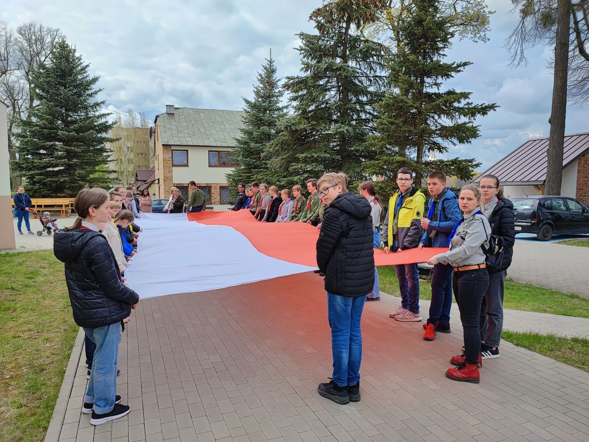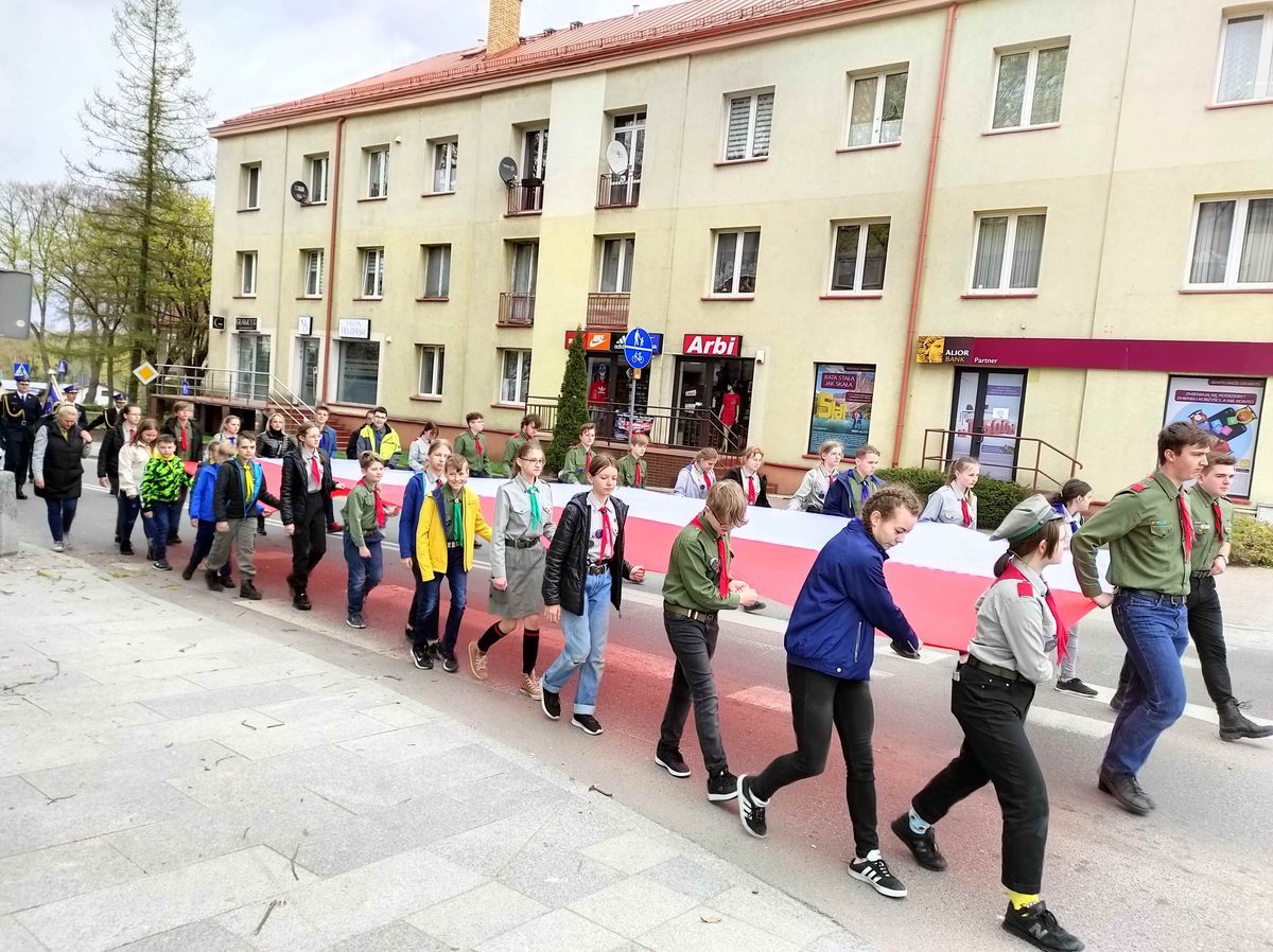 Harcerze z 6 Wielopoziomowej Drużyny Harcerskiej „Giganci” działającej przy ZPEW w Gołdapi wspólnie z 2 Wielopoziomową Drużyną Harcerską „Aves” i 7 Wielopoziomową Drużyną Harcerską „Strażnicy uśmiechu” wzięli udział w obchodach Narodowego Święta Trzeciego Maja. Uroczystość odbyła się przy Pomniku Niepodległości w Gołdapi.