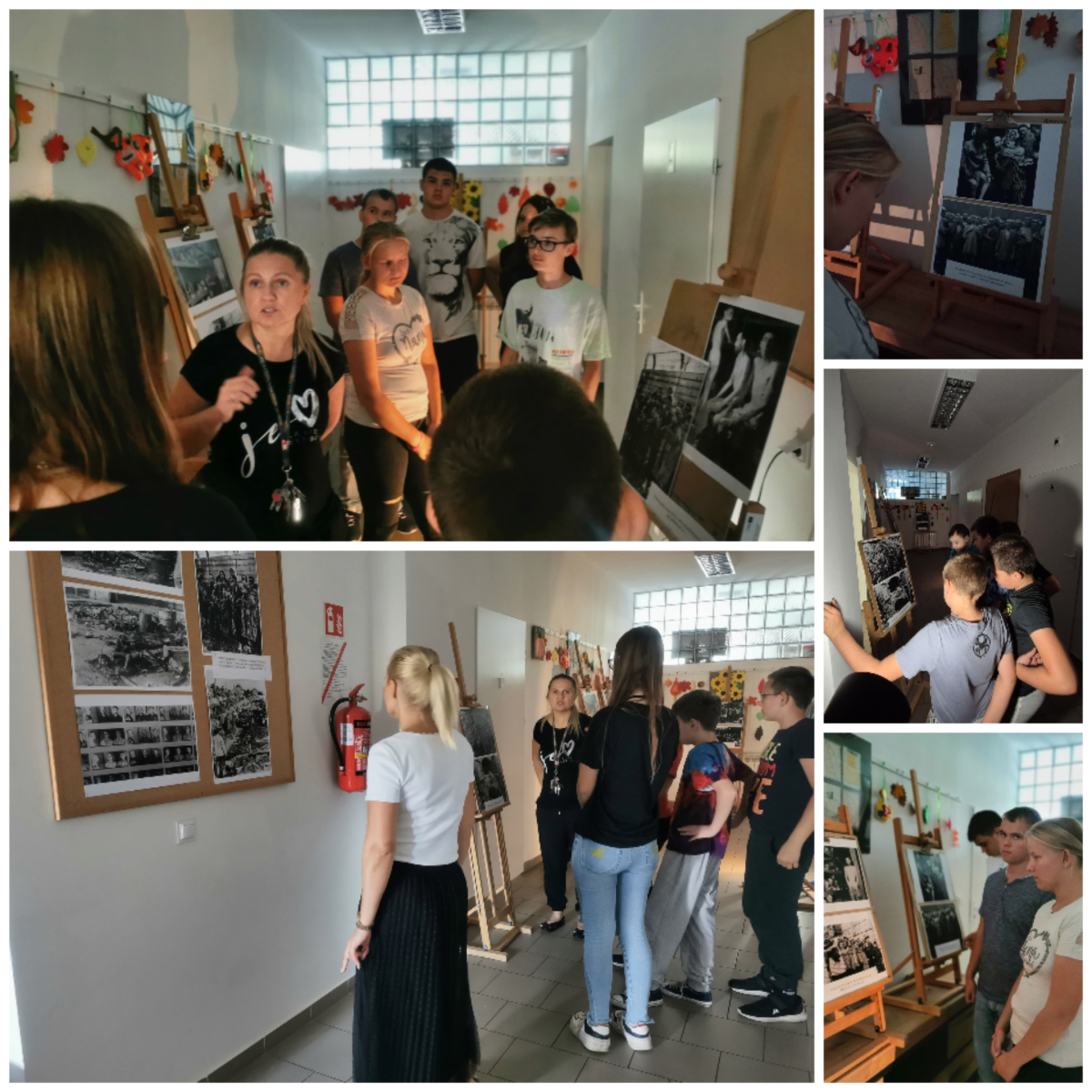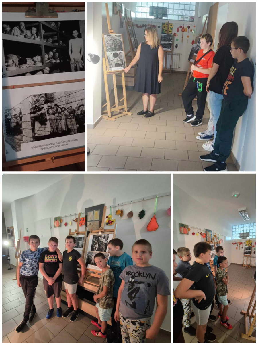 Wrzesień dla nas Polaków jest szczególnie smutnym i pełnym refleksji czasem, ze względu na rocznice wybuchu II Wojny Światowej oraz napaści ZSRR na nasz kraj. W tym roku szkolnym rocznice te zostaly upamiętnione jako wystawa zdjęć poświęcona pamięci więźniów niemieckich obozów koncentracyjnych. Wychowawcy przygotowali uczniów na odbiór wystawy i podążając za zdjęciami opowiedzieli historie z życia w Auschwitz.