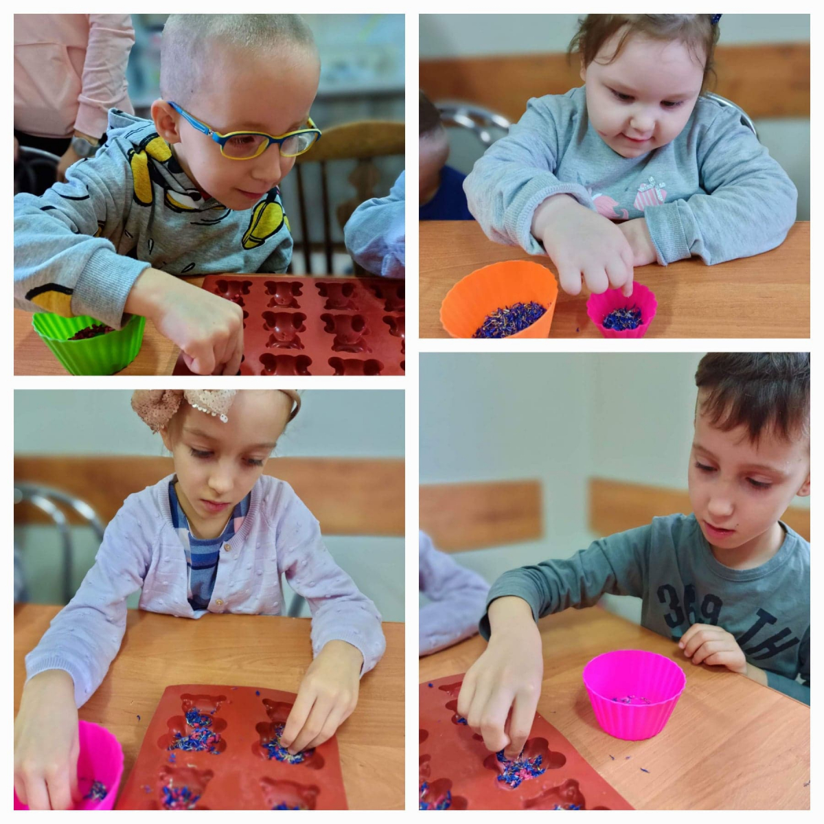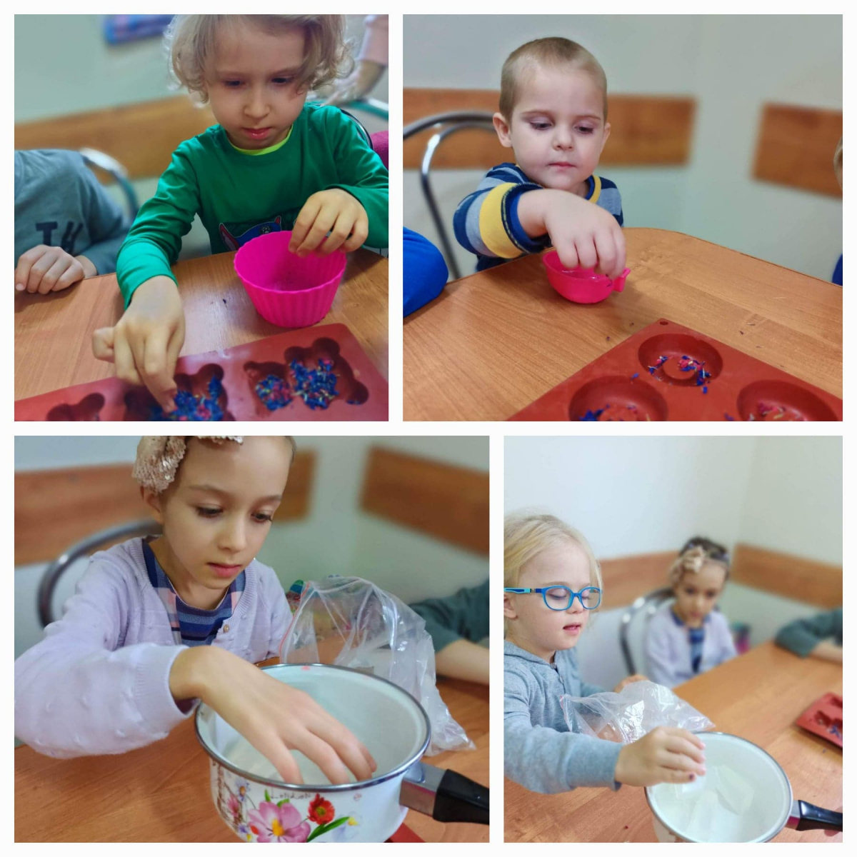 Dzięki niespodziance jaką sprawiła nam wizyta cioci Hani w naszym przedszkolu odbyły się warsztaty mydlarskie! Tego jeszcze u nas nie było ! Pachnące, kolorowe mydełka od zawsze były dla dzieci elementem zabaw podczas kąpieli. Warsztaty mydlarskie ukazały dzieciom, iż powszechnie znane im mydło może nie tylko stanowić atrybut czystości, ale również stać się niepowtarzalnym, pachnącym dziełem sztuki 🙂