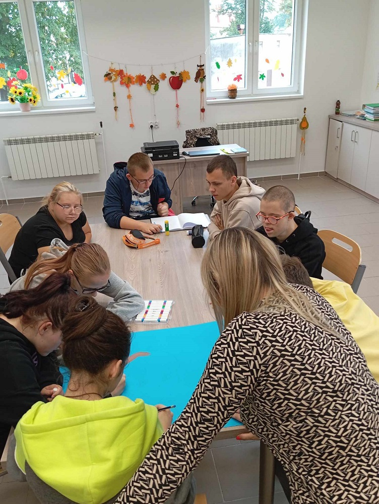 Dnia 13.10.2024 r. w ZPEW uczniowie Szkoły Przysposabiającej do Pracy uczestniczyli w warsztatach na temat relacji rodzinnych, które przeprowadziły Pani Justyna Wołyniec  – Oleszczuk z PPP w Gołdapi i psycholog szkolny. Uczniowie chętnie i aktywnie uczestniczyli w warsztatach, wykazali się kreatywnością wykonując piękna pracę plastyczną dotyczącą relacji. Dowiedzieli się również, że relacje buduje się dzięki zaufaniu i wsparciu, a dziecko zaczyna ich tworzenie od domu rodzinnego. Dzięki wzajemnemu szacunkowi, regularnemu wspólnemu spędzaniu czasu w pozytywnej atmosferze i uczestnictwie w życiu codziennym domu dziecko zaczyna lepiej rozumieć swoje miejsce w społeczności rodziny.