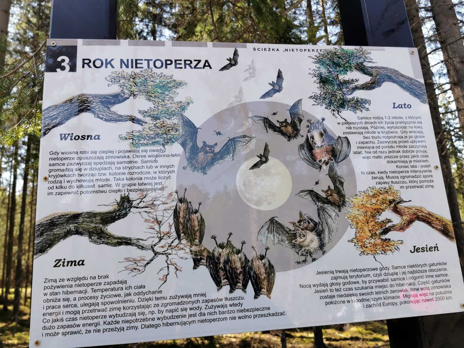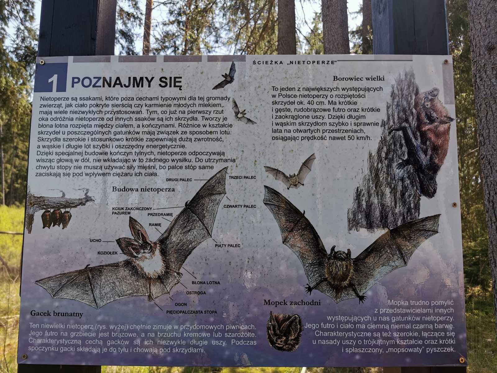 10 maja 2023 r. grupa uczniów z ZPEW w Gołdapi uczestniczyła w wiosennych wędrówkach w nieznane po ścieżce edukacyjnej „NIETOPERZE” w Puszczy Rominckiej pod hasłem „A na wiosnę TRZYMAJ FORMĘ…”. Wędrówka była żywą lekcją przyrody, nauką pierwszych kroków z kijkami do NORDIC WALKING, aktywną formą wypoczynku na łonie natury. Nasza przygoda rozpoczęła się przed pierwszą tablicą informacyjno – edukacyjną gdzie zapoznaliśmy się z gatunkami nietoperzy, z zaciekawieniem czekaliśmy na pozostałe cztery. Dowiedzieliśmy się, gdzie mieszkają te ssaki, czym się żywią, jak śpią. Zabawiliśmy się w zabawę „Jak śpi nietoperz”. Cała trasa zajęła nam prawie 2 godz. Na zakończenie głodni, ale szczęśliwi piekliśmy pyszne kiełbaski i dzieliliśmy się wrażeniami z tej niezwykłej imprezy terenowej.
