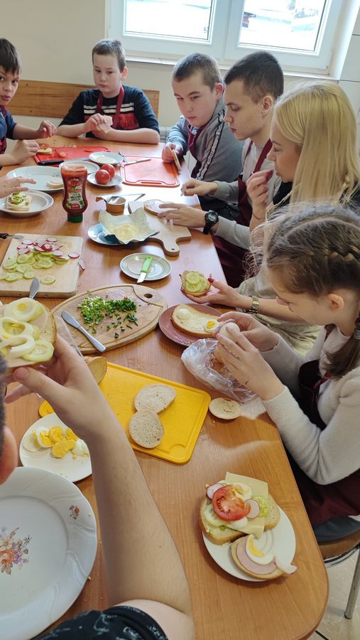Z rozpoczęciem wiosny  uczniowie klas IV-V-VI i VII-VIII zrobili samodzielnie kanapki. Praca przyniosła wszystkim wiele radości. Uczniowie przekonali się, że najlepiej smakują – WIOSENNE KANAPKI wykonane własnoręcznie. Podczas zajęć zostały przypomniane zasady BHP (plansze)oraz wykorzystano deski do krojenia i miski. Zajęcia odbyły się w ramach Programu Laboratoria Przyszłości.
