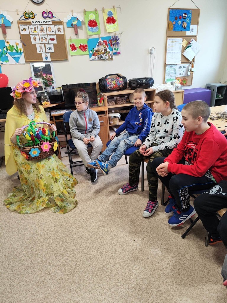 W dniu 21 marca uczniowie z ZET I i ZET VI gościli w swoich progach Panią Wiosnę. Był to czas pełen wrażeń. Pani Agnieszka Paluszkiewicz i pani Beata Jurewicz korzystając z aktywizujących metod pracy wprowadziły uczniów w nową porę roku. Nie zabrakło wiosennych zabaw ze śpiewem, aktywności muzyczno-ruchowych, zadań z kodowania, rozwijających uważność, umiejętności matematyczne, koordynację wzrokowo-ruchową, orientację przestrzenną.