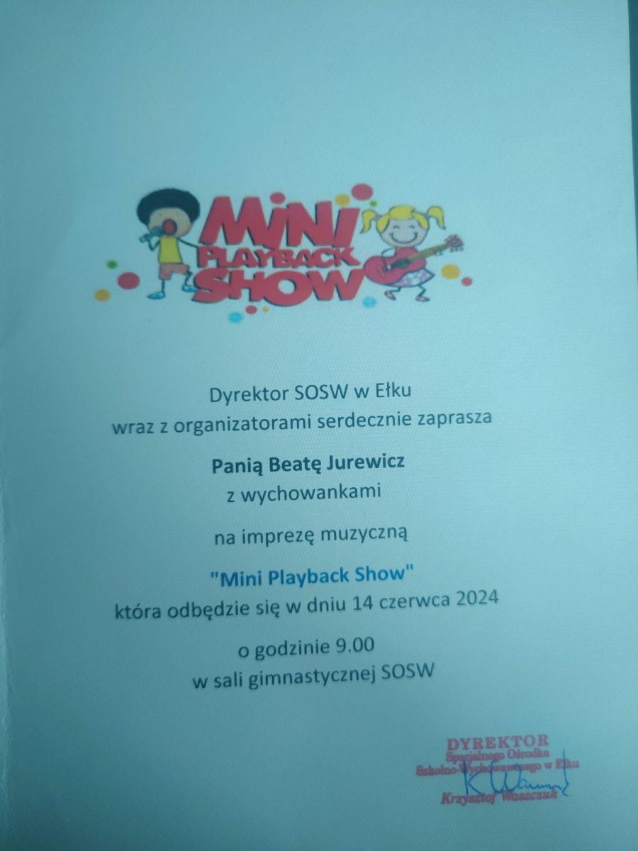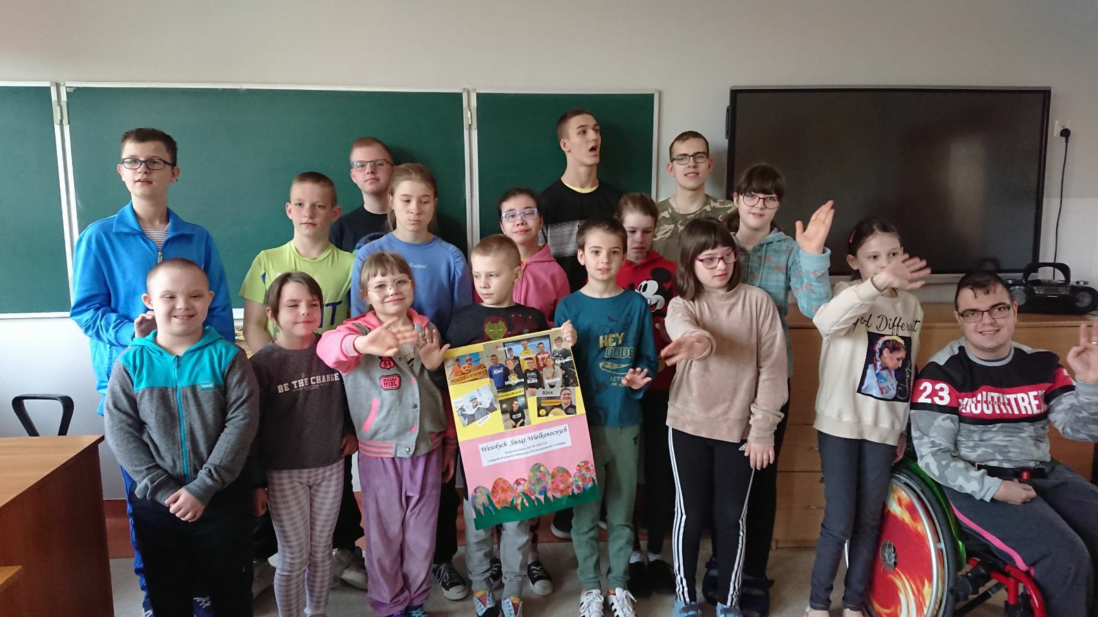Pani Beata Jurewicz wraz z uczniami zet VI, zet VII oraz gościnnie kl. I-IIIa podjęła współpracę z nauczycielami i uczniami Specjalnego Ośrodka Szkolno-Wychowawczego w Ełku. Zaczęło się bardzo „niewinnie” – od przesłania sobie nawzajem pozdrowień wielkanocnych. Kolejnym działaniem było odwiedzenie koleżanek i kolegów w SOSW w Ełku. Otrzymaliśmy zaproszenie, dzięki któremu mieliśmy okazję obejrzeć przefajne występy uczniów i kadry pedagogicznej podczas imprezy muzycznej Mini Playback Show. Pani Ewa Kuczyńska i Pani Beata Podbielska przygotowały dla nas przesmaczny poczęstunek. Następnie zwiedziliśmy placówkę. A ja myślałam, że ZPEW to labirynt…, okazało się, że jednak nie. Poznaliśmy również dyrektora Pana Krzysztofa Waszczuka, kadrę nauczycielską, z którą będziemy współpracować oraz uczniów, których zapraszamy do siebie w październiku bieżącego roku. Był to mile spędzony czas, za który serdecznie dziękujemy. A w bliskiej przyszłości… zapowiada się owocna współpraca. Pozdrawiamy!