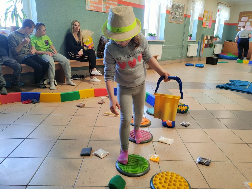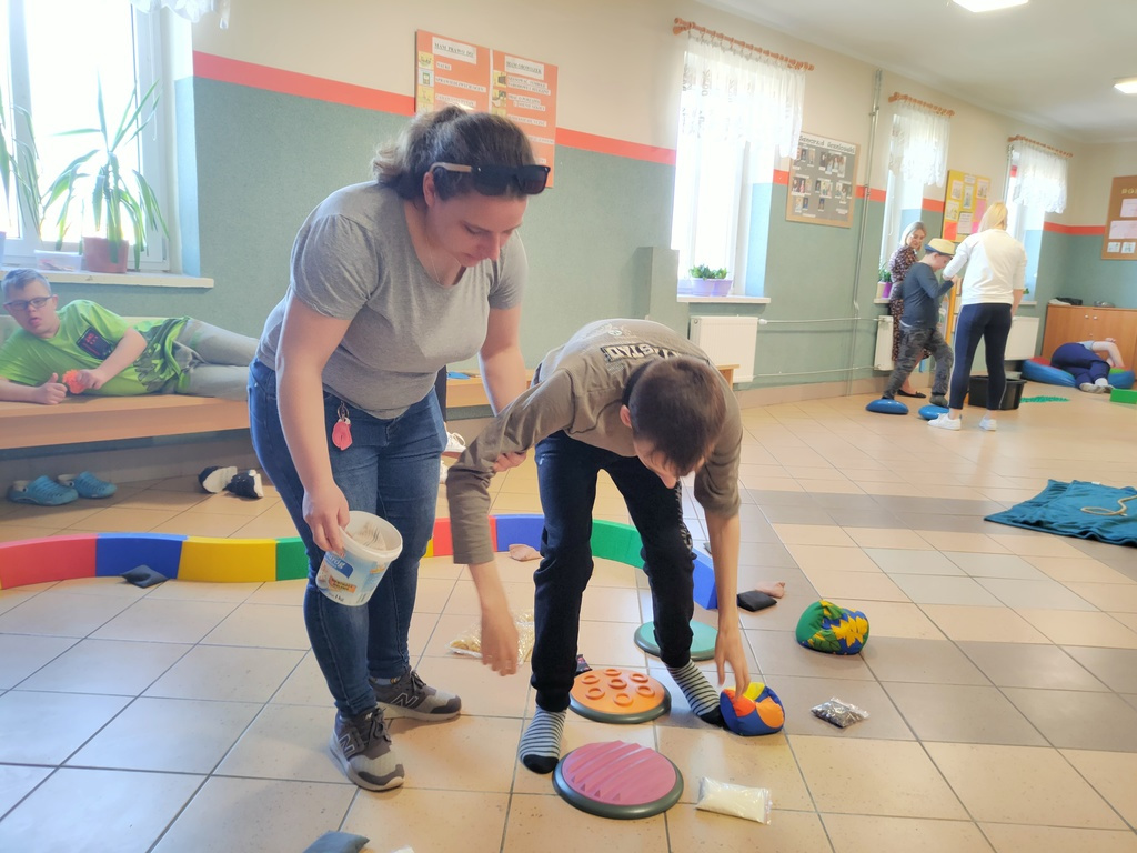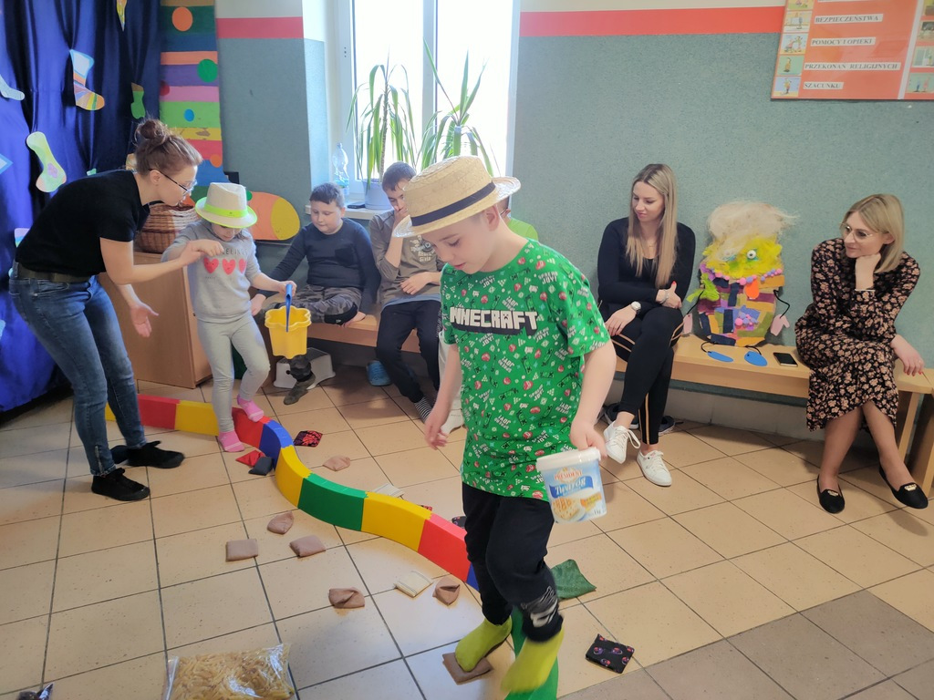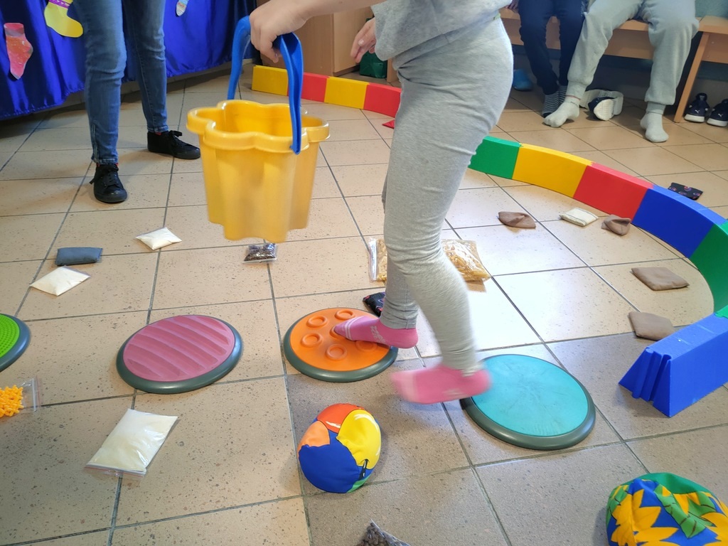 W dniu 25.03.2022 r. odbyły się zajęcia otwarte w ramach Ogólnopolskiego Programu Kraina Zmysłów „Sensorycznie się rozwijam bo skaczę, biegam, badam i dotykam” realizowanego w klasie I A i ZET V przez p. Justynę Radzewicz i p. Beatę Jurewicz. Podczas zajęć sensorycznych uczniowie mieli okazję poznać pracę ogrodnika, wcielając się w jego rolę. Zabawa polegała na poruszaniu się torem sensorycznym i wykonywaniu szeregu zadań: tor równoważny, siła i krzepa, w kompostowniku, w foliaku, w wiosennym ogródku. Zmysły odgrywają bardzo ważną rolę w życiu każdego człowieka. To dzięki nim poznajemy świat. Zajęcia „Sensorycznie się rozwijam…” są doskonałą formą dostarczania uczniom zróżnicowanych bodźców sensorycznych wspierających ich rozwój, oraz upowszechniania elementów metody integracji sensorycznej wśród nauczycieli i rodziców.