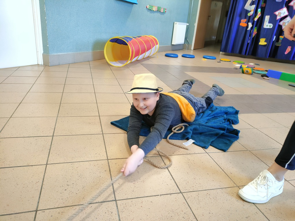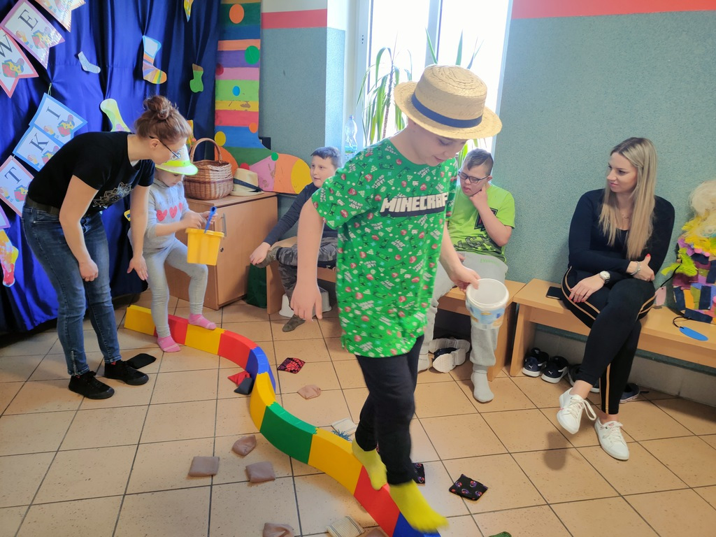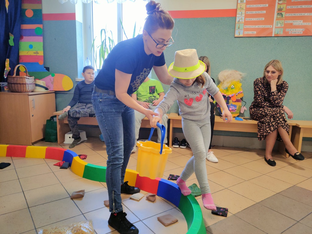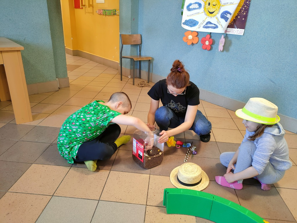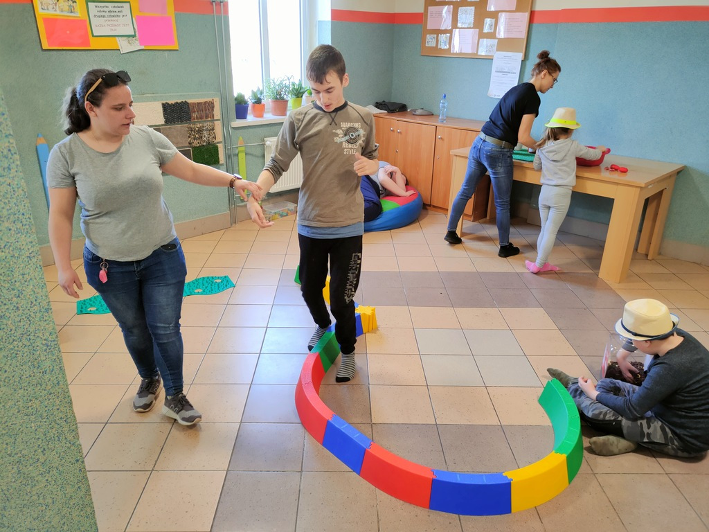 W dniu 25.03.2022 r. odbyły się zajęcia otwarte w ramach Ogólnopolskiego Programu Kraina Zmysłów „Sensorycznie się rozwijam bo skaczę, biegam, badam i dotykam” realizowanego w klasie I A i ZET V przez p. Justynę Radzewicz i p. Beatę Jurewicz. Podczas zajęć sensorycznych uczniowie mieli okazję poznać pracę ogrodnika, wcielając się w jego rolę. Zabawa polegała na poruszaniu się torem sensorycznym i wykonywaniu szeregu zadań: tor równoważny, siła i krzepa, w kompostowniku, w foliaku, w wiosennym ogródku. Zmysły odgrywają bardzo ważną rolę w życiu każdego człowieka. To dzięki nim poznajemy świat. Zajęcia „Sensorycznie się rozwijam…” są doskonałą formą dostarczania uczniom zróżnicowanych bodźców sensorycznych wspierających ich rozwój, oraz upowszechniania elementów metody integracji sensorycznej wśród nauczycieli i rodziców.
