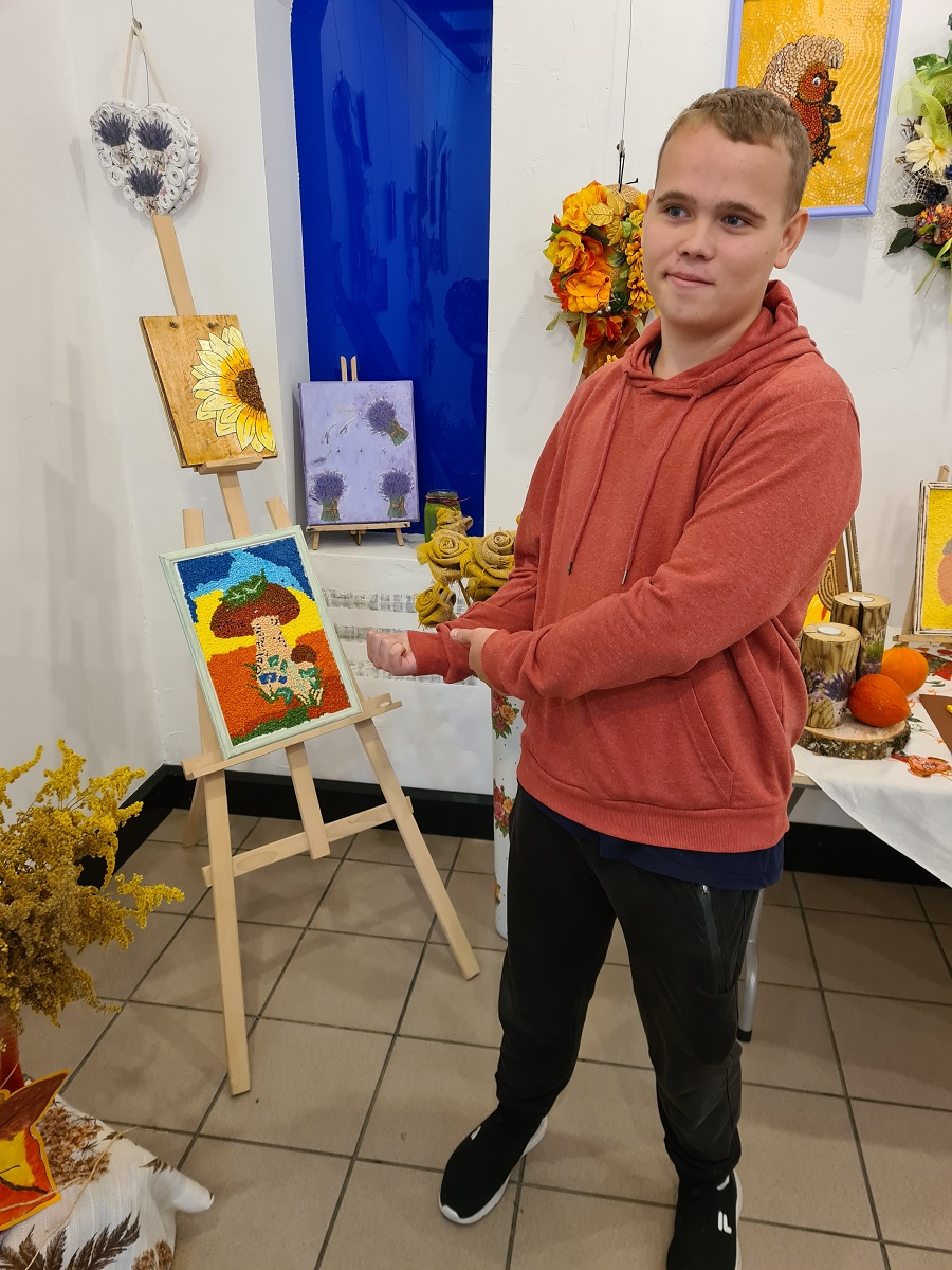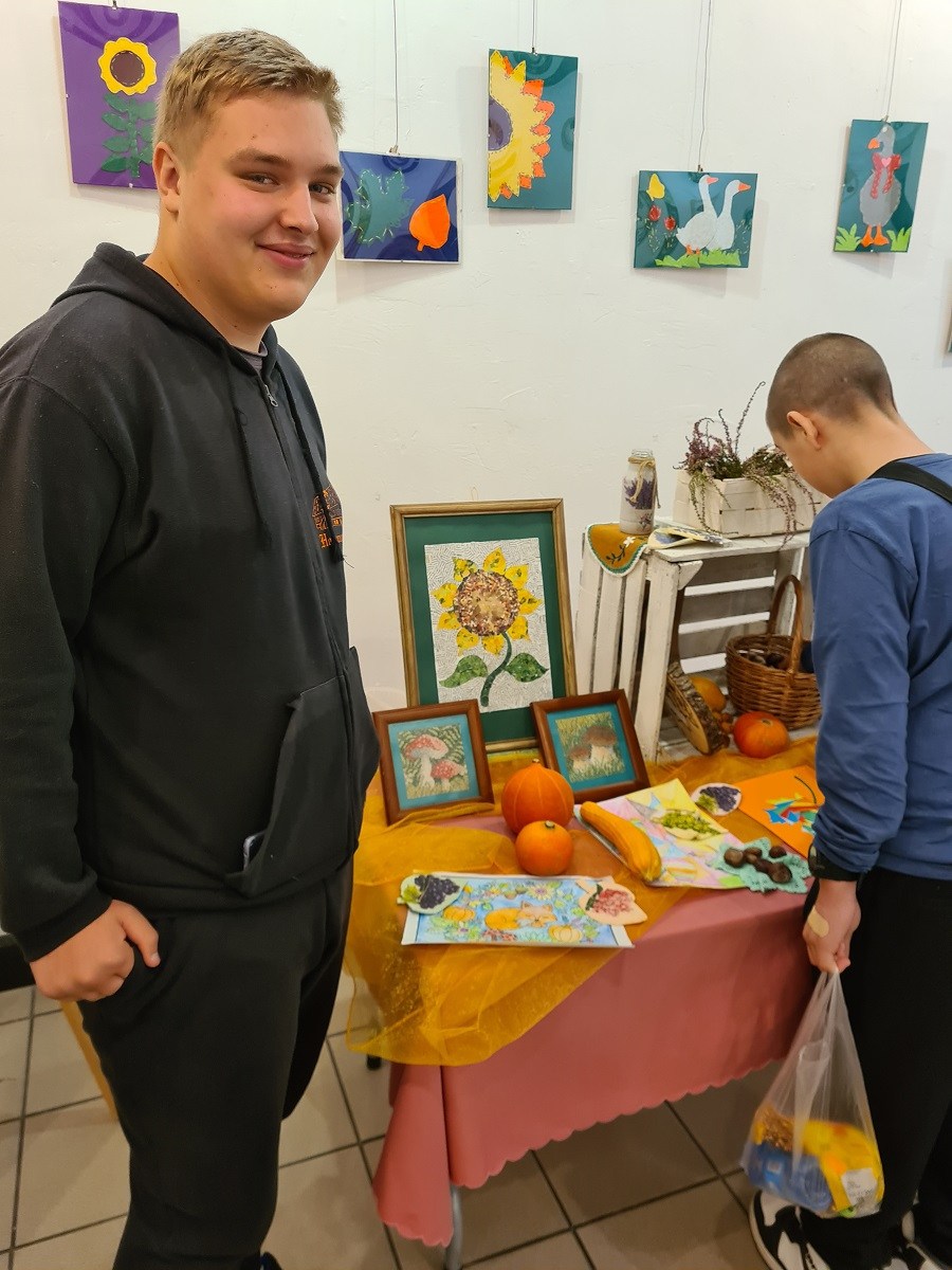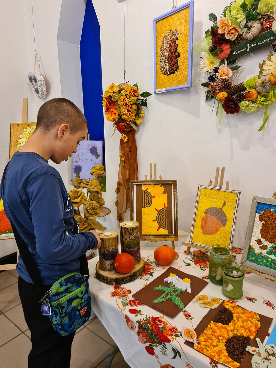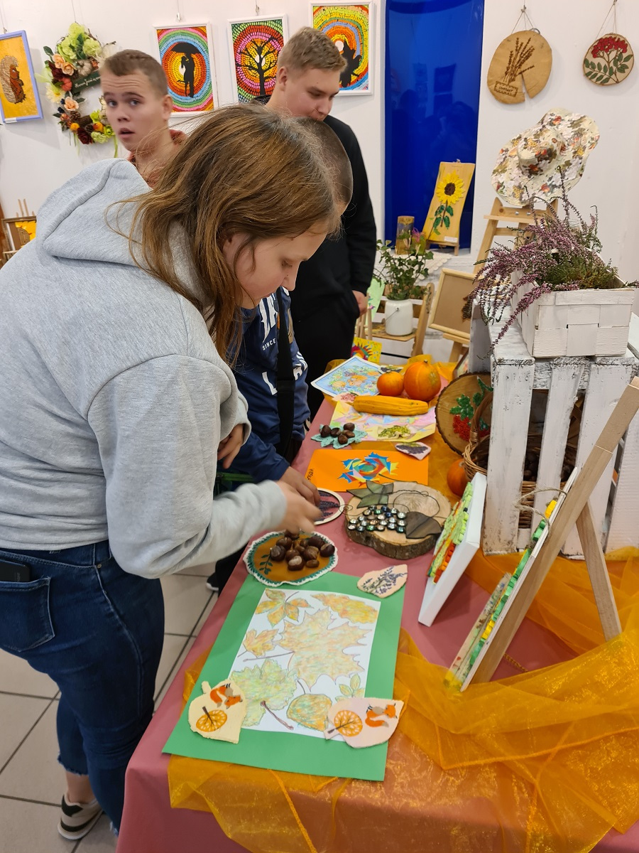„Zajęcia rozwijające kreatywność…jesienne inspiracje” 13 października 2023 Kreatywność w zespole edukacyjno- terapeutycznym ZET VIII, została wzbogacona przez inspiracje, które zostały zaczerpnięte podczas oglądania wystawy w gołdapskiej Galerii K2. Tym razem ciekawe prace łączył temat jesieni.