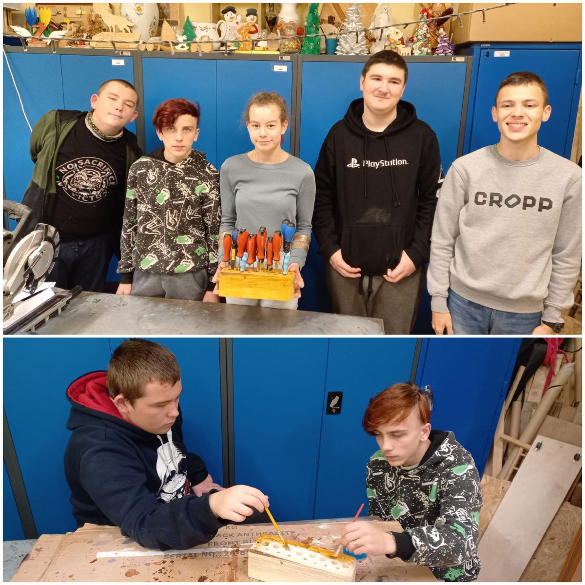 W październiku i listopadzie odbyły się zajęcia z elementami arteterapii pod hasłem „Profilaktyczny zawrót głowy”. Podczas zajęć uczniowie z klasy VII-VIII wykonali własnoręcznie stojak na śrubokręty z odpadu budowlanego, natomiast uczniowie ZET VII zrobili grę planszową wykorzystując m. in. sklejkę z recyklingu. Celem zajęć jest aktywna forma spędzenia czasu wolnego promująca zdrowy styl życia, wolny od nałogów, przemocy i agresji. Zajęcia odbywają się w ramach realizacji Programu „Stawiamy na marzenia – nie na uzależnienia” dofinansowanego przez Gminę Gołdap.