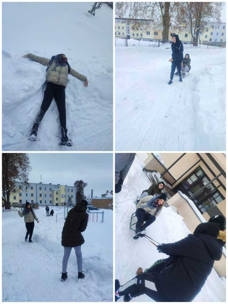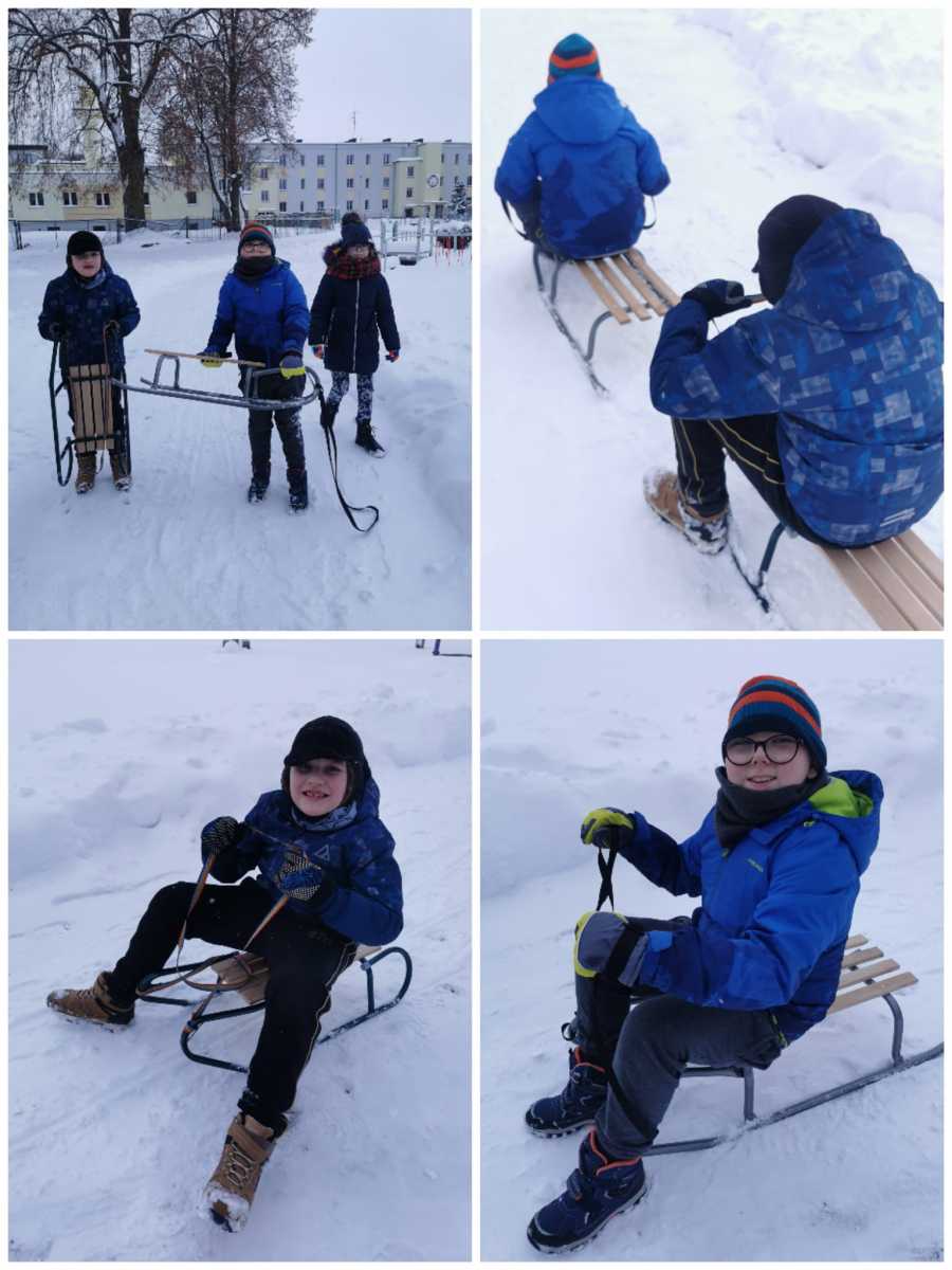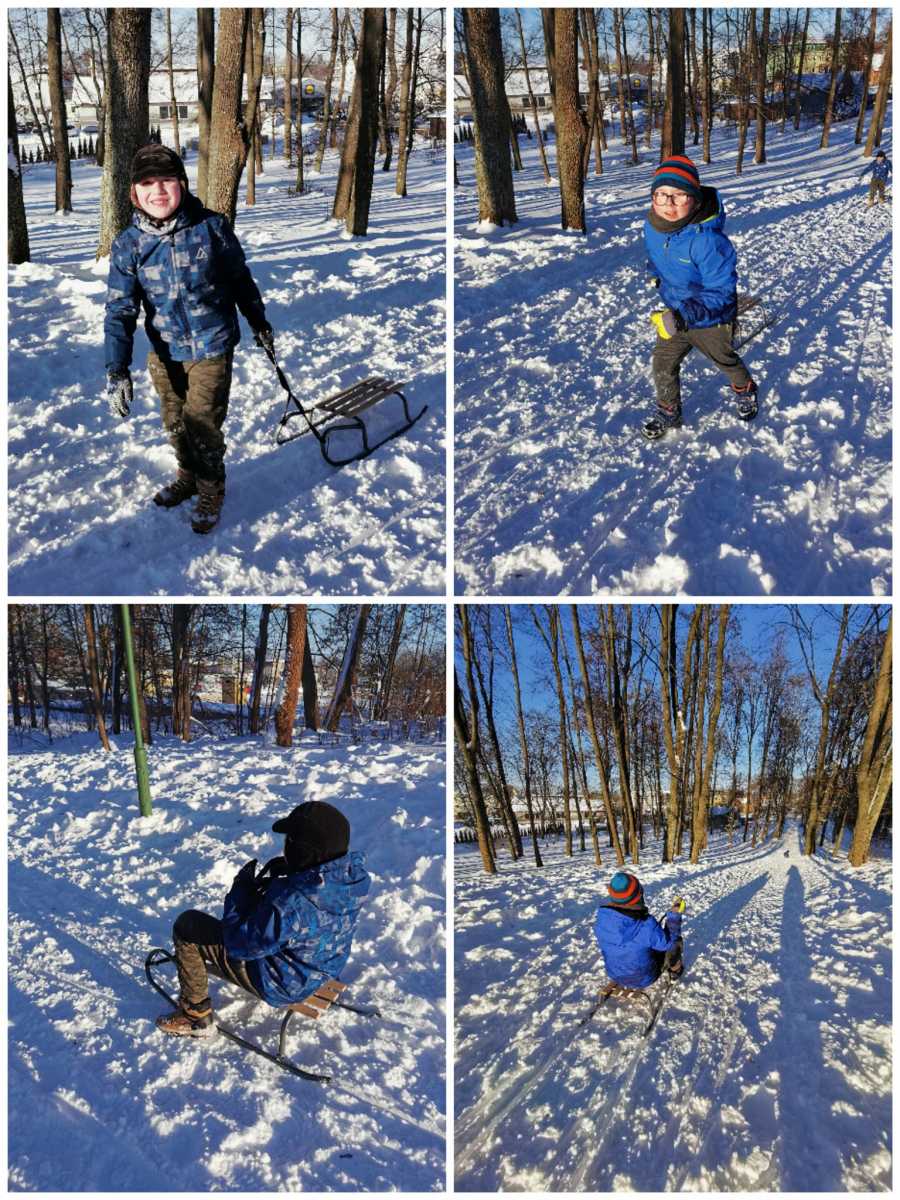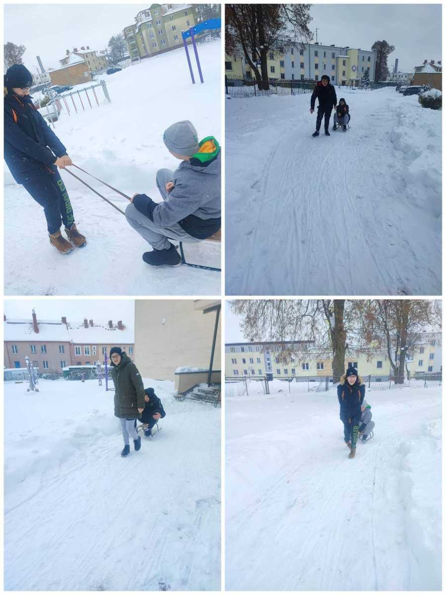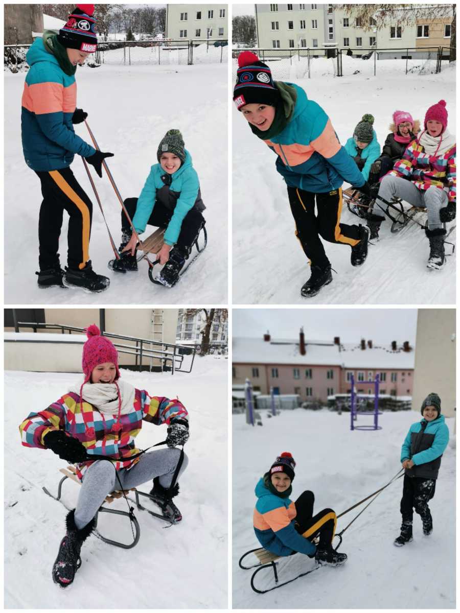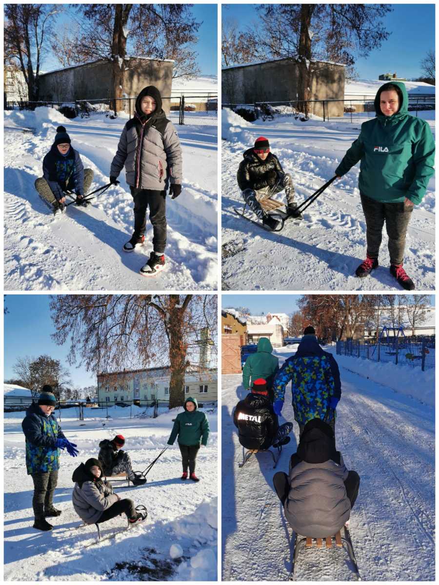 Zajęcia wychowania fizycznego na śniegu.