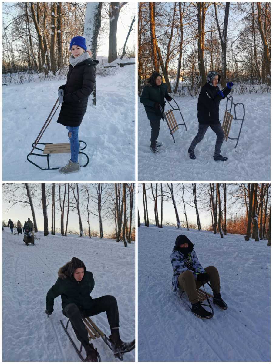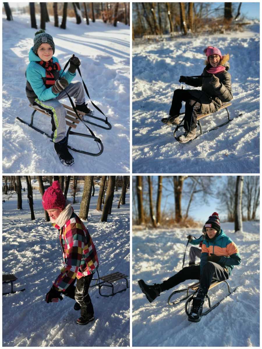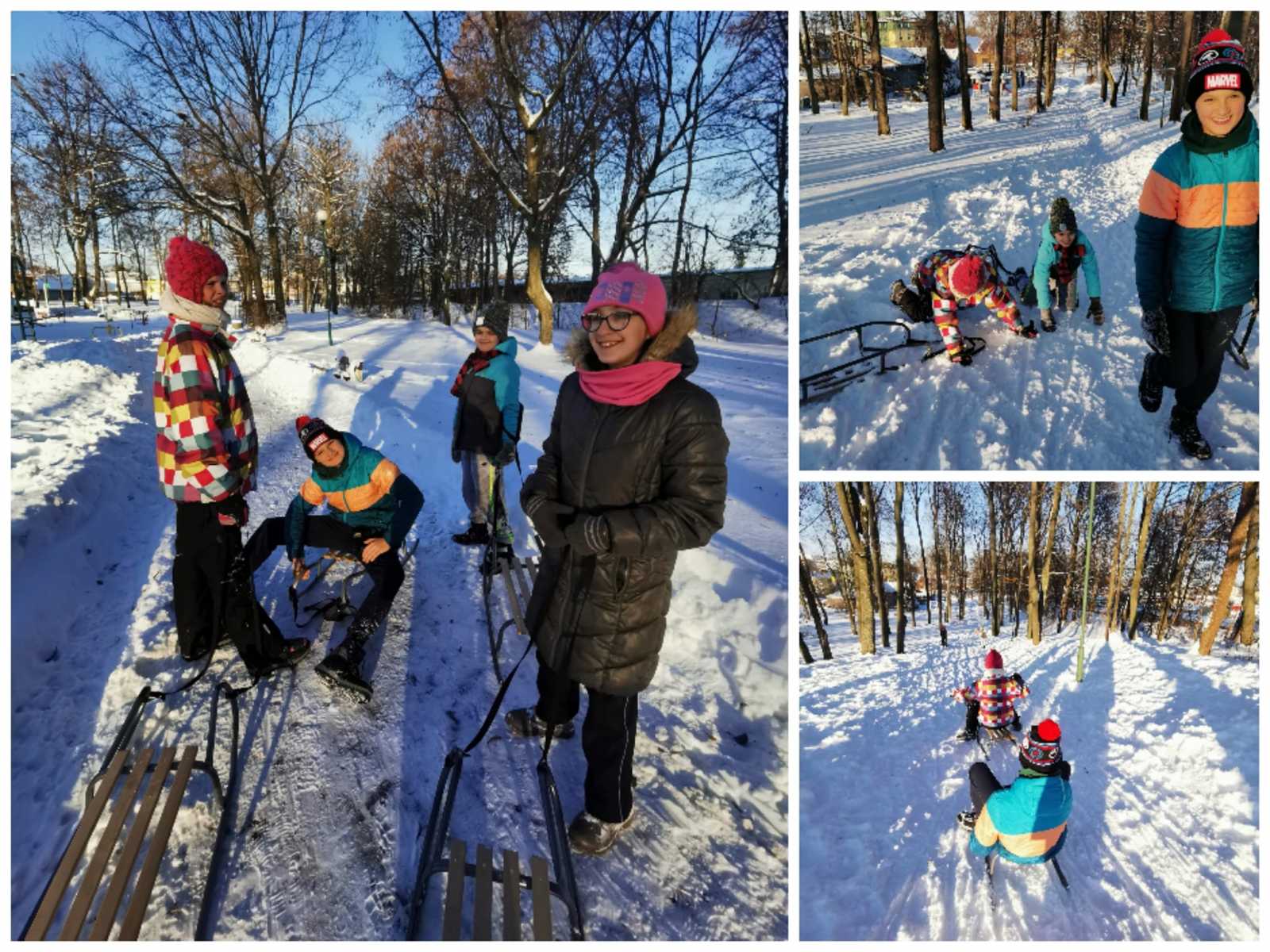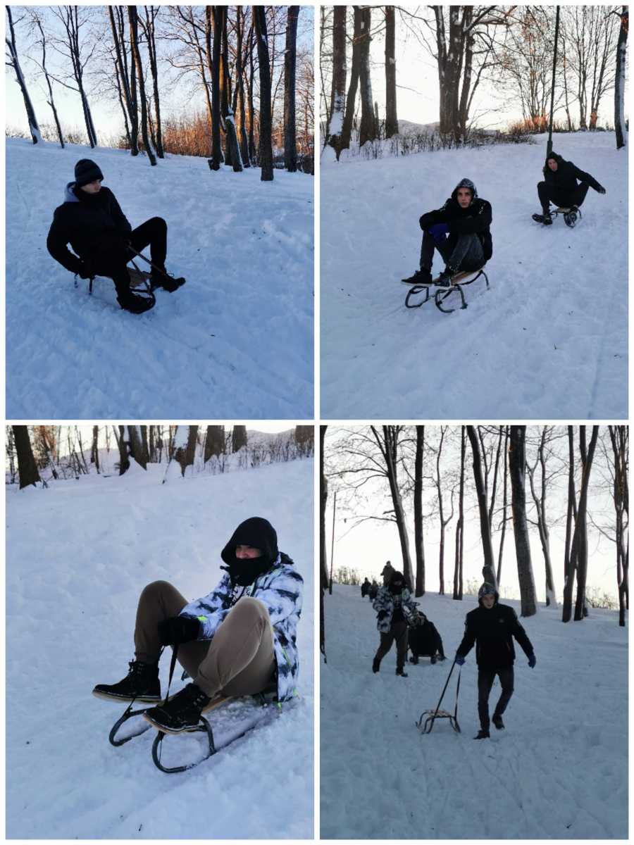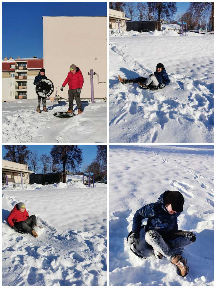 Zajęcia wychowania fizycznego na śniegu.